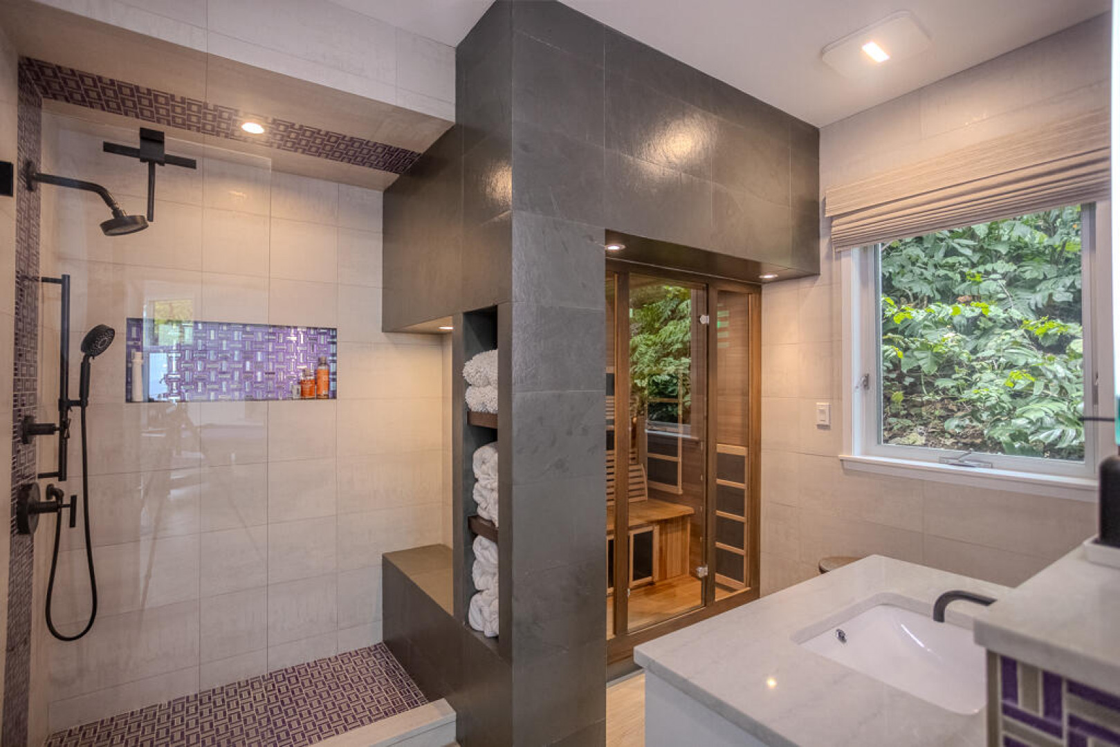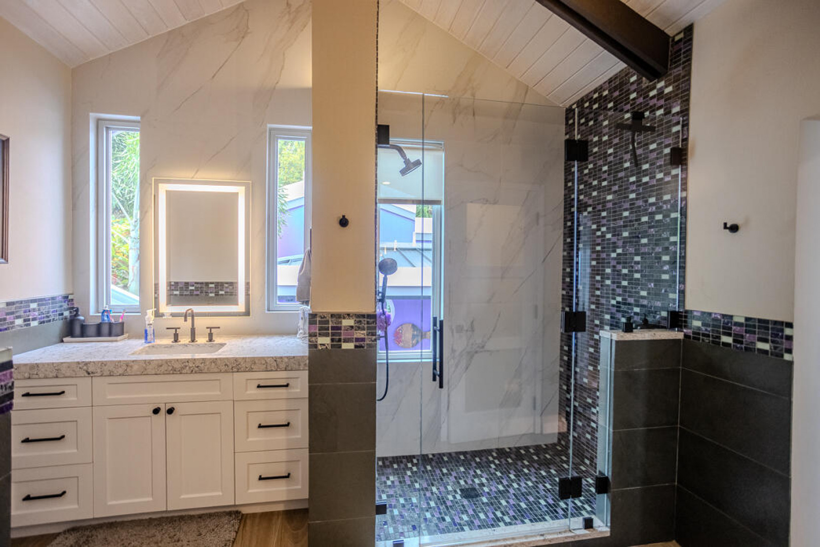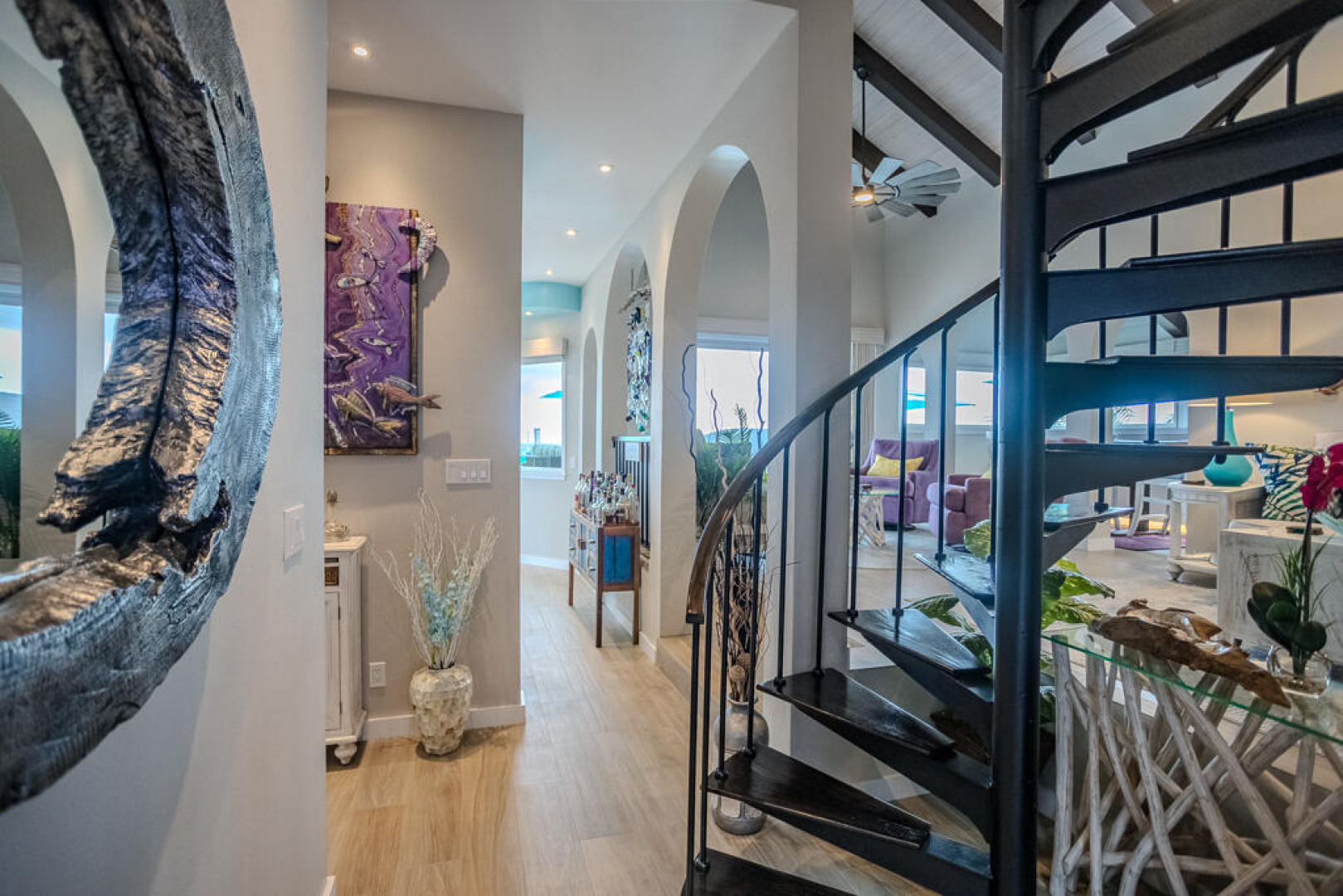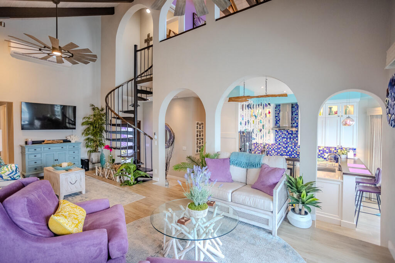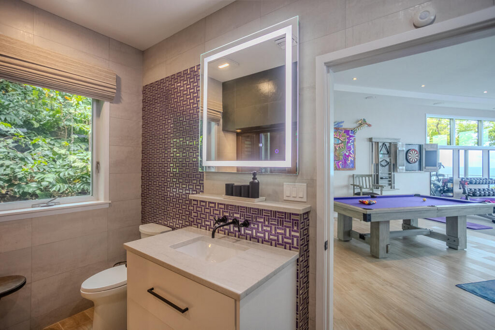EXQUISITE! Purple Paradise is luxury living at its finest in prestigious Peterborg, St Thomas. Featuring 4 bedrooms, 4.5 bathrooms, 3 custom kitchens, 2 living rooms, and sweeping views of the beautiful ocean view pool and Atlantic Ocean, this custom home is designed with high-end premium amenities, fixtures and landscaping, with a gated/fenced driveway, 2 car garage, 94 solar panels, 6 Tesla batteries, 40KW diesel generator, impact windows, hot tub and heated pool with built-in table and bar stools. Two of the bedrooms are master suites, and the fully equipped gym (4th Bedroom) has a pool table, sauna, shower/bath and kitchen. The modern amenities, along with the professional lighting and tropical landscaping, showcase this property above others. See list of Special Features attached