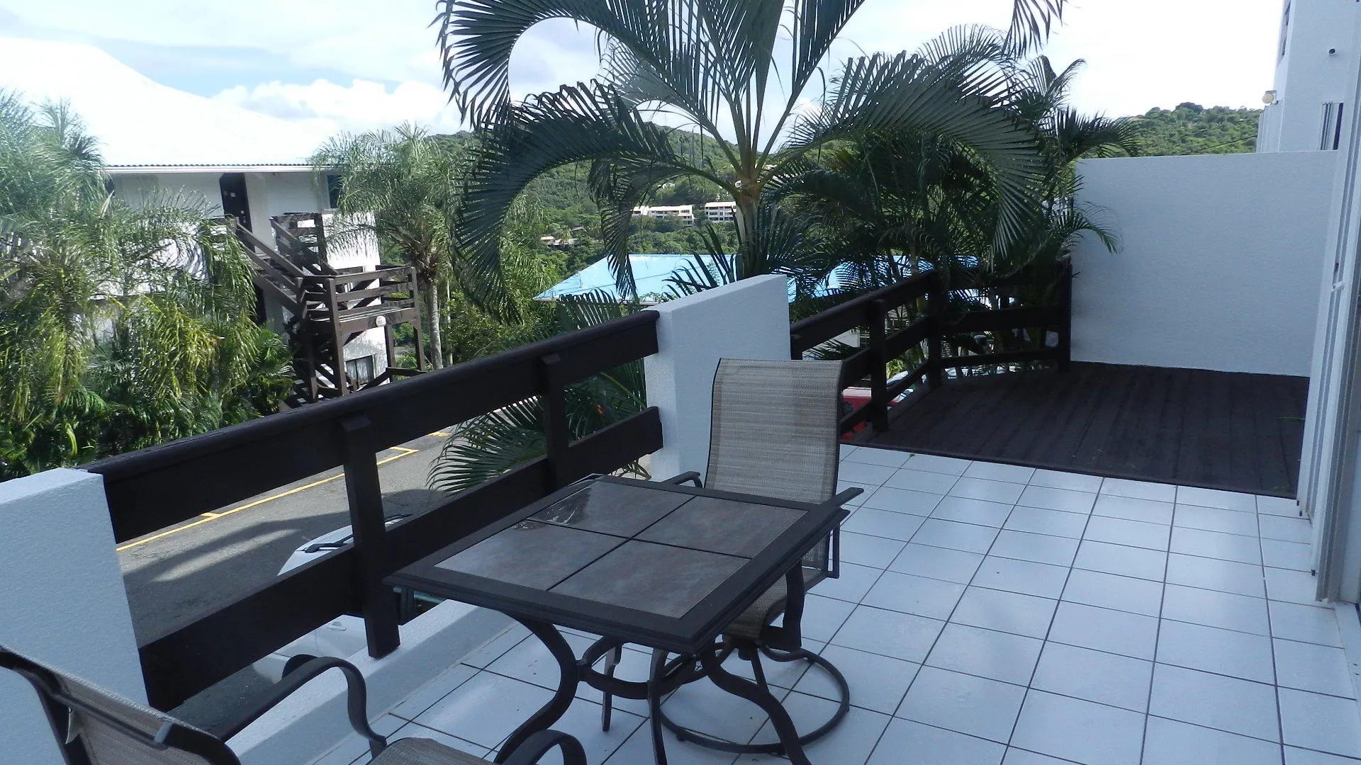 RARE THREE BR RENOVATED UNIT! Ground level private walk in entry, NO STAIRS. Could be modified for wheelchair. Large deck. Steps from large tranquil pool. Palm Gardens is a small, well built complex, low condo fee. Views North, gentle breezes. Convenient location 5 Min to Mall, 5 minutes Magen's Bay. 10 minutes to town, 15 minutes to East End.Offered mostly furnished. PRICED LIKE A 2 BR!