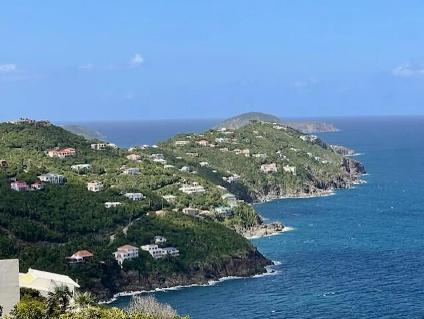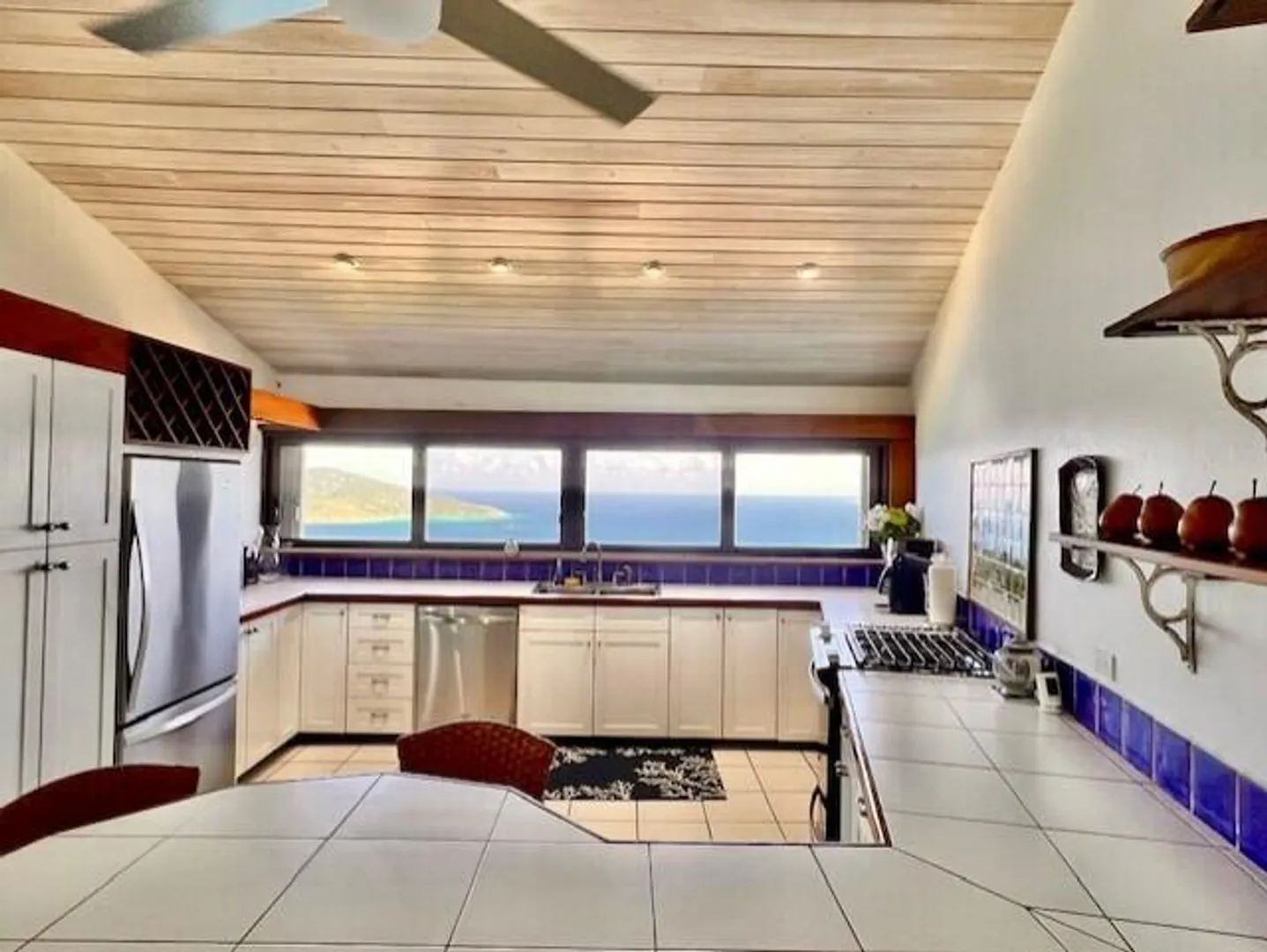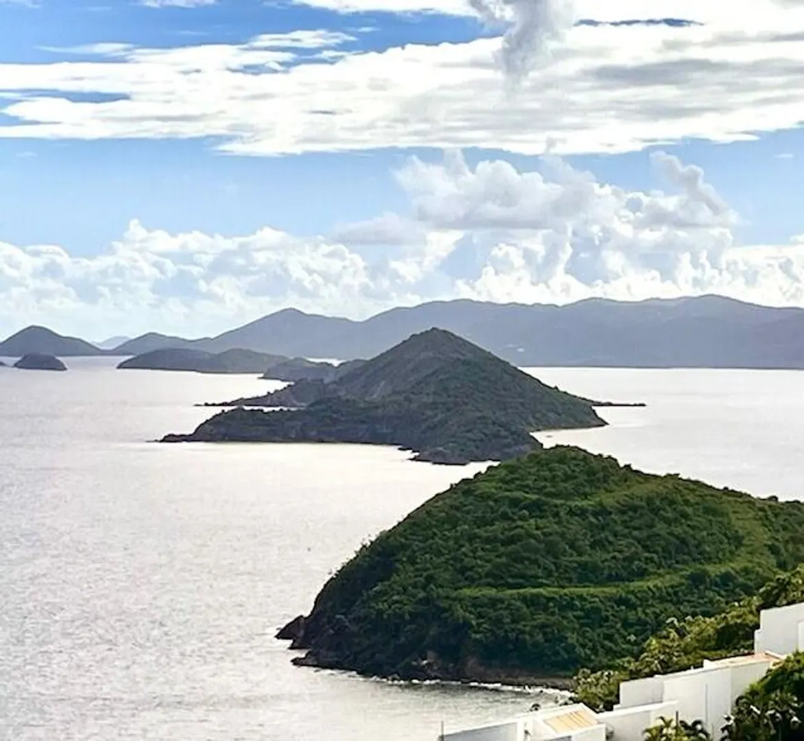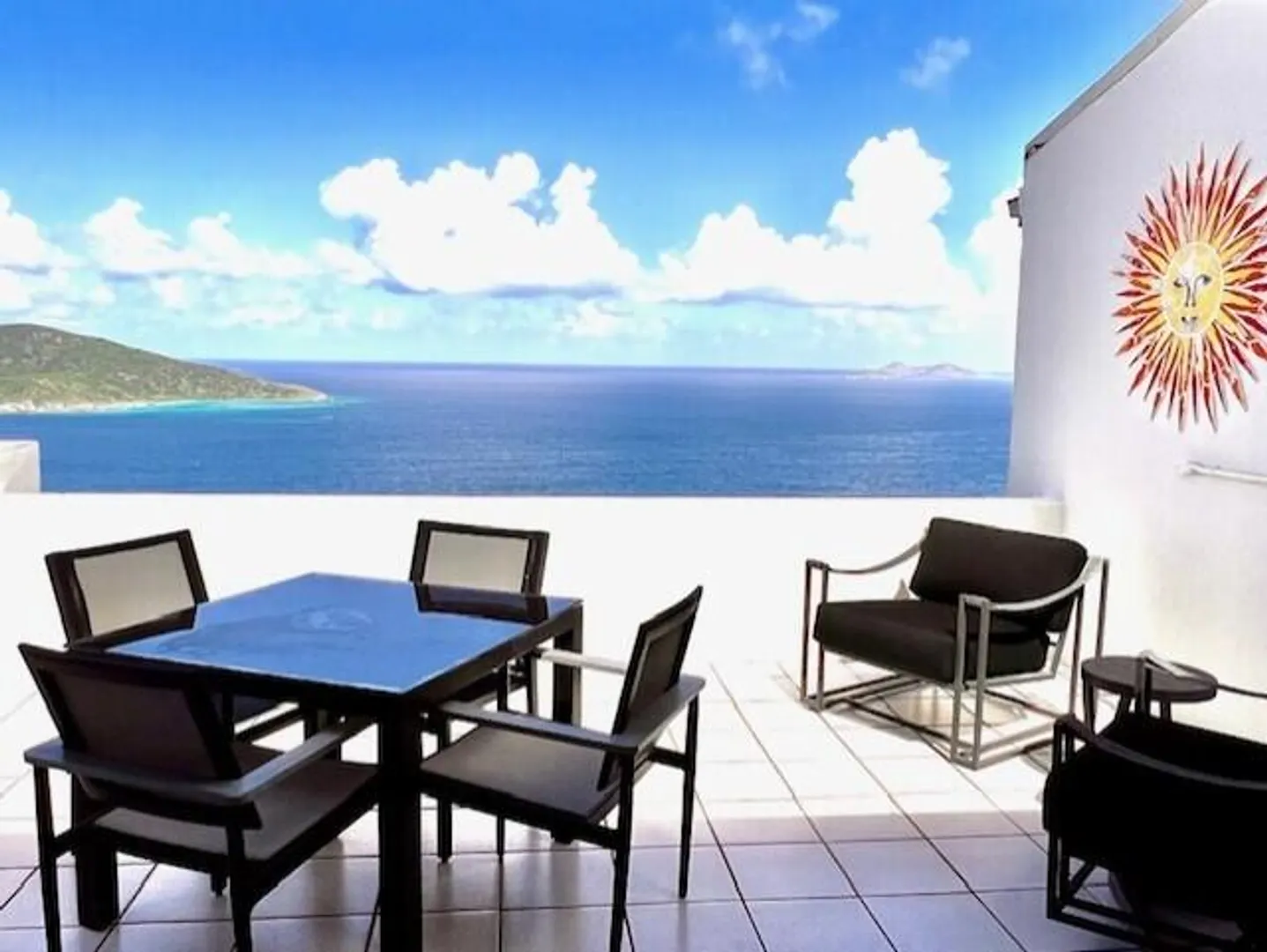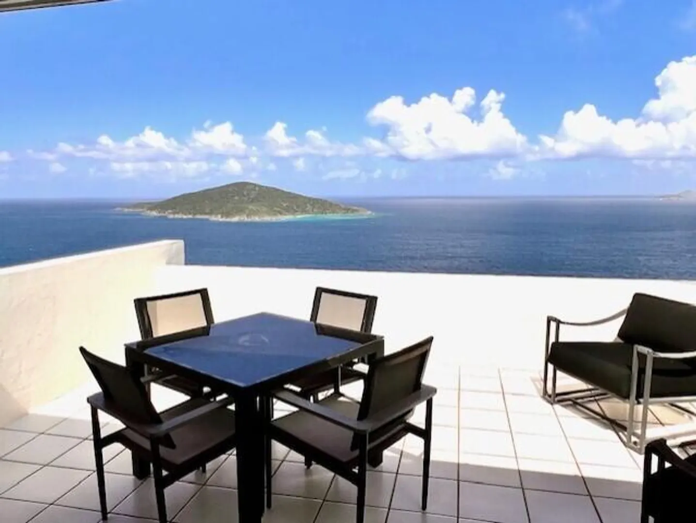 Location, Location, Location! Soak in breathtaking 180 degree panoramic views spanning from the Peterborg Peninsula to Hans Lollick, the British Virgin Islands and St John from this stunning 2-Bedroom 2-Bath Upper unit. Fully furnished and move-in ready, this rare ''splayed'' layout offers extra space and privacy, featuring an expanded , remodeled kitchen with abundant counter space and a generous bar seating area - perfect for entertaining or relaxed island living.You'll love the whitewashed Cypress ceilings that fill the home with coastal charm, and the insulated main Bedroom designed for comfort. Every room captures unobstructed ocean views, while the spacious private deck is ideal for enjoying the cooling Christmas winds or spotting whales in the turquois waters below.Additional highlights include a shared 30 KW generator (shared by only the other 2 units in the building), ample parking , and easy access to community amenities- Just a short walk to Sanderling Pool and only minutes away from world-famous Magens Bay Beach.