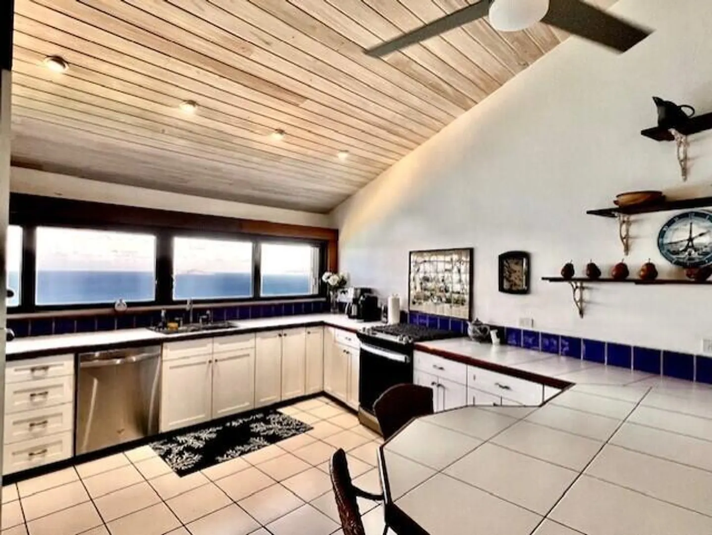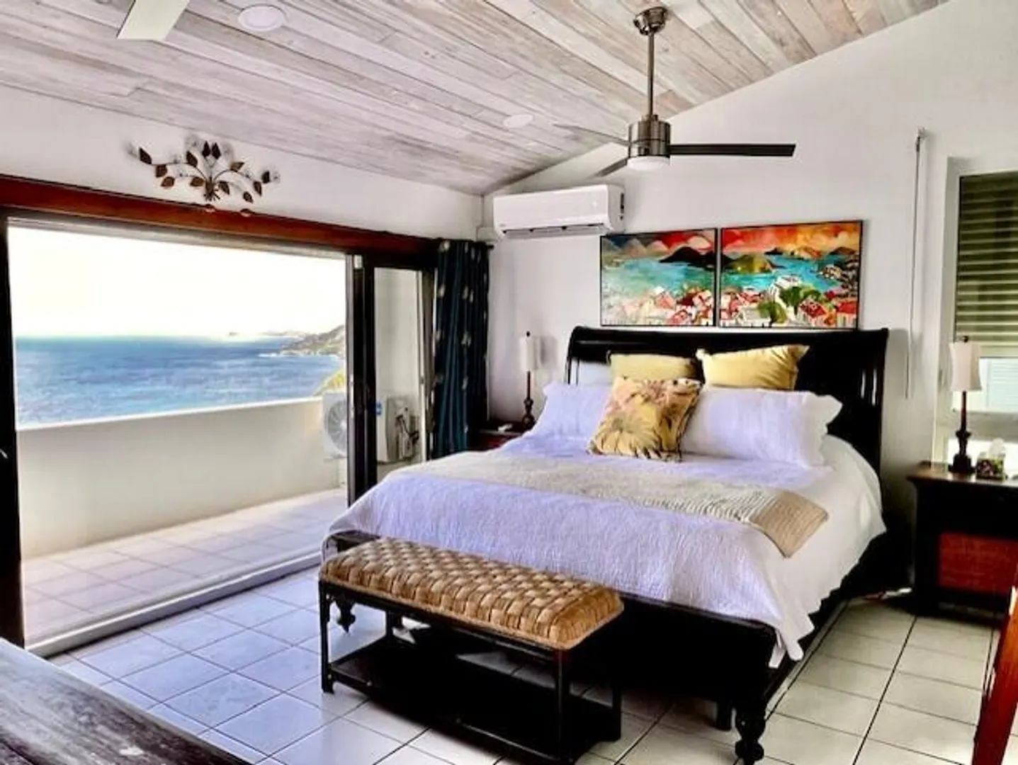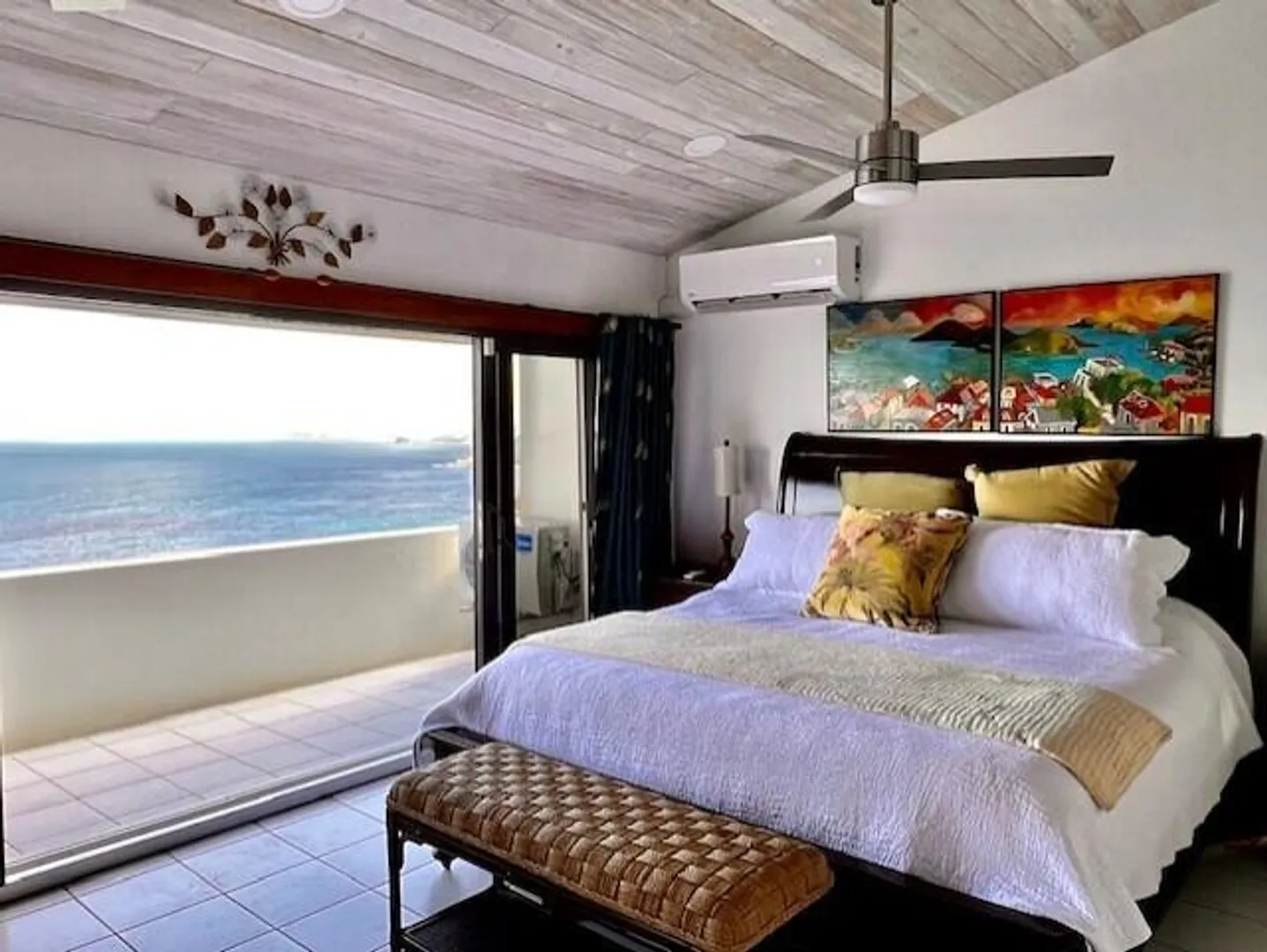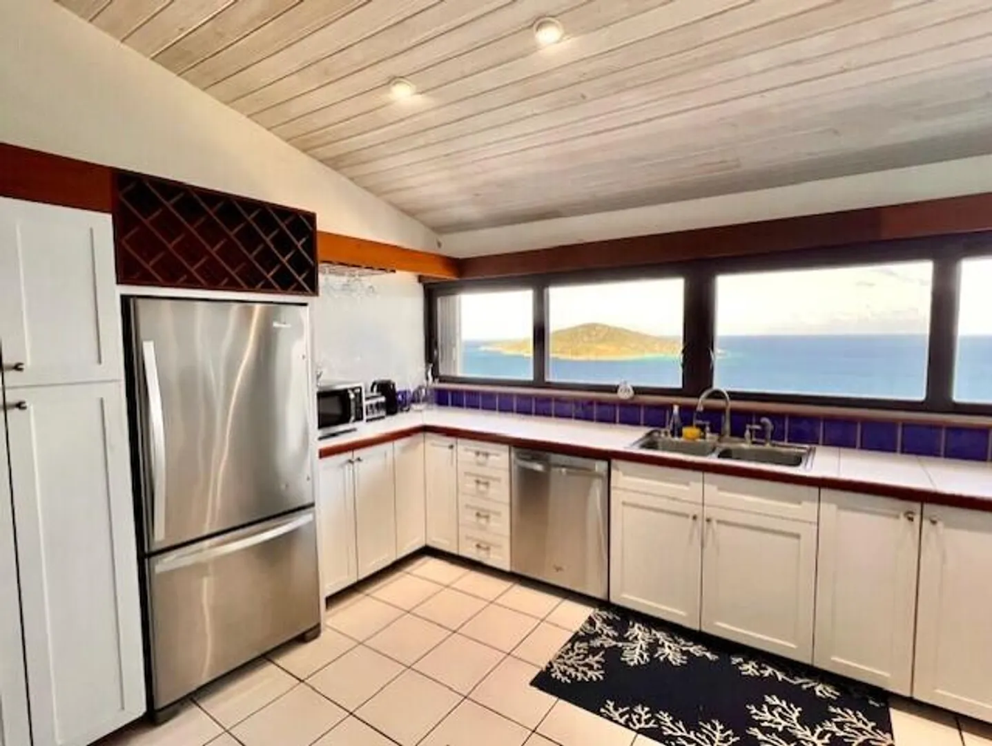 Location, Location, Location! Soak in breathtaking 180 degree panoramic views spanning from the Peterborg Peninsula to Hans Lollick, the British Virgin Islands and St John from this stunning 2-Bedroom 2-Bath Upper unit. Fully furnished and move-in ready, this rare ''splayed'' layout offers extra space and privacy, featuring an expanded , remodeled kitchen with abundant counter space and a generous bar seating area - perfect for entertaining or relaxed island living.You'll love the whitewashed Cypress ceilings that fill the home with coastal charm, and the insulated main Bedroom designed for comfort. Every room captures unobstructed ocean views, while the spacious private deck is ideal for enjoying the cooling Christmas winds or spotting whales in the turquois waters below.Additional highlights include a shared 30 KW generator (shared by only the other 2 units in the building), ample parking , and easy access to community amenities- Just a short walk to Sanderling Pool and only minutes away from world-famous Magens Bay Beach.