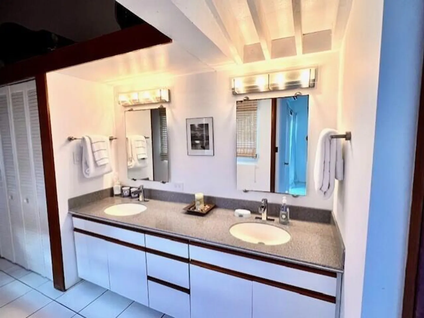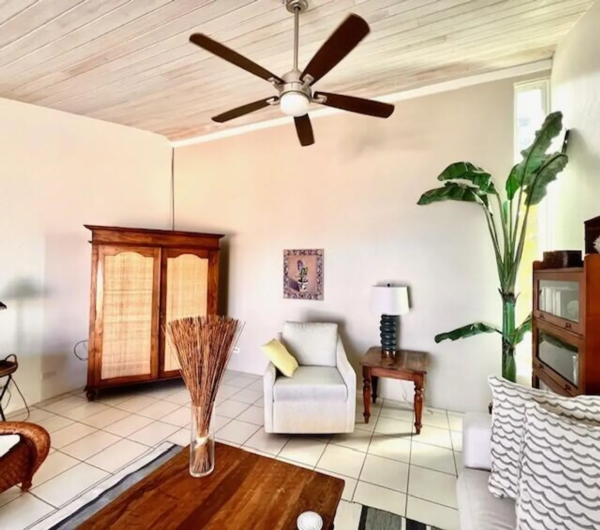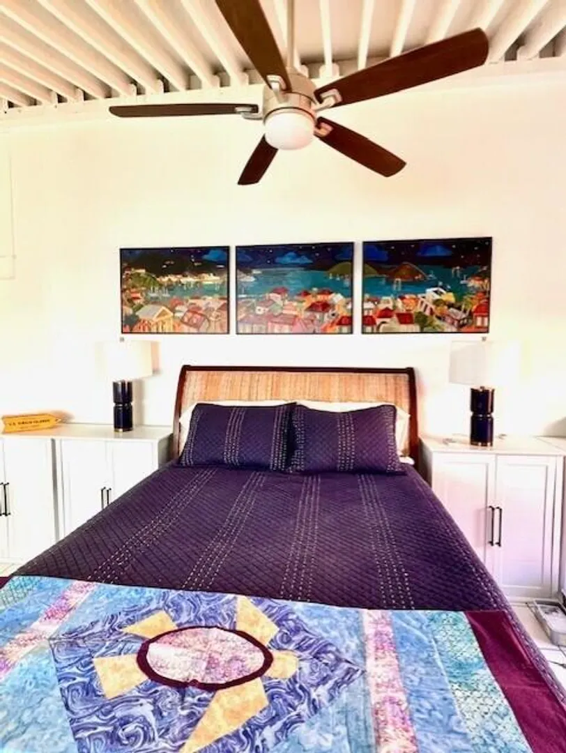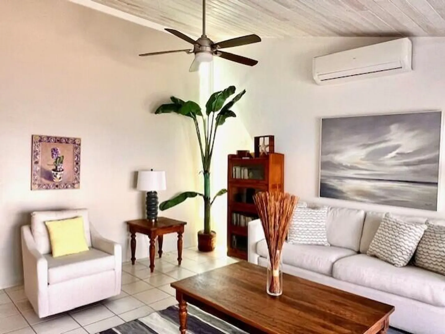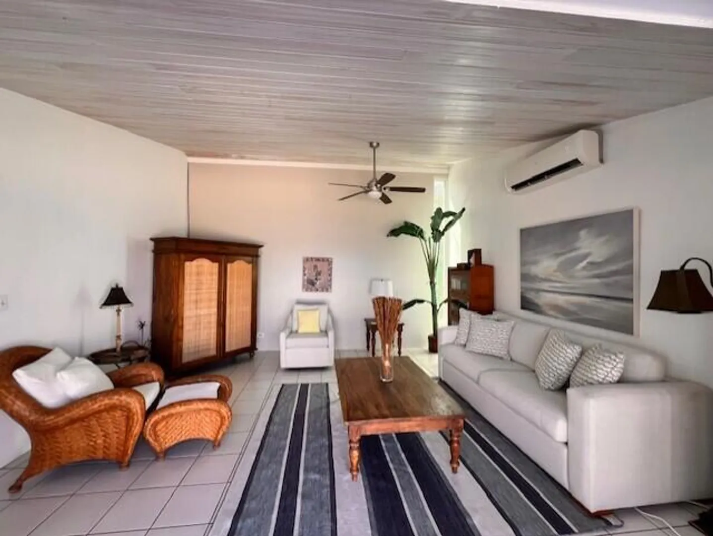 Location, Location, Location! Soak in breathtaking 180 degree panoramic views spanning from the Peterborg Peninsula to Hans Lollick, the British Virgin Islands and St John from this stunning 2-Bedroom 2-Bath Upper unit. Fully furnished and move-in ready, this rare ''splayed'' layout offers extra space and privacy, featuring an expanded , remodeled kitchen with abundant counter space and a generous bar seating area - perfect for entertaining or relaxed island living.You'll love the whitewashed Cypress ceilings that fill the home with coastal charm, and the insulated main Bedroom designed for comfort. Every room captures unobstructed ocean views, while the spacious private deck is ideal for enjoying the cooling Christmas winds or spotting whales in the turquois waters below.Additional highlights include a shared 30 KW generator (shared by only the other 2 units in the building), ample parking , and easy access to community amenities- Just a short walk to Sanderling Pool and only minutes away from world-famous Magens Bay Beach.