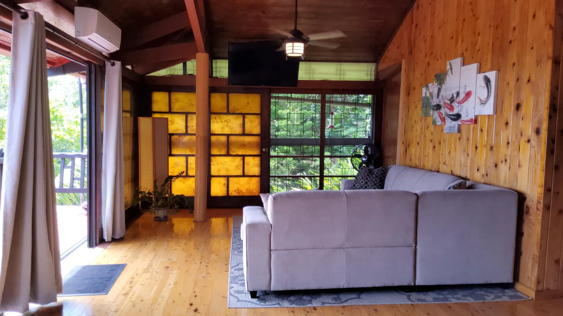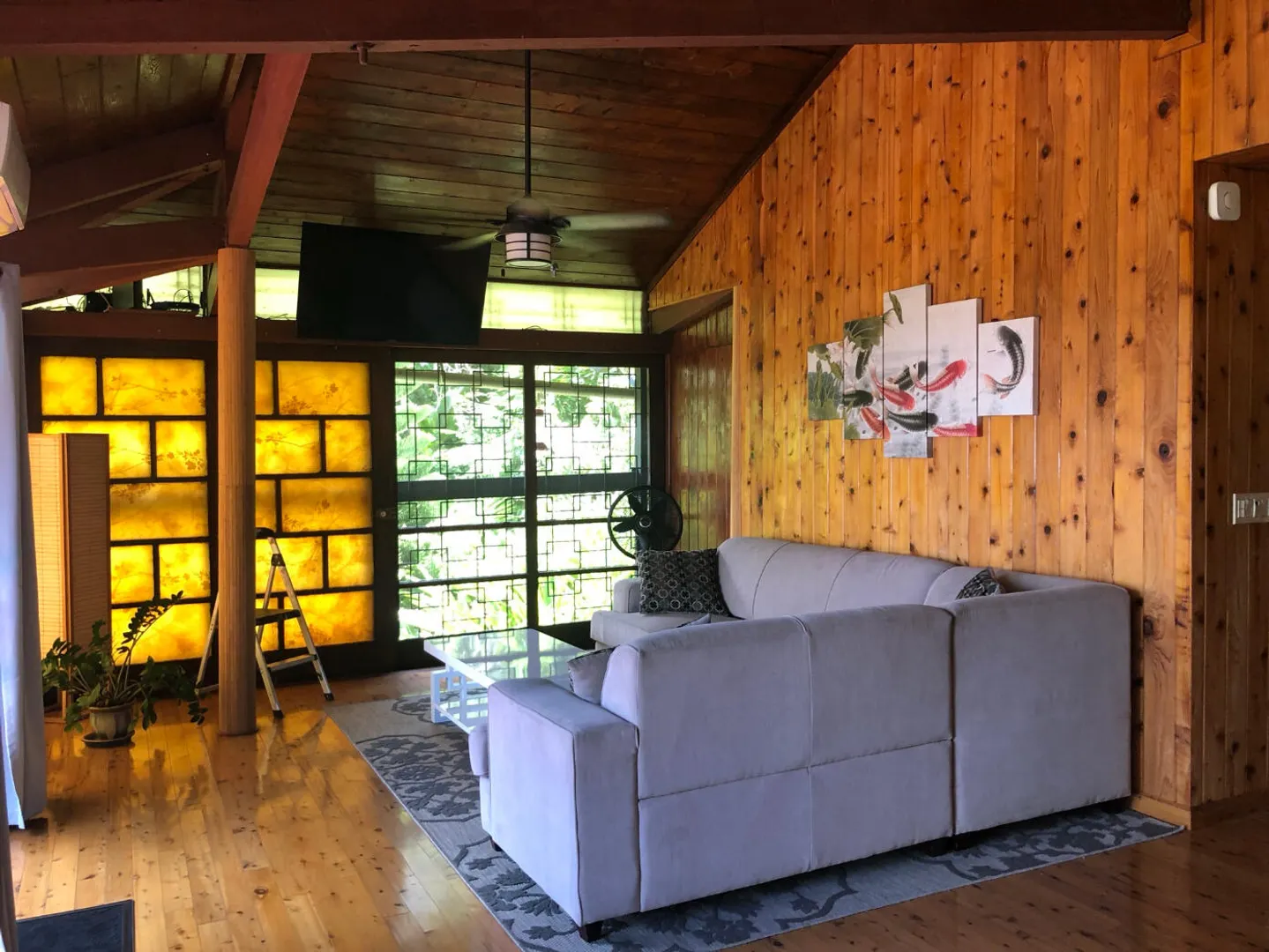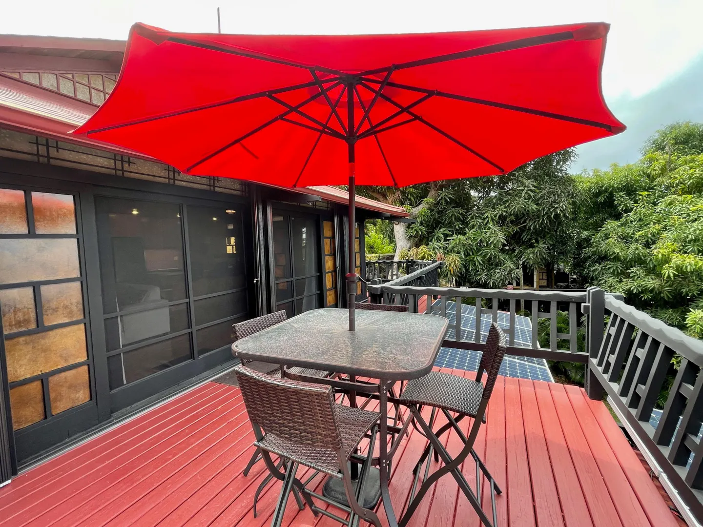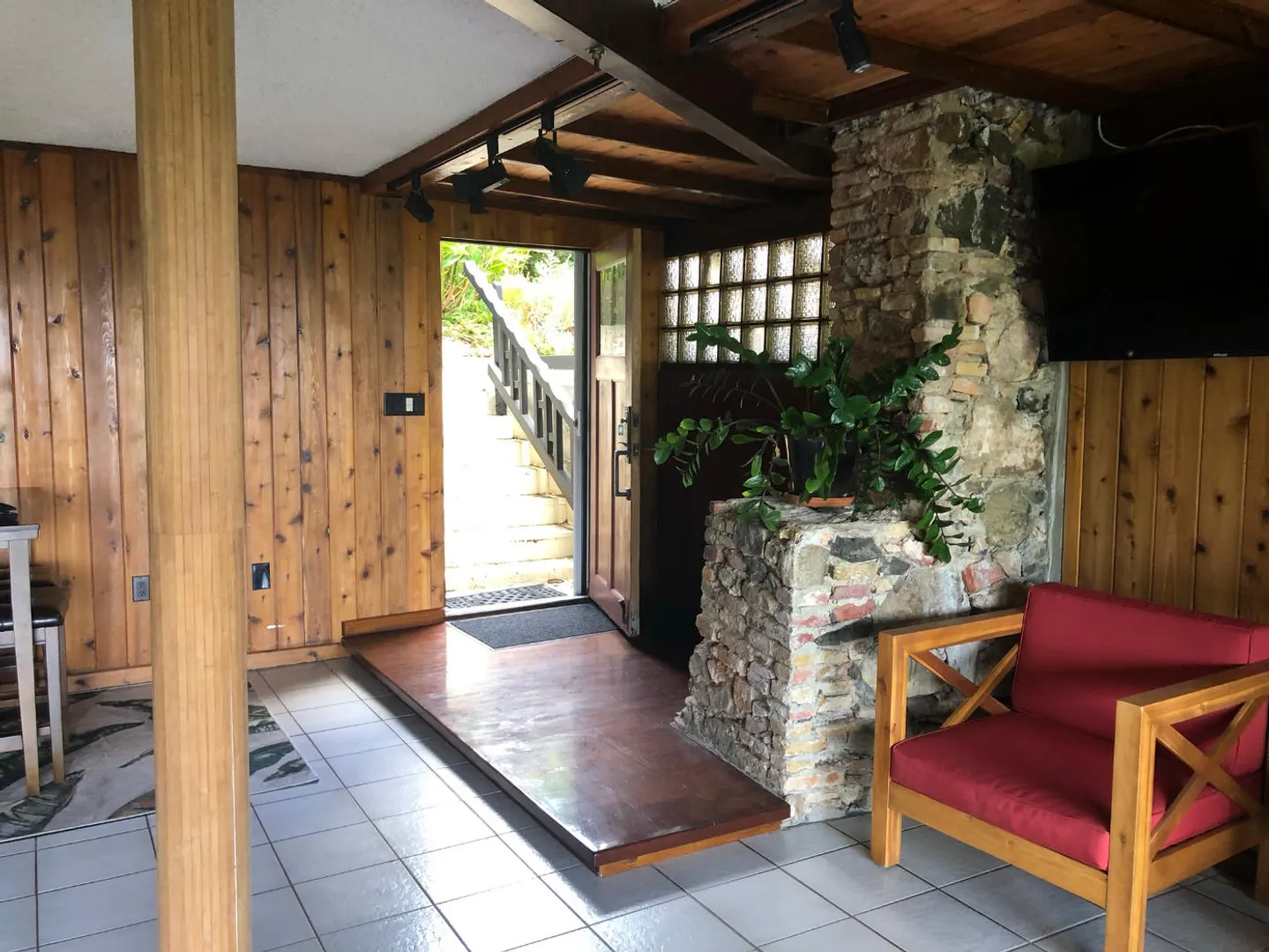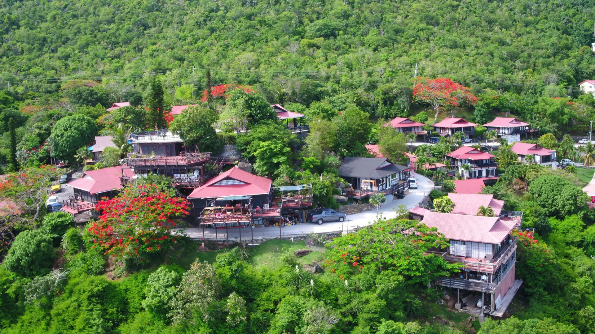 Unique, small complex. The decks boast stunning views. You are surrounded by the lush tropical landscaping in this gated community. Saltwater pool with large deck, on-site mail delivery. Dogs & cats allowed with board approval. For your renters, there is a coin-operated laundry facility on site. The Upper Unit is the central unit, gas stove, the primary's bath has the on-suite laundry and includes a separate shower. The lower unit has one bedroom, full kitchen w/electric stove, living room, and bathroom--separate water meters for each unit--small Veranda with views of a historical wall, drop-down shade from the sun. Take your shoes off at this unit and walk on some green grass, making the Veranda so unique--an extraordinary place. Gas Grill. Solar Panels for interior fans. Cedar closets.