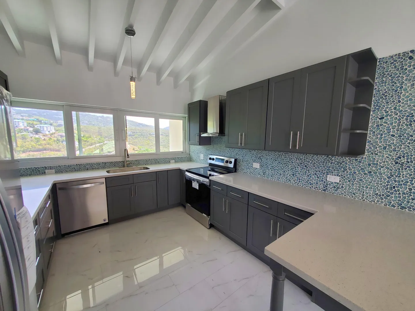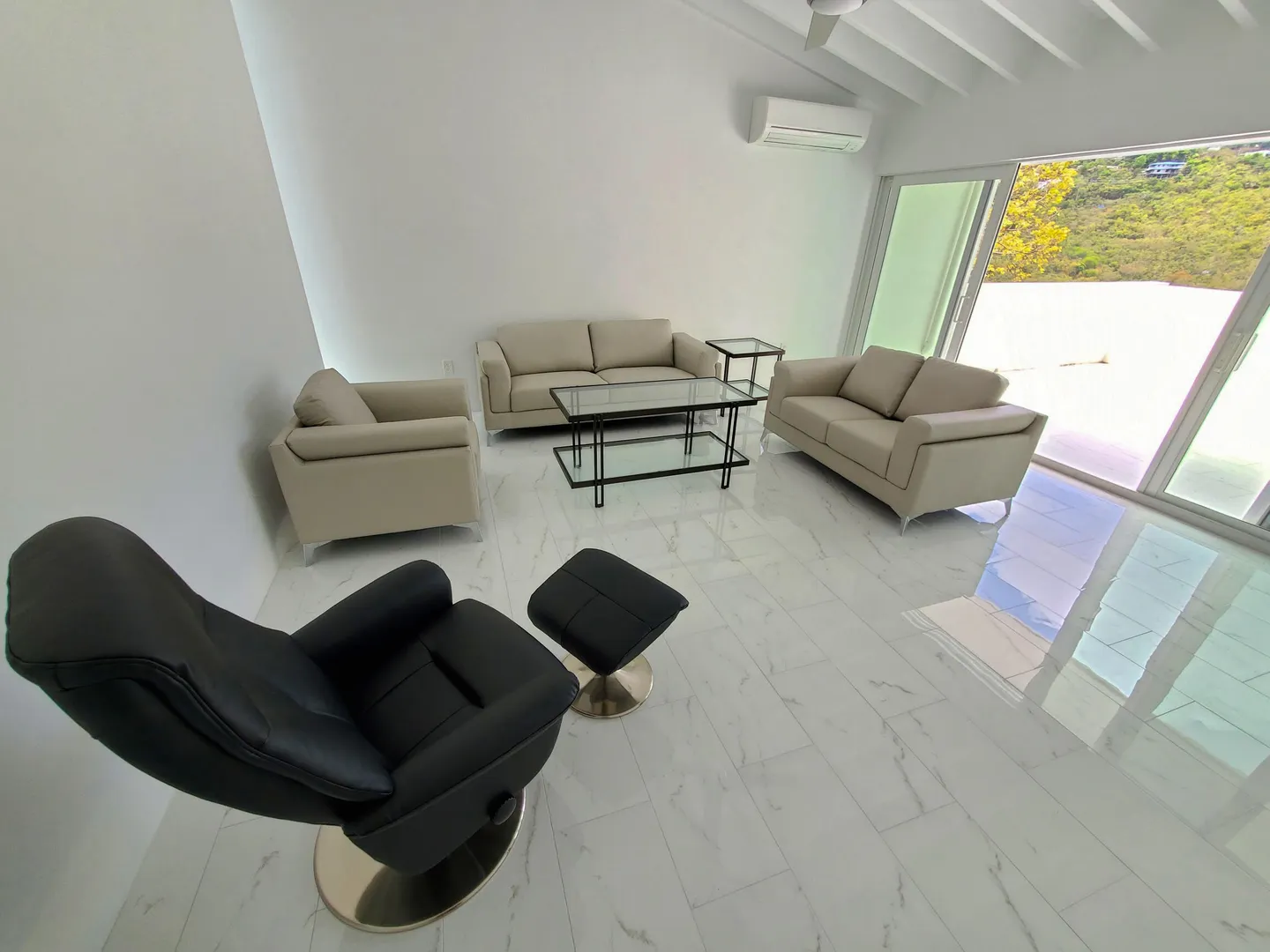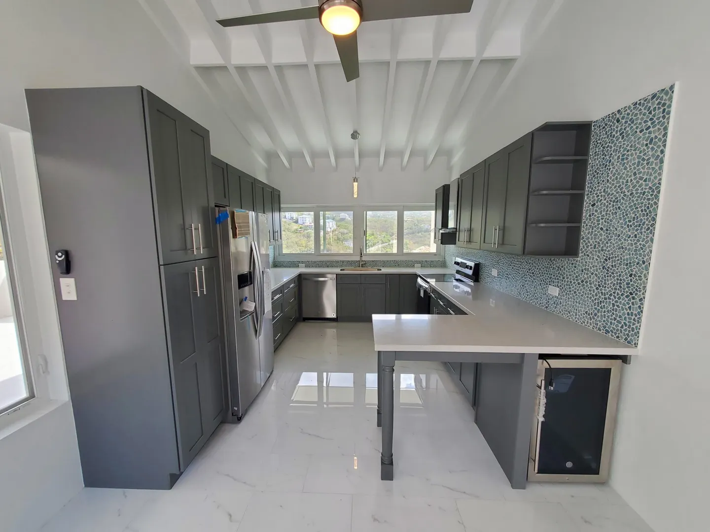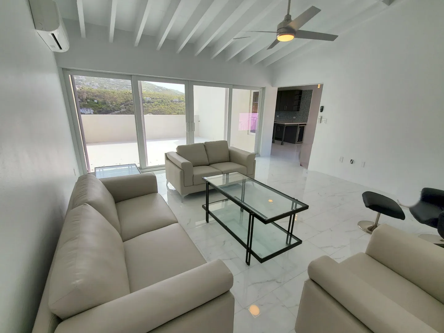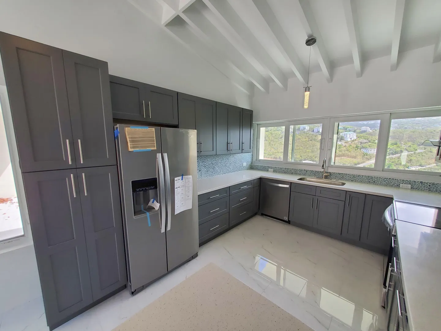 This gorgeous remodeled condo with high end finishes and attention to all details is a must see. Custom front door greets you.Once inside the vaulted ceilings,large living room area just off of the large patio/deck area is perfect for Caribbean indoor/outdoor living. New roof, new electric service and all new appliances,including wine fridge for those special bottles. All new split a/c units. The over sized master bedroom has its own private patio and the bathroom is elegantly designed with soaking tub and frameless shower enclosure. The spacious guest bedroom can easily fit two queen size beds & night stands and has a nook for a sitting area or desk. The entire unit is upgraded with impact sliders and windows.Covered parking space. Large diesel generator with automatic transfer switch.