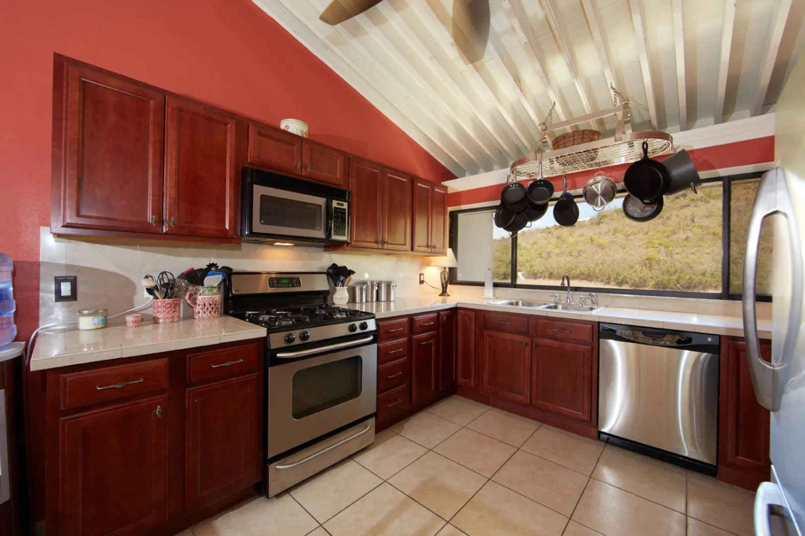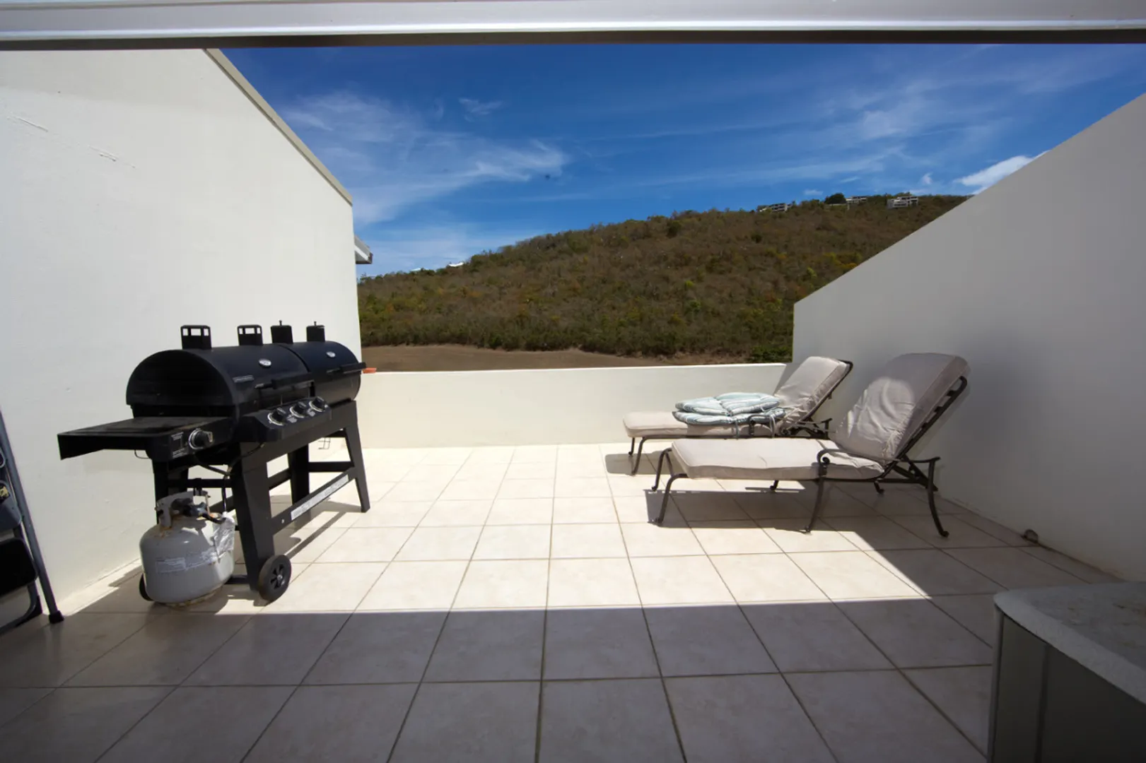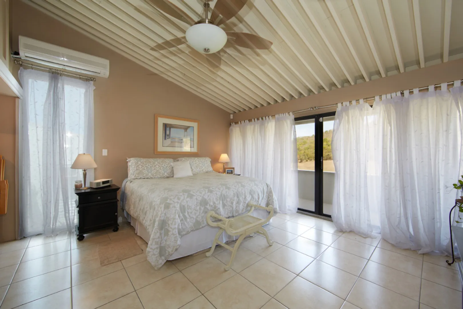 Beautifully upgraded spacious upper level 2/2 condo in Tennis Village. Lovely tile throughout, cathedral ceilings, wide open kitchen with gorgeous hard wood cabinets, stainless steel appliances and pretty sea views toward Magen's Bay. 65kw automatic generator.