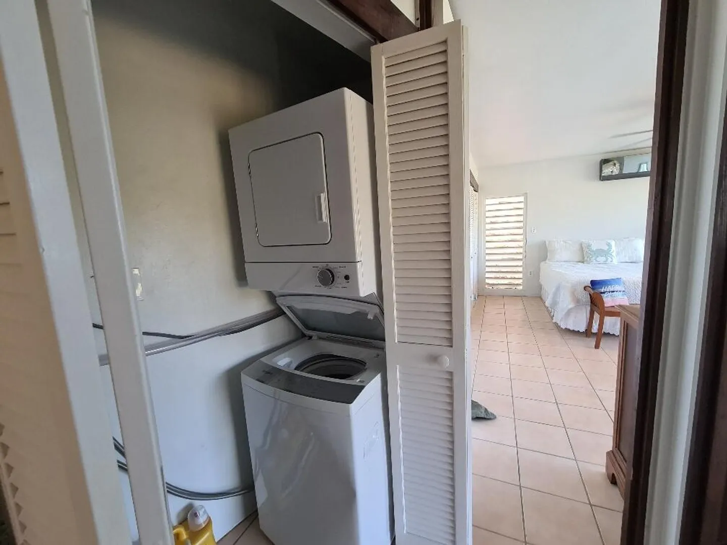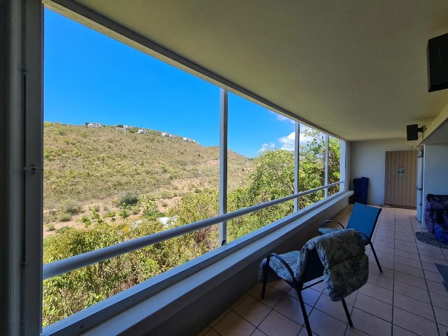 Mahogany Run Tennis Village one bedroom condo with great location at end of cul de sac. Quiet, private and lovely views out to water and tip of Hans Lollick. Renovated in 2018 with new kitchen, new bathroom, new split a/c units in bedroom and living room and new washer dryer in 2022. This is a larger unit with a 'splayed' floorplan (see documents) and bedroom porch has been enclosed for additional bedroom space. Light, airy, lovely white & light blue veined quartz counters, white cabinets, this is the perfect island getaway or primary residence.Condo fee $1,260.22 all in