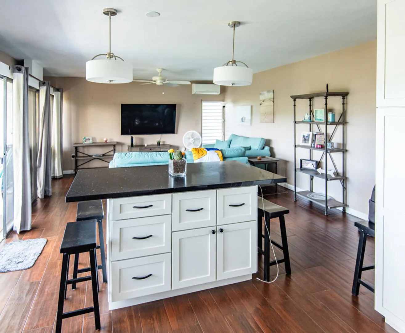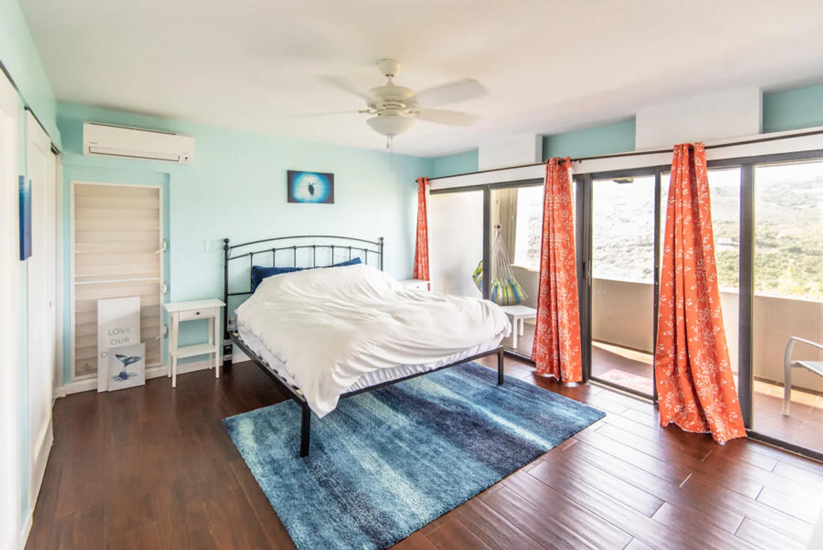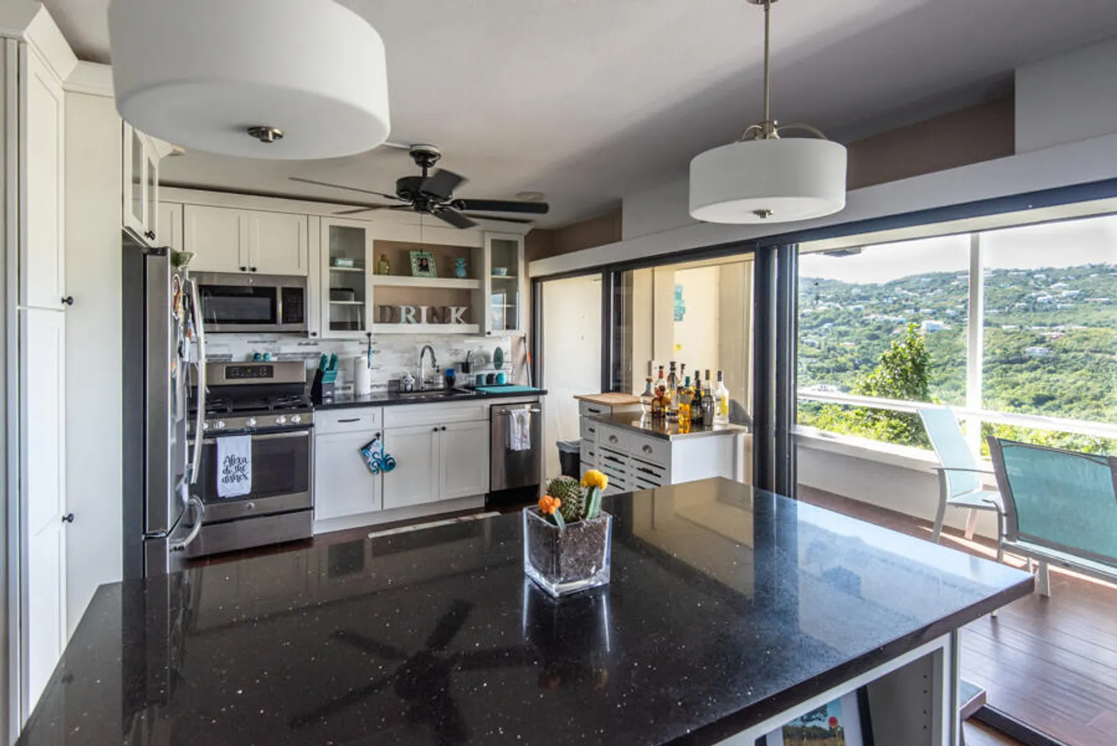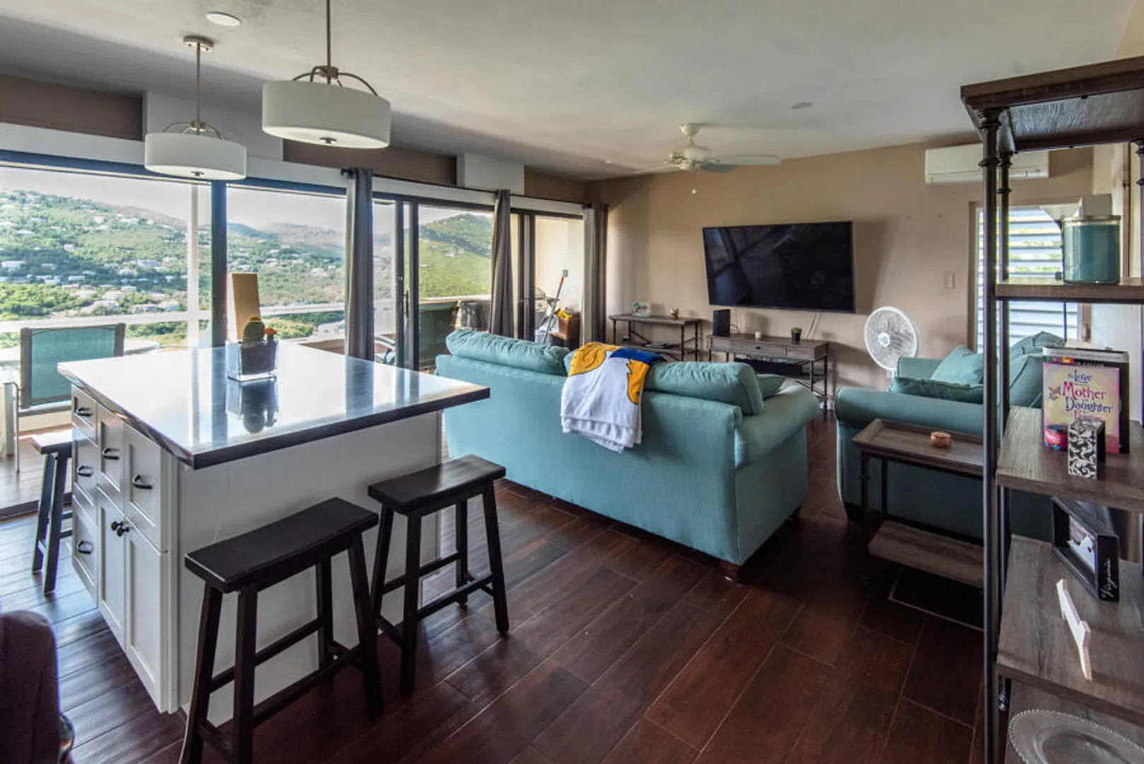 Beautifully remodeled condo with wood style porcelain floors, well-appointed kitchen, new doors, a/c units and more. Bedroom and living room open out onto covered porch overlooking the green valley and ocean beyond. Located in the upscale and gated Mahogany Run community, and convenient to Magens Bay Beach, downtown Charlotte Amalie and Red Hook. Roof was reinforced in 2020, unit remodeled in 2016.
