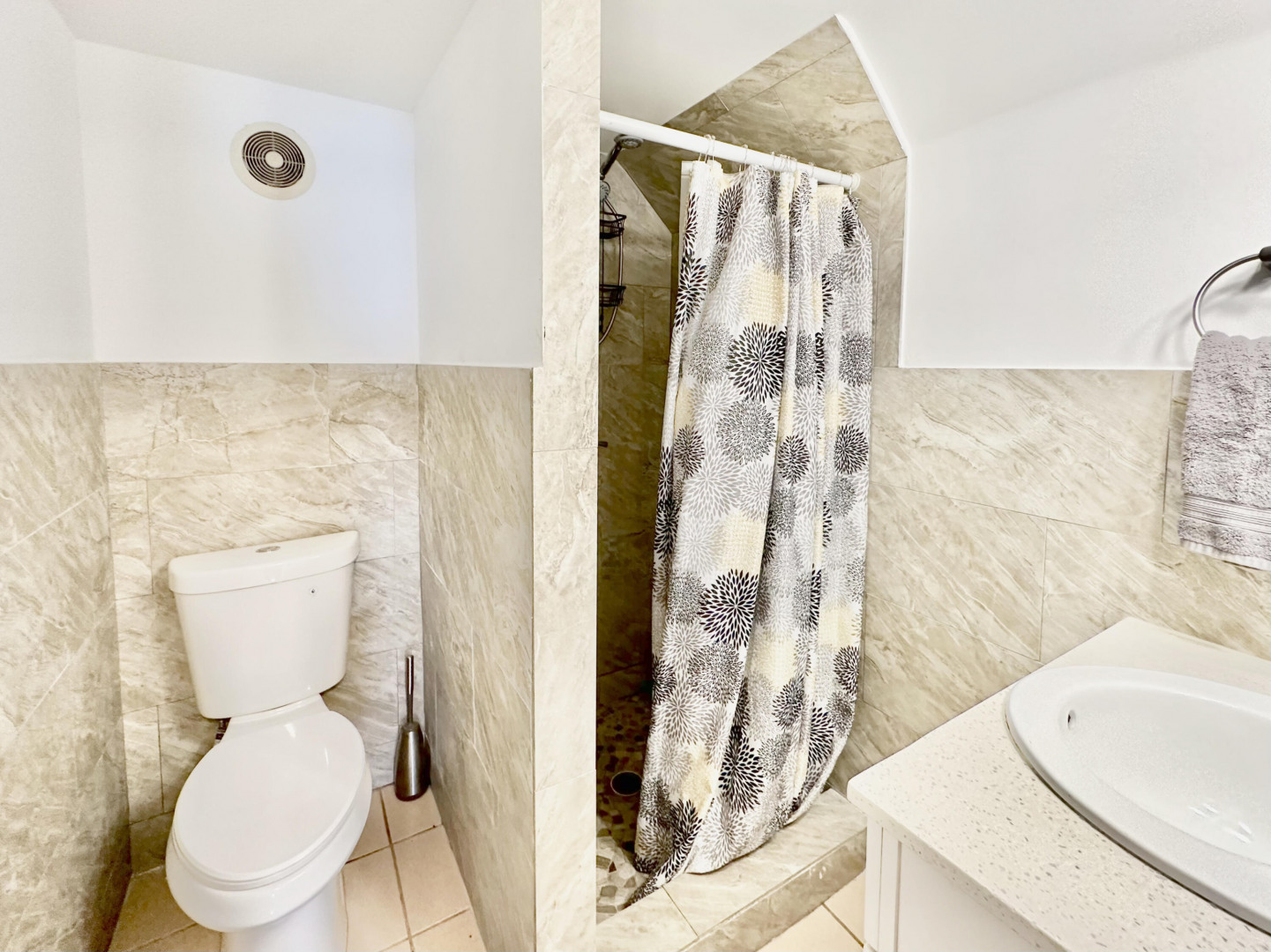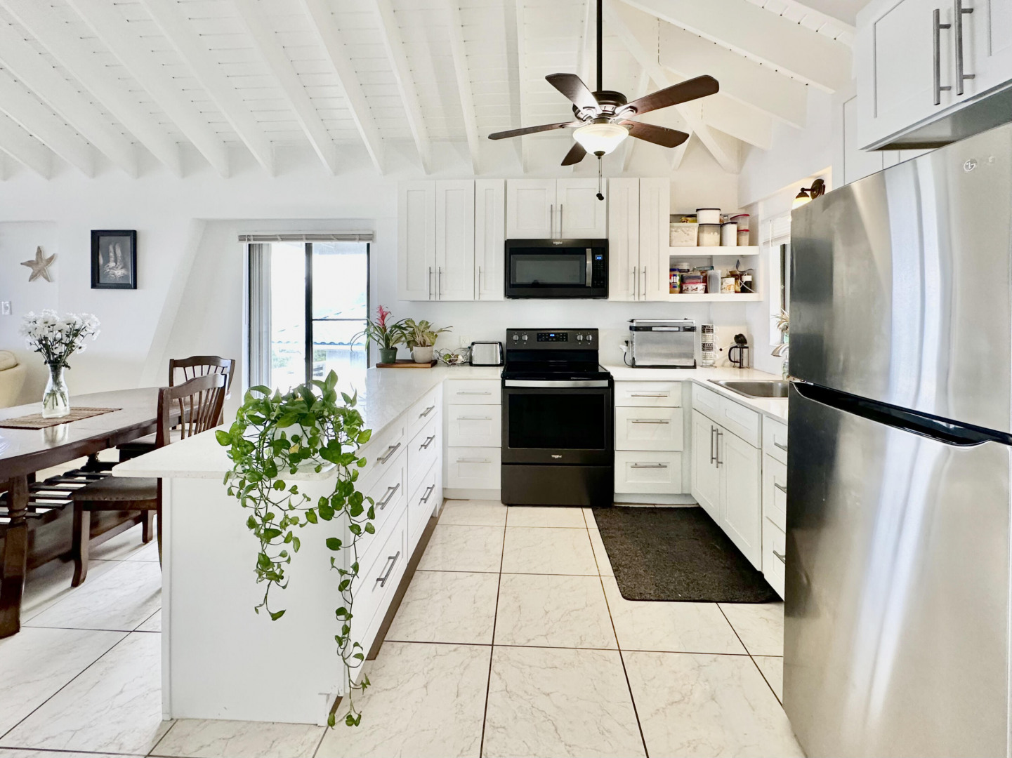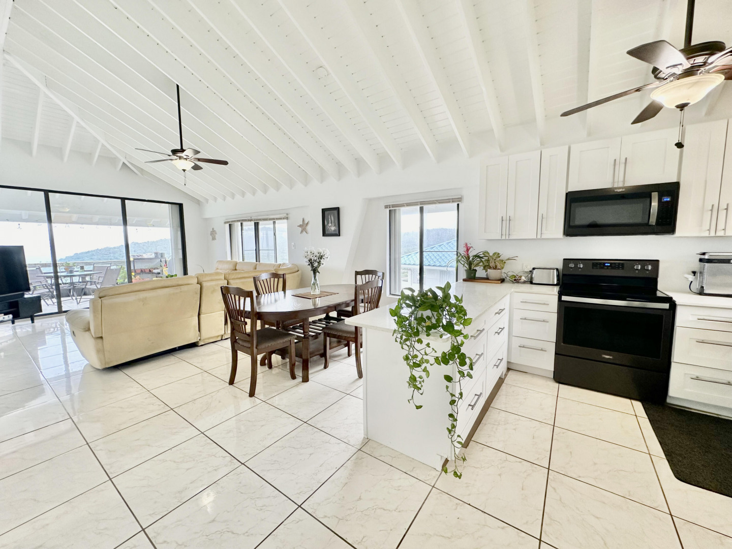 Looking for a 2 bedroom condo with a pool on the Northside? Look no further. You can have it all with this top floor unit featuring vaulted ceilings and unobstructed views of the Caribbean. Looking for some extra space or a 3rd bedroom? Yes, we have it. Check out the large loft space. Solid surface counter tops, updated cabinets, barn door with updated bathrooms, split AC units, and a covered patio to take in the Northside breezes. This condo has been updated and the furnishings stay. Bring your clothes, sit back, relax and enjoy the pool in paradise. Last building on the left in the complex with plenty of level overflow parking out front and one assigned spot. Welcome home to C7!