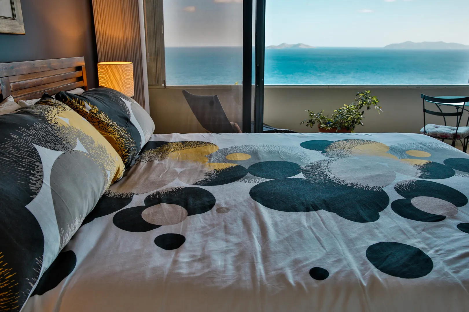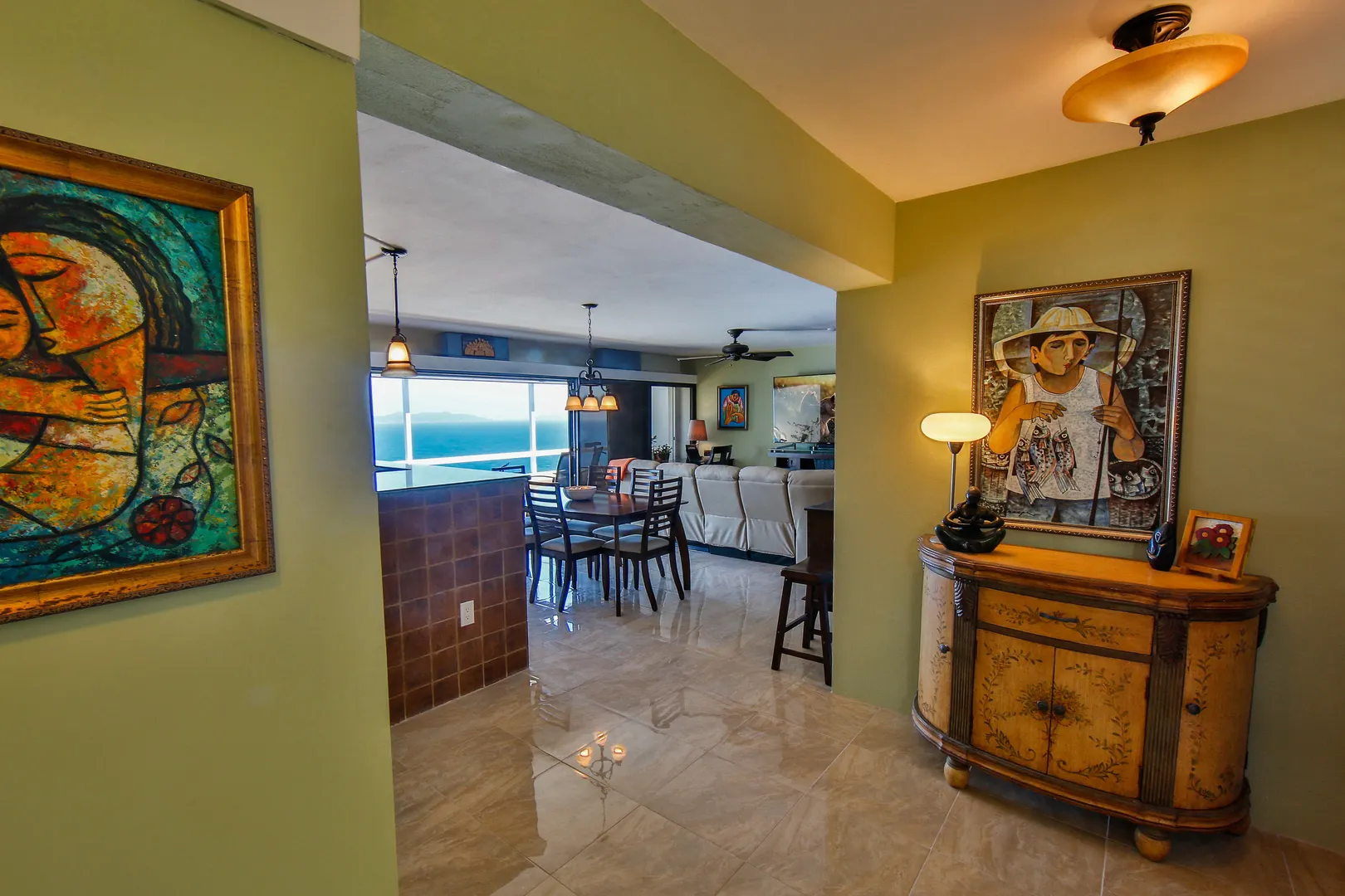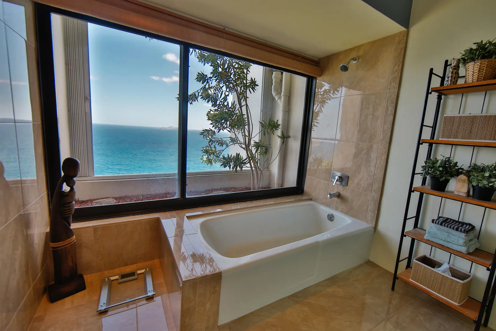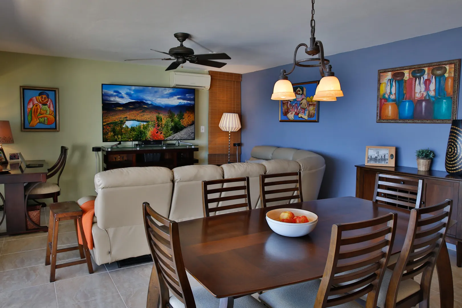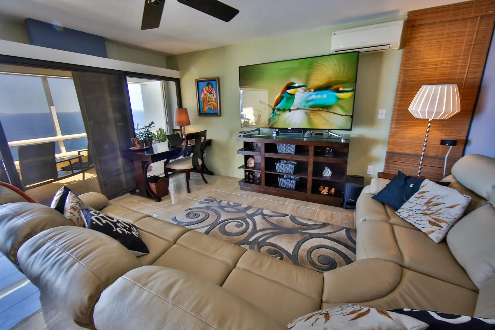 Hear the soothing sounds of the ocean and enjoy a remarkable down island view from this open floor plan two bedroom, two bath walk in condominium. With 28 ft. expanse of floor to ceiling glass there is an unobstructed view including all of the BVI and St John. Stylishly decorated with a contemporary vibe, the unit has recently been remodeled with 18 inch porcelain floor tiles. The open conceptlayout maximizes the enjoyment of the of the 30 ft.shaded deck off the living area. Optional amenities include SmartThings technology to control lighting/electronics and monitoring of doors opened/closed via your mobile devices plus smart TVs with apps allowing you to stream your favorite movies online.
