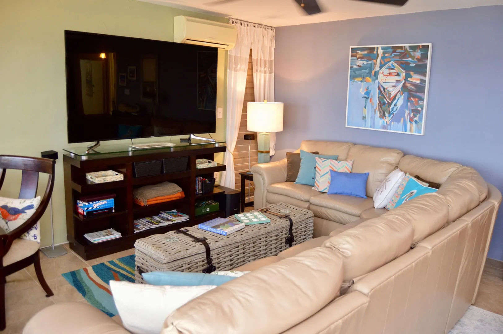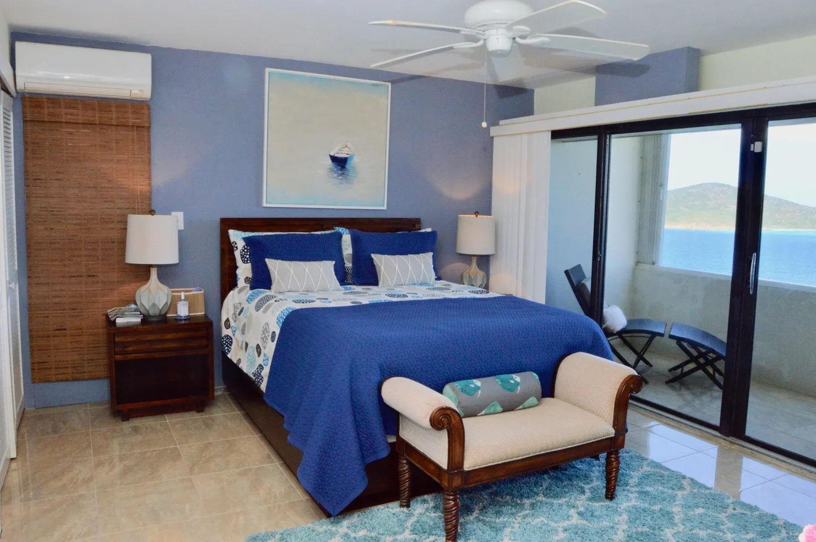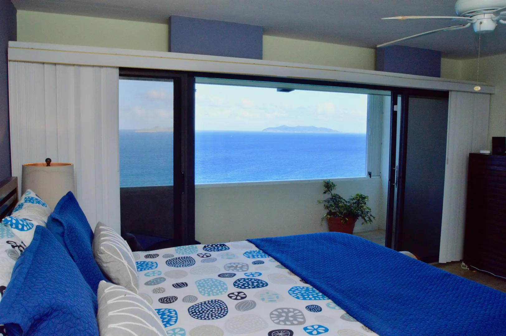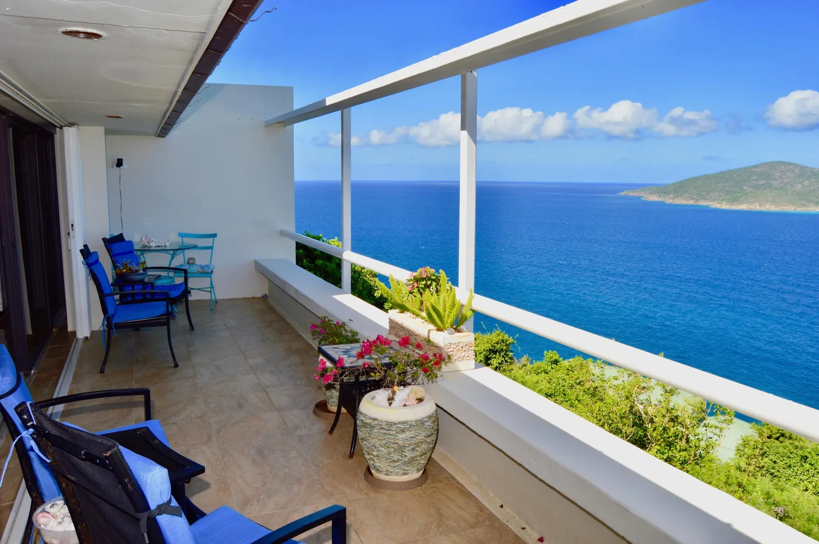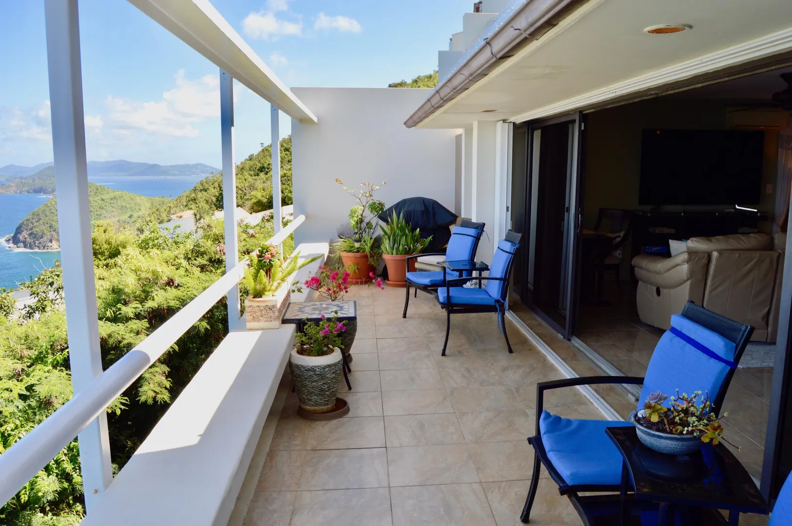 Have your breath be taken away by a remarkable down island view from this open floor plan two bedroom, two bath walk-in condominium. Enjoy the unobstructed views of the Hans Lollik, BVI to St.John and EVERYTHING in between, from your 30 ft.shaded deck!!!!! Elegantly decorated and spacious, this unit is one of a limited number of condos that has 2 meters and could legally have second bed/bath rented out. Hurricane shutters, ample storage, car-port, w/d, extended second bedroom, covered parking and much, much more....A MUST SEE!!!!!!