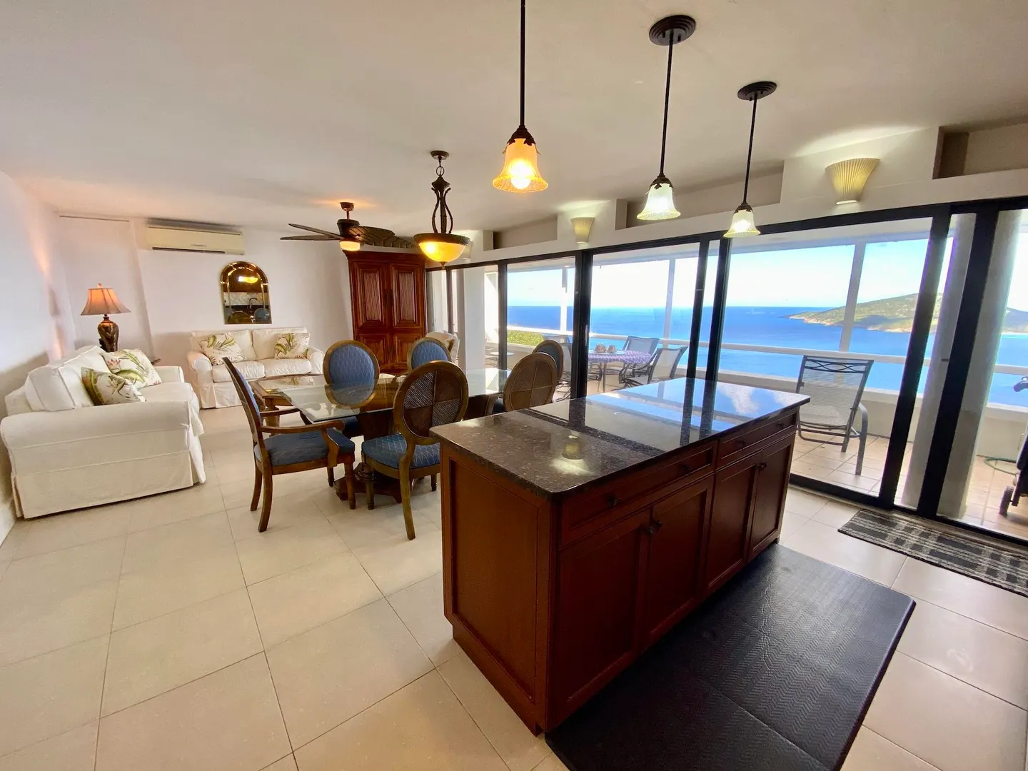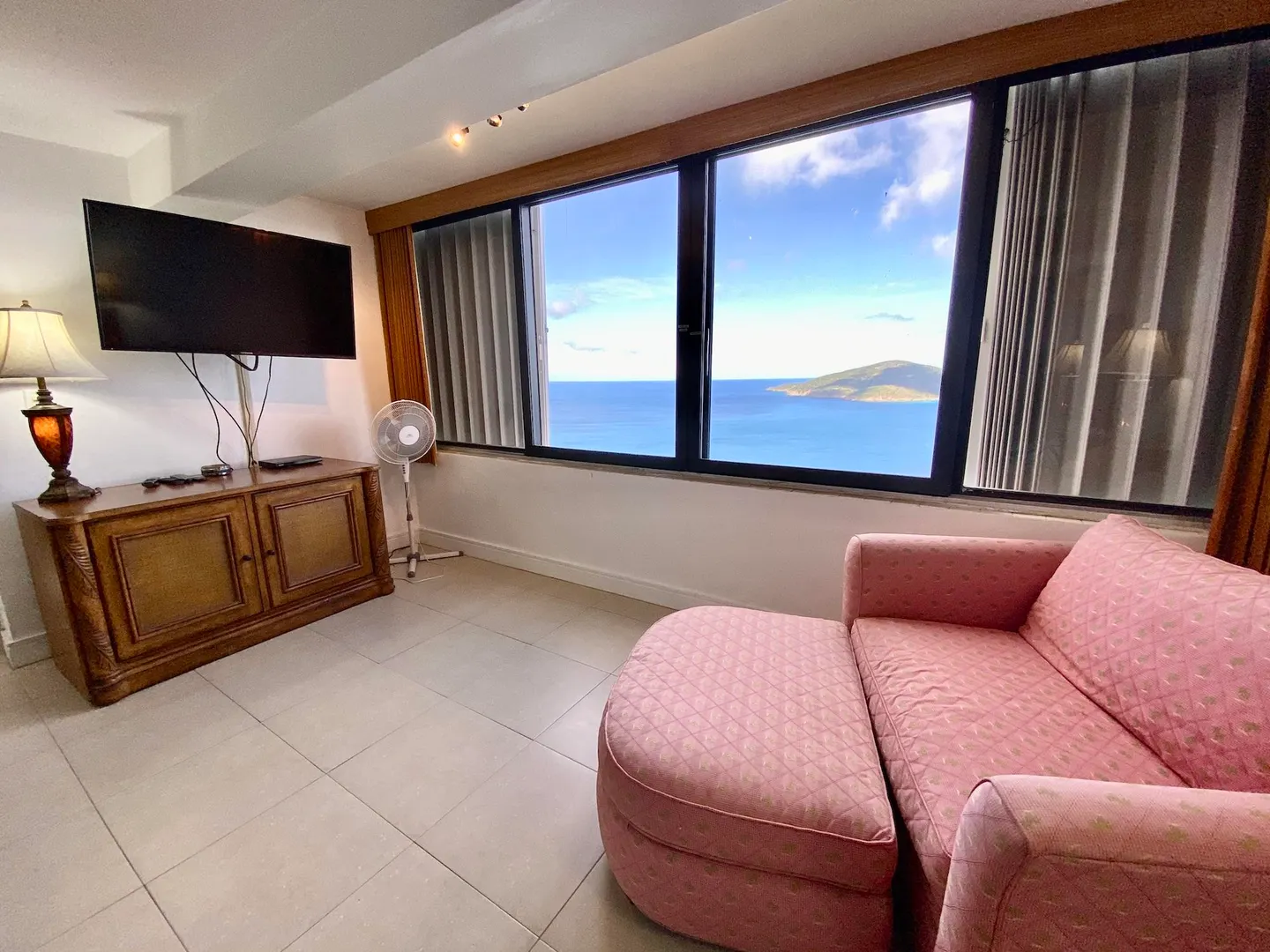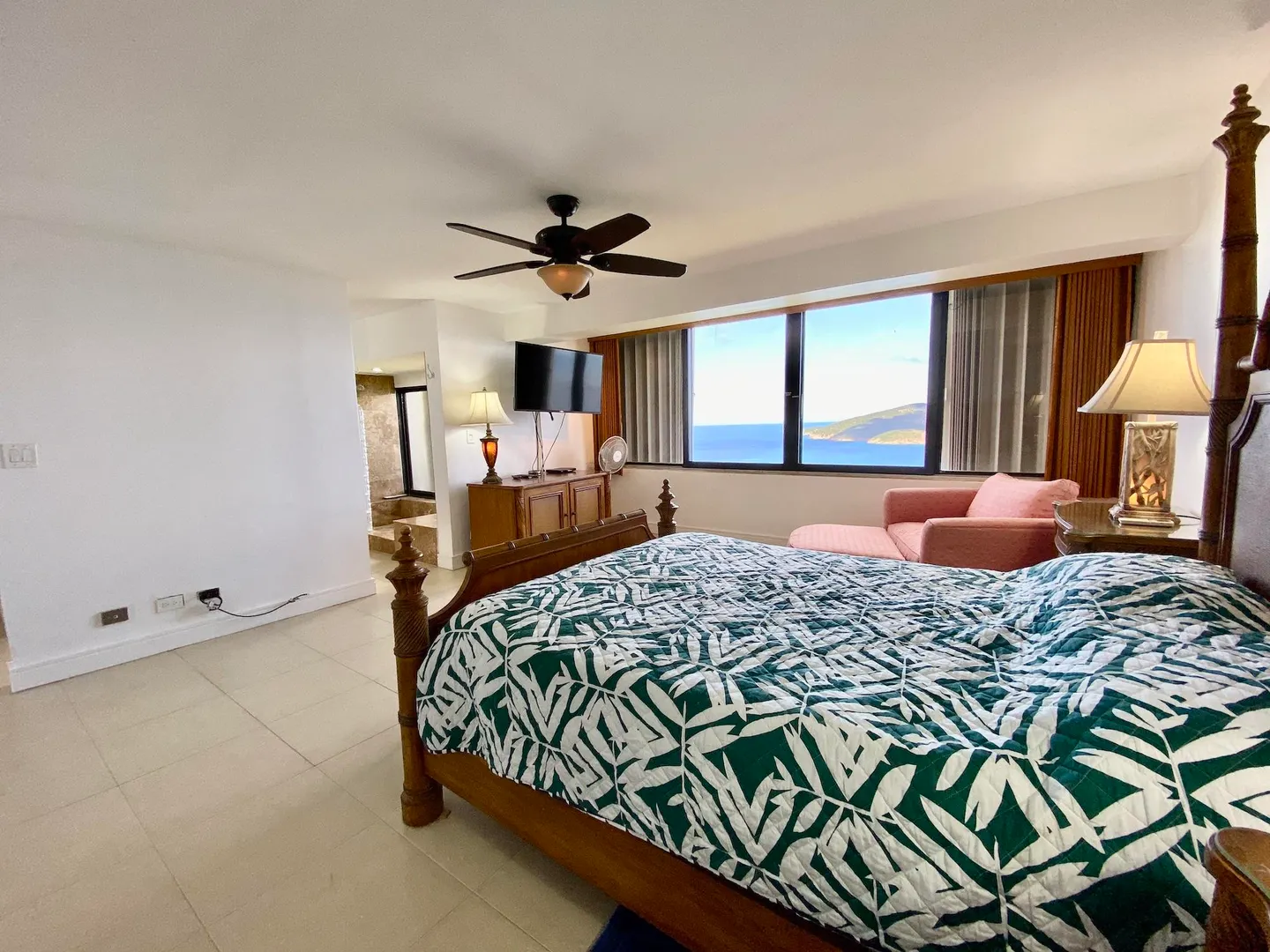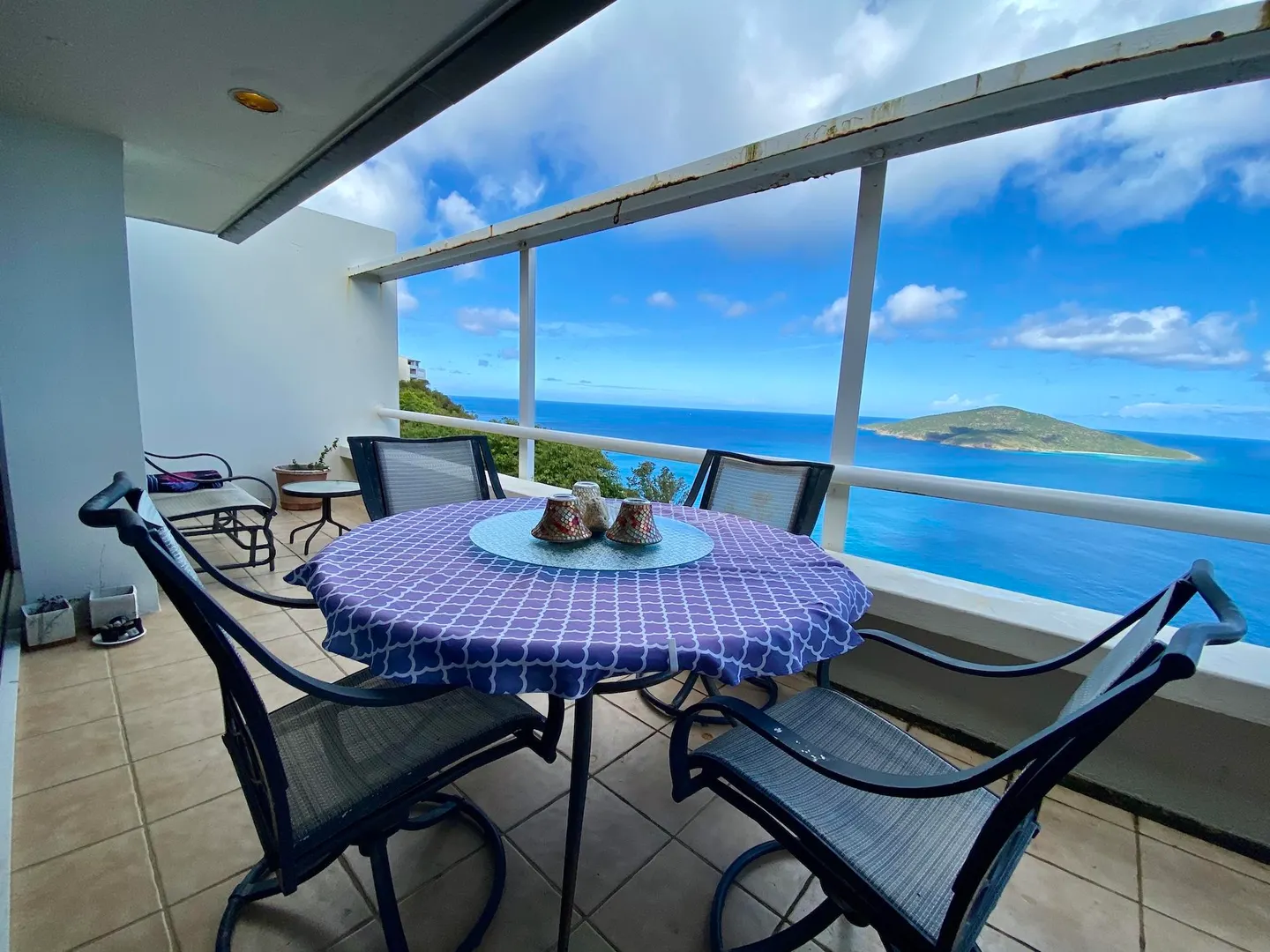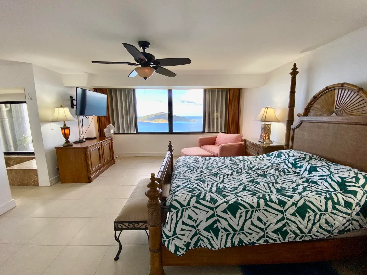 Experience dramatic views of Hans Lollick from every room in this elegantly furnished 2 Bedroom/2 bath condo. Located in the gated community, a short walk to a large pool, walk-in level (no steps), quiet cul-de-sac . Custom mahogany kitchen cabinets, Tommy Bahama furnishings, a/c, w/d and much, much more......a must see