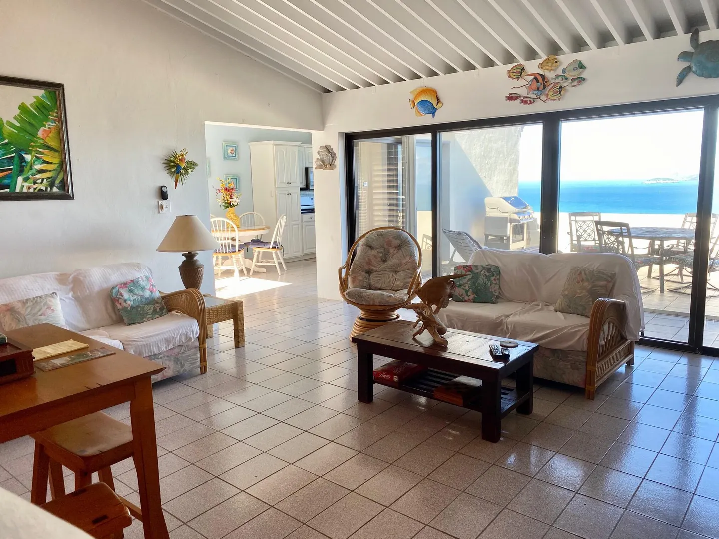 Enjoy outstanding views of Hans Lollik from this upper level 2 bedroom, 2 bath condo. Move in ready and sold fully furnished. Perfect for short or long term rentals or make it your home. Located in the gated community of Mahogany Run, you are just a short walk from the Sanderling Pool and a short drive to Magens Bay and town.