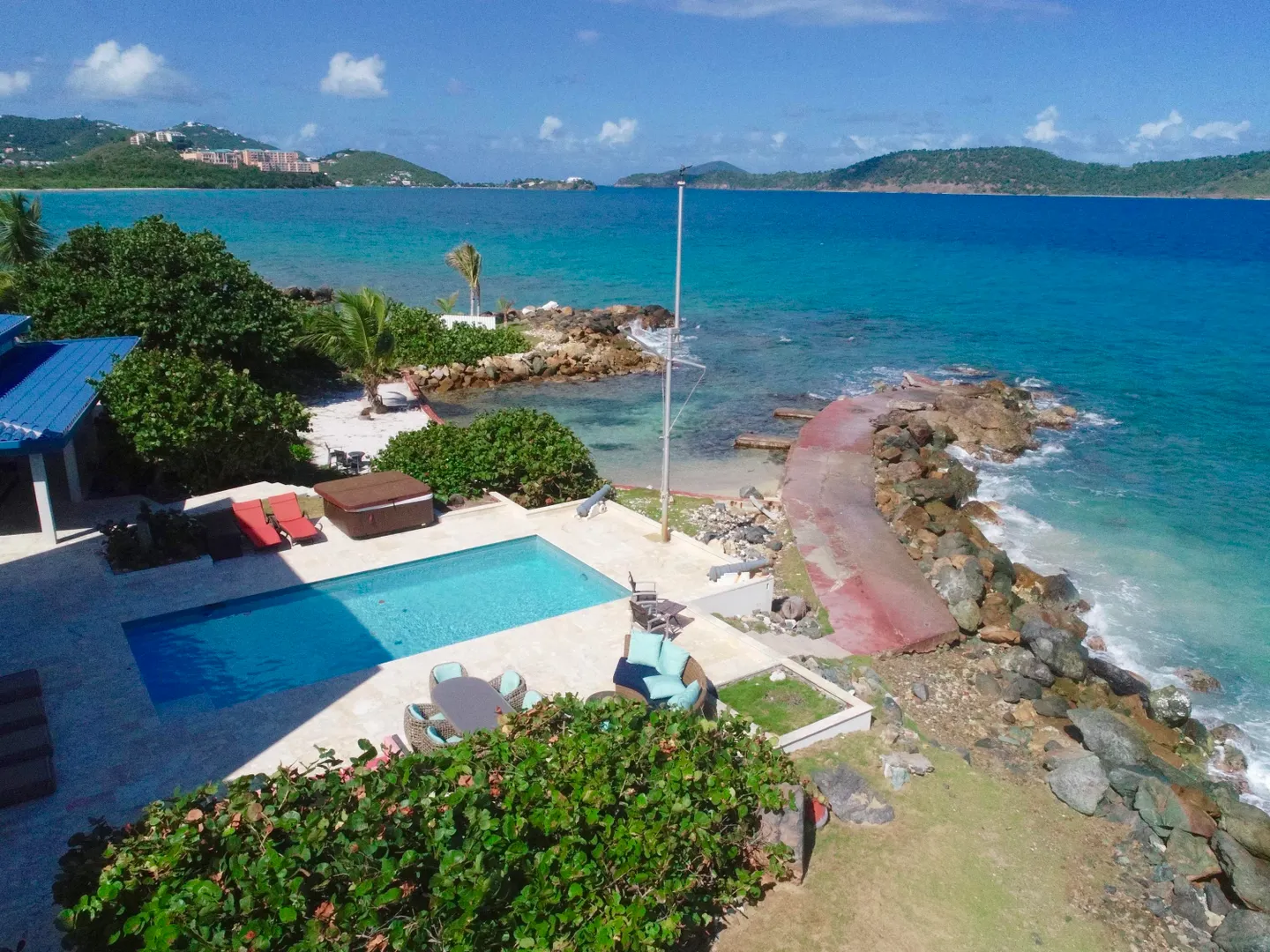 ONE OF ST THOMAS' MOST PRESTEGIOUS LOCATIONS ON THE EAST END! SECLUDED ON THE PRIVATE PELICAN POINT, THIS MAGNIFICENT CARIBBEAN WATERFRONT VILLA HAS EVERYTHING THAT SAYS ELEGANCE! DOWN ISLAND VIEWS TAKE YOUR BREATH AWAY AS THE BLUE WATER REFLECTS DIFFERENT HUES. NEWLY REMODELED FROM CEILINGS TO FLOORS IN 2016, PRIDE OF OWNERSHIP IS OBVIOUS. THE MAIN VILLA CONSIST OF THREE HUGE BEDROOMS WITH SPACIOUS ENSUITE BATHROOMS, WITH A GREAT ROOM THAT GOES ON FOREVER. VIEWS ARE EXTRAORDINARY FROM EVERY ROOM. WALK OUT TO THE POOL, HOTUB AND PRIVATE BEACH AND DOCK!! THIS IS TRULY A ONE OF A KIND GETAWAY! SITUATED ON OVER AN ACRE OF WATERFRONT PLEASURE, THE GUEST COTTAGE HAS TWO BEDROOMS AND THREE BATHROOMS!! THERE ARE 23KW OF SOLAR PANELS WITH NET METERING SUBSTANTIALLY REDUCING THE UTILITY COSTS!!