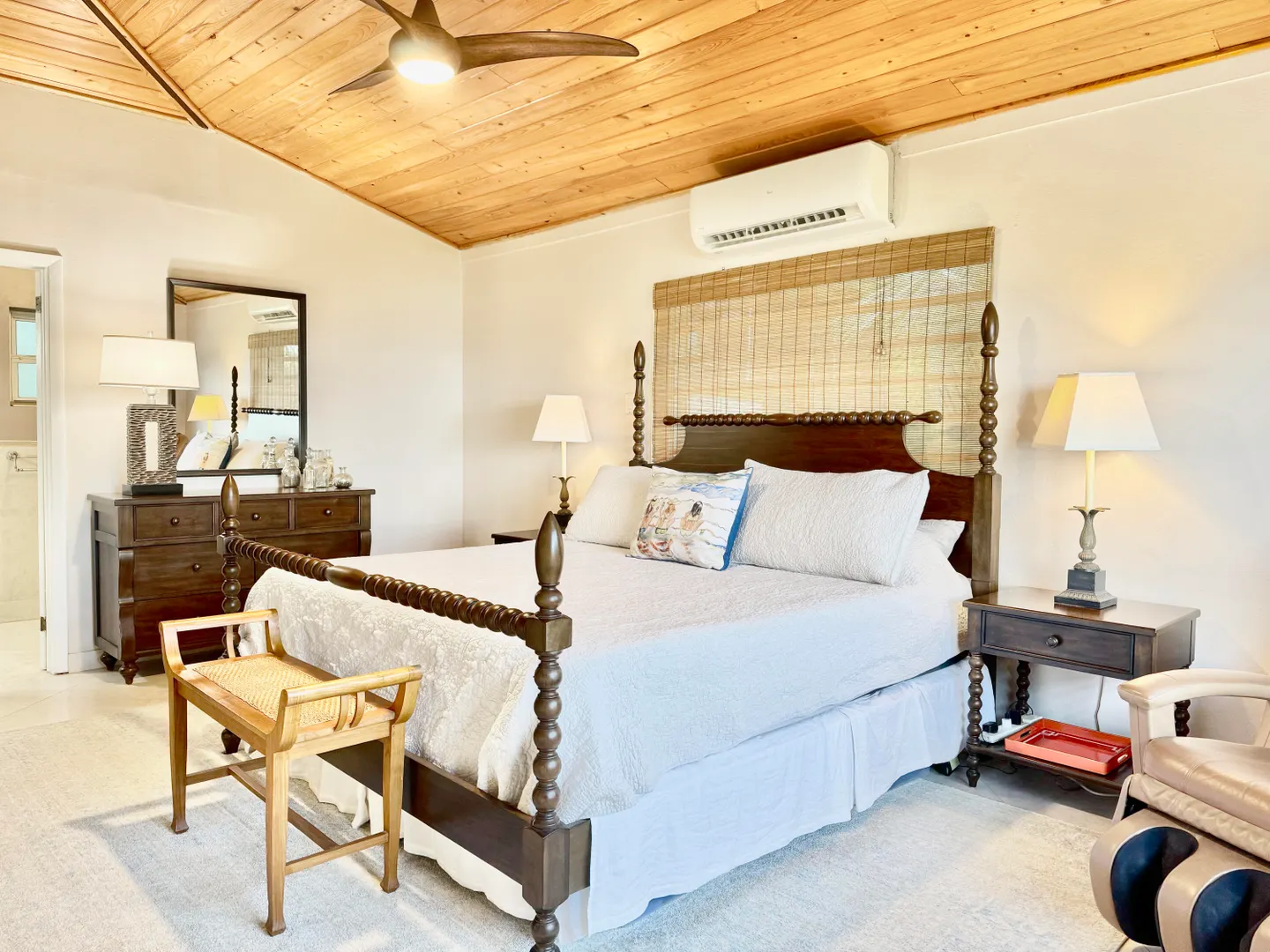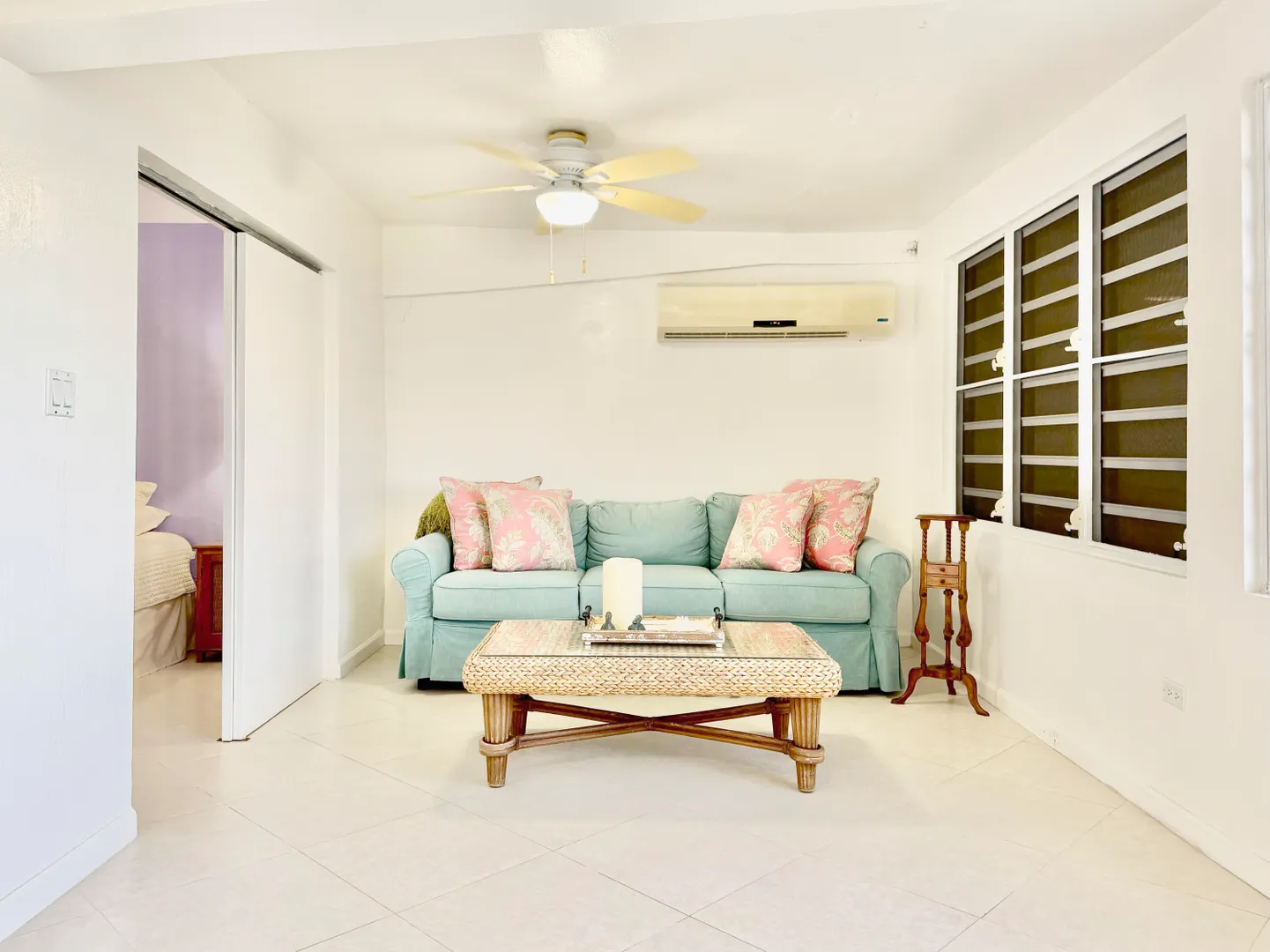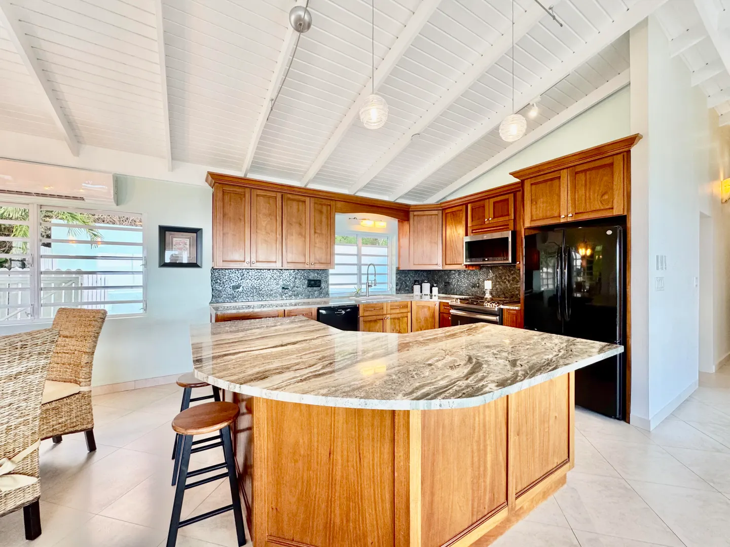 Nestled in a quiet North Side neighborhood, this 3-bed, 2-bath concrete home with a spacious 1-bed apartment offers privacy and comfort. Enjoy stunning sunsets from the covered porches and breathtaking views of inner and outer brass islands. Features include automatic roll down hurricane shutters, 15kw generator with automatic transfer switch, 5 split AC units, large kitchen with gas stove, solar water heater, and a paved driveway with gated parking for 4 cars. The fenced yard includes mature fruit trees, a large detached shed with electricity, and lush landscaping for privacy. The apartment has off-street parking and income history.