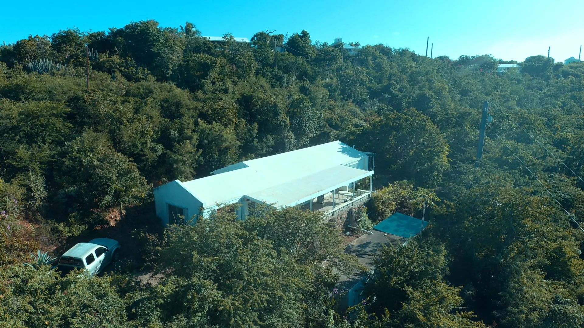 Cambridge House, Water Island. 2BR/2BA house (1594 interior sq ft) on .65 acres moderate slope lot. Screened in porch (170 sq ft) and covered porch (462 sq ft). Roof just Top Coated. 18,000 gal cistern. Overlooking Flamingo Bay. Private location.