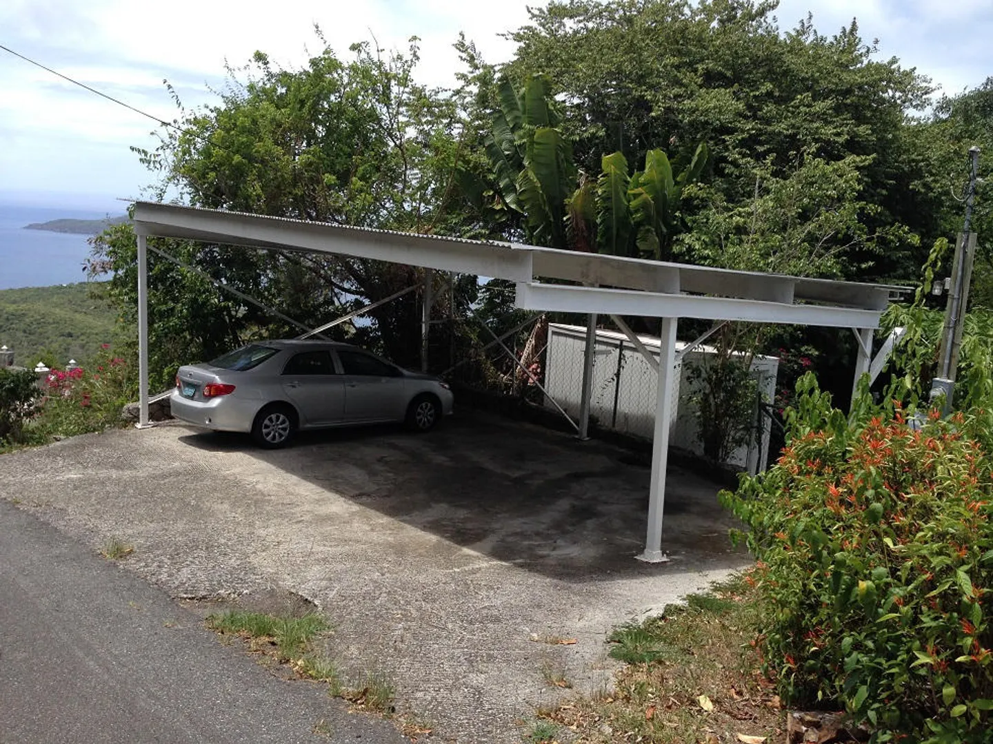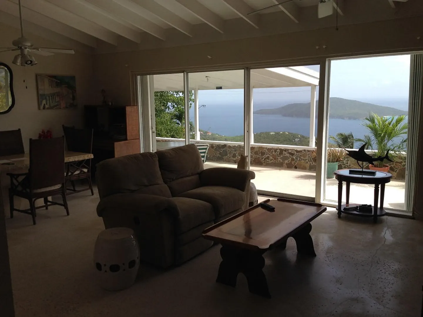 This cozy 2 bedroom, 2 bath home is spacious and welcoming. Sit on the partially covered deck and enjoy spectacular views of Hans Lollick and Down Island. A peaceful setting indeed. 3-car carport, auto generator, fruit trees and beautiful surroundings make this one story home perfect! A great price, too!