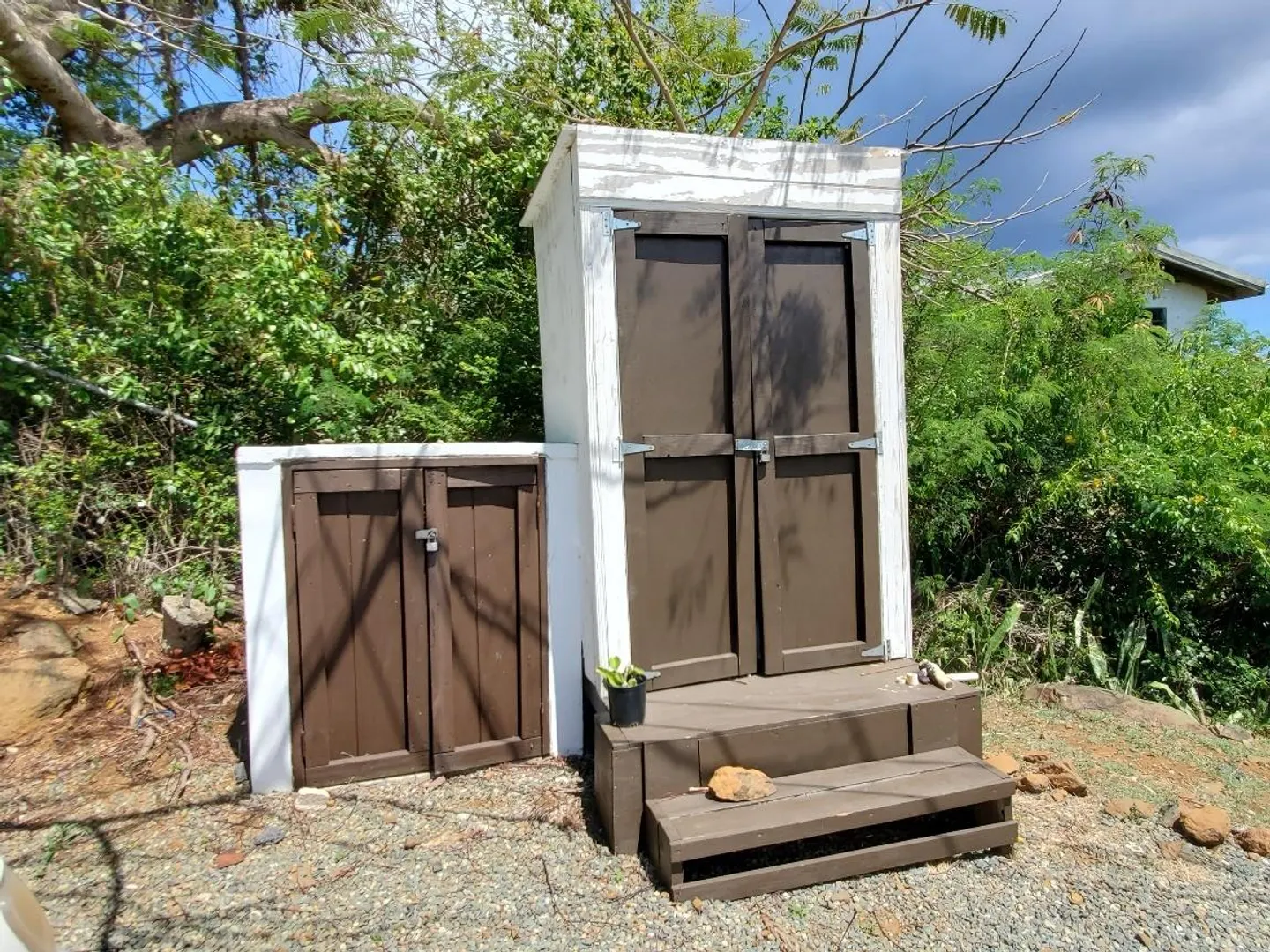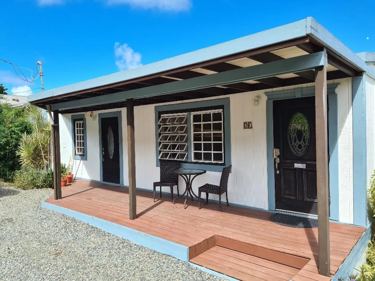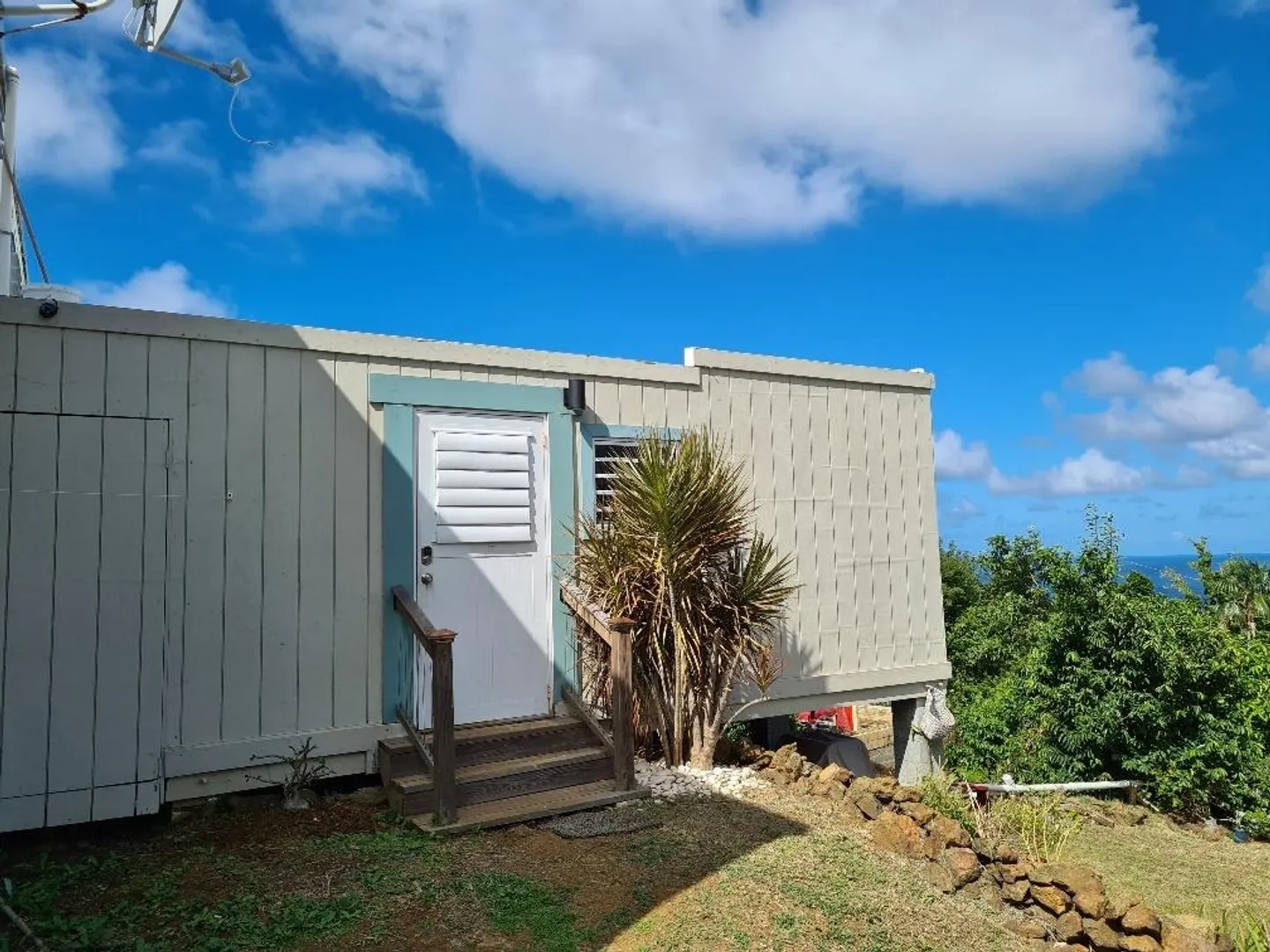 This property does NOT qualify for FHA or VA loans. Possibly conventional financing. Must be pre-qualified w/ letter. See survey attached showing encroachments. Owner will make efforts to cure encroachments upon an acceptable offer to purchase. First time on the market, this is a cute property with a great yard! Perched above Santa Maria Bay on the quiet West End of St. Thomas in Estate Hope, this home is currently set up as two 1 bedroom apartments up and a one bedroom apartment down. Upstairs could easily be converted back to a 2 bedroom 2 bath apartment and you'll still have a rental apartment down. Lovely views of the water. Just 15 minutes to town. 5 minutes to Brewers Bay Beach!Please check and verify all measurements independantlyRent RollApt #1 $600.00Apt #2 AirBNB $68/