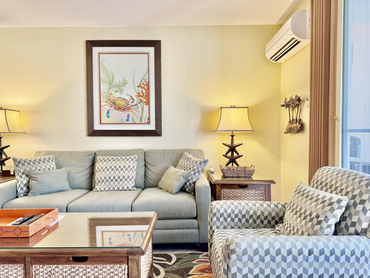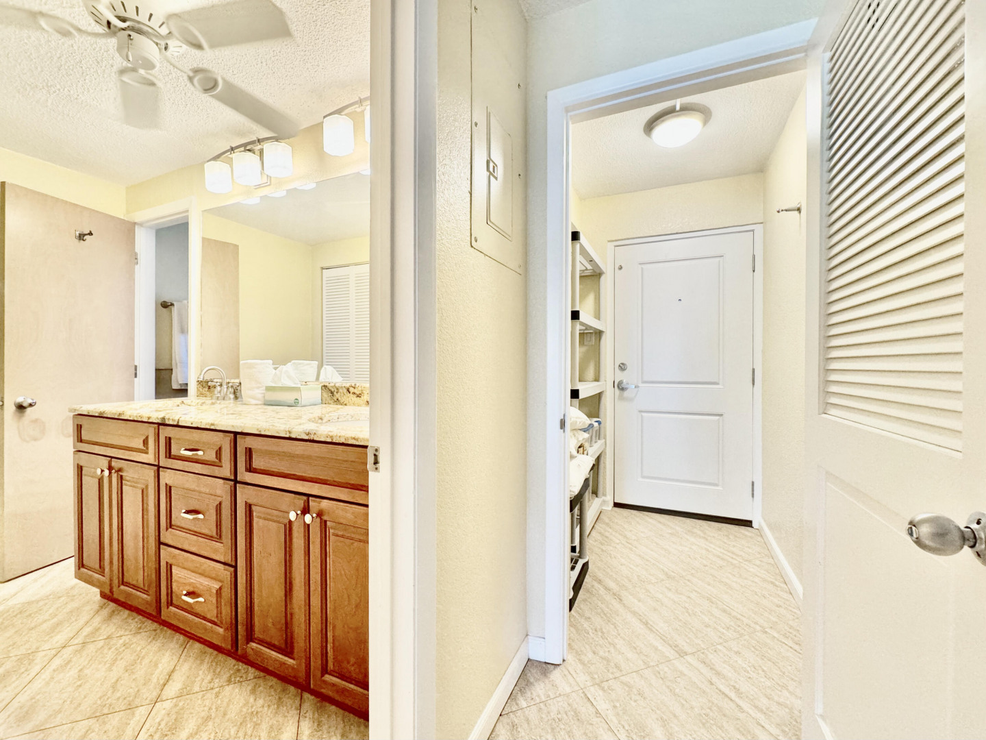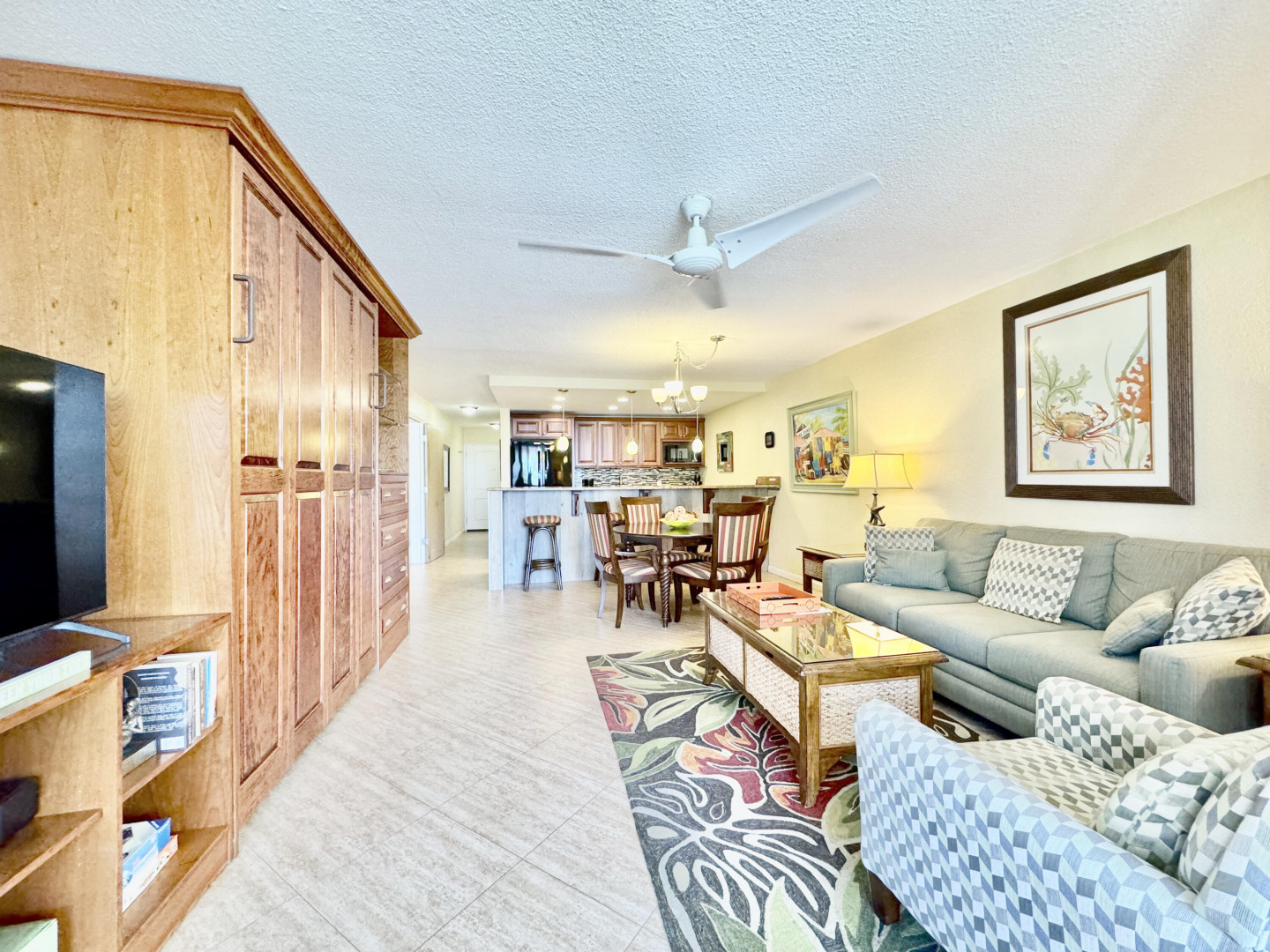 This one-bedroom, two-bathroom Elysian condo epitomizes island luxury. With a custom-built queen Murphy bed in the living room, the condo comfortably accommodates four, while breathtaking views grace every room. A lock-off door between the bedroom and living area, along with separate entrances, offer privacy and flexibility. Relax on the expansive patio for covered outdoor dining with ocean and garden views. Inside, an expanded galley kitchen awaits culinary adventures. Just 60 yards from the beach and a mere 14 steps from the pool, this condo is a haven for relaxation and recreation. Active on VRBO with stellar reviews, it's a sought-after retreat in a gated, pet-friendly community. With its own RO plant, backup generator, and concrete construction, this condo ensures uninterrupted bliss