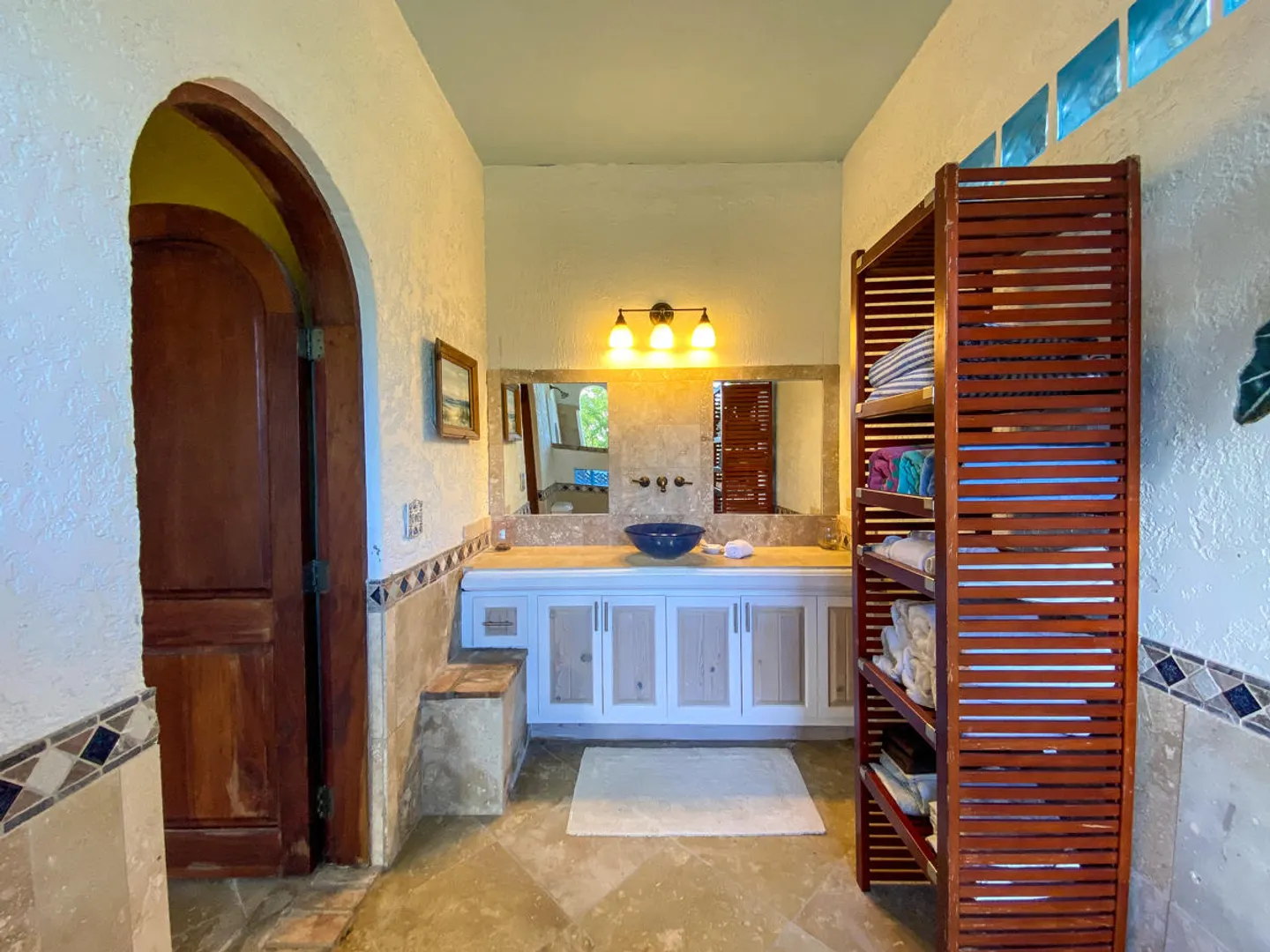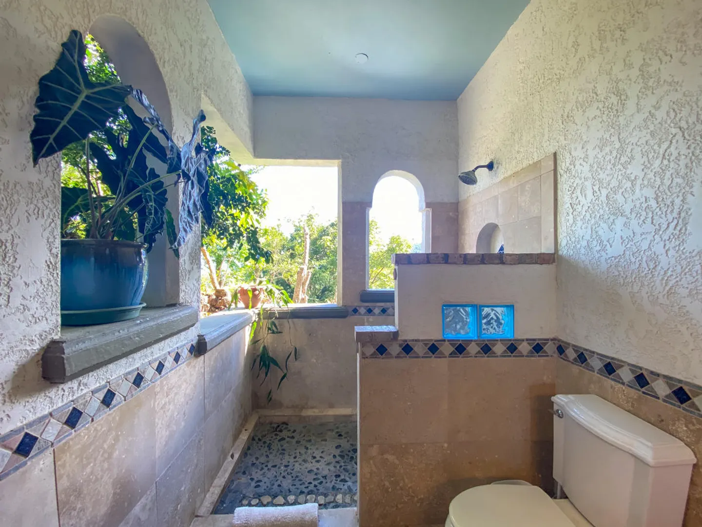 The Stone House is a dramatic 2 bedroom, 2 and half bath just a short walk from Neltjeberg Bay. This home features sweeping views of St. John and the British Virgin Islands. Hard wood teak flooring, folding glass doors, travertine tile and meticulous stone work are just a few of interior features. Sale includes plans for an additional 750 sq. ft. master suite and a one bedroom, one and a half bath caretaker cottage on the gradual remaining land. This custom built home is situated in the perfect spot to enjoy the tranquility island life has to offer.