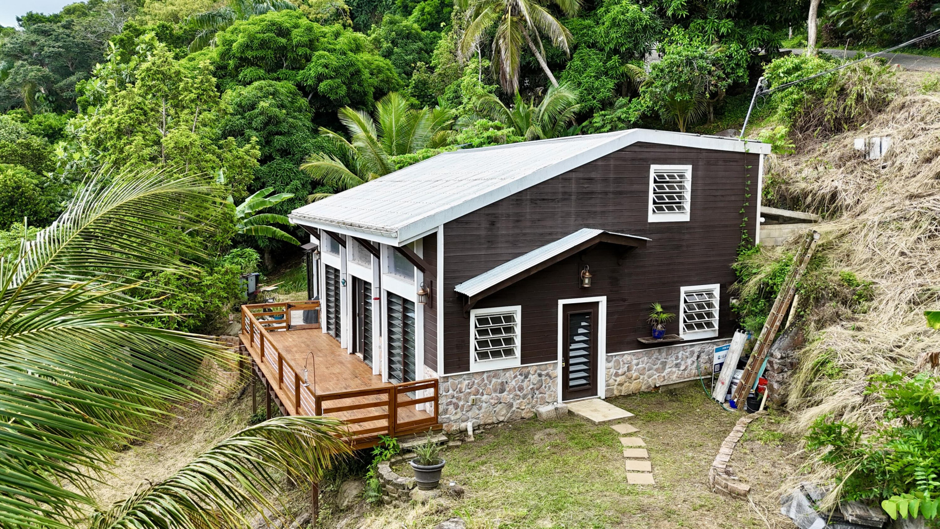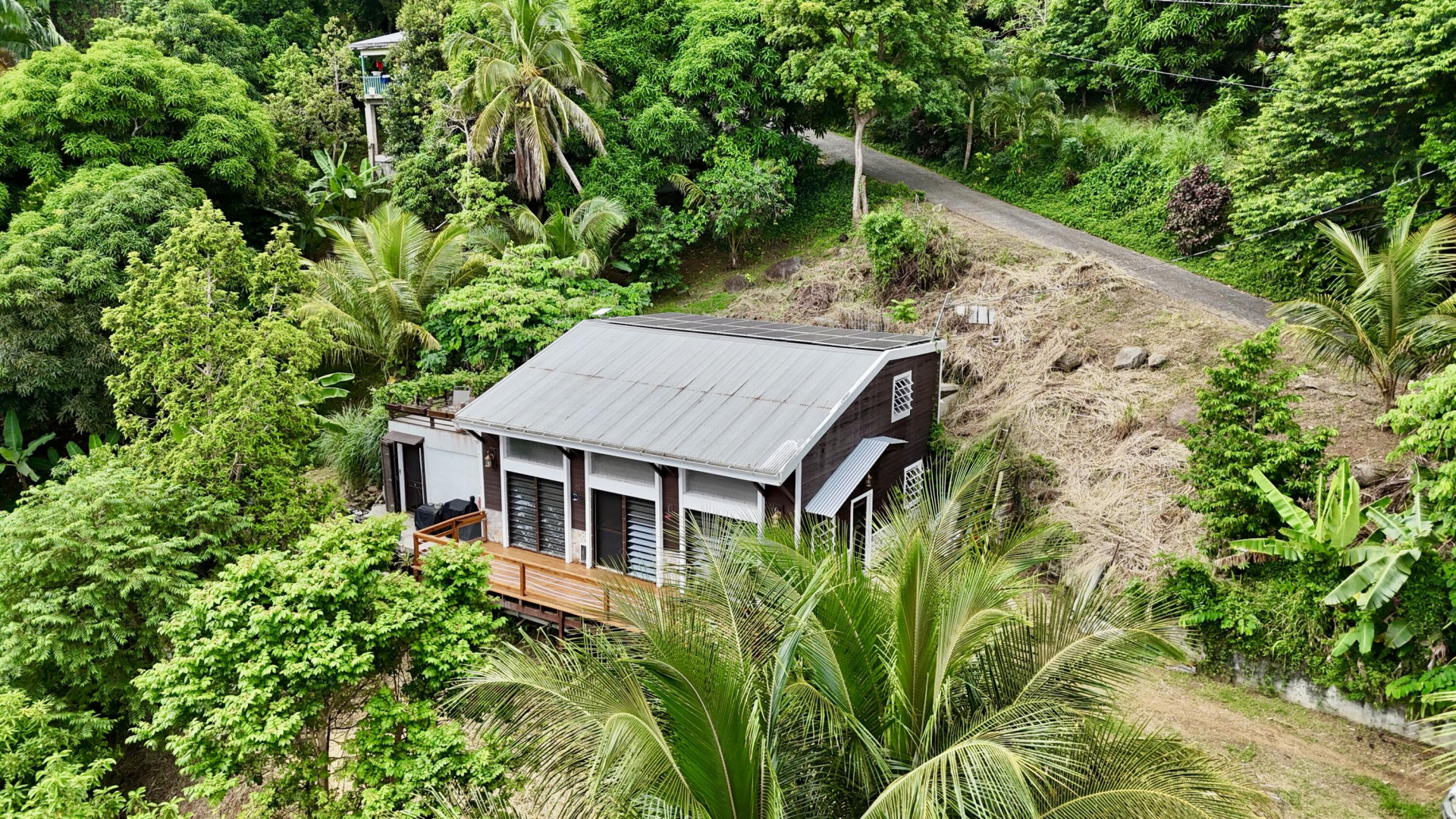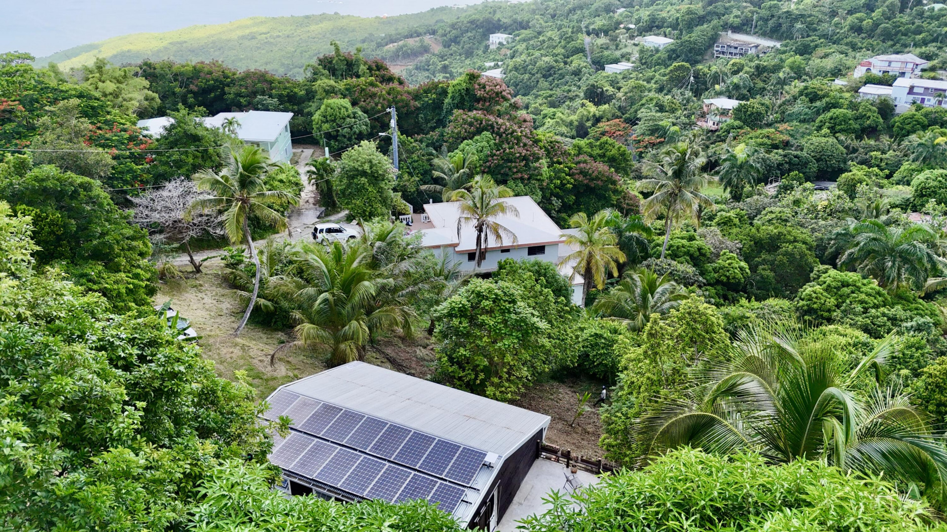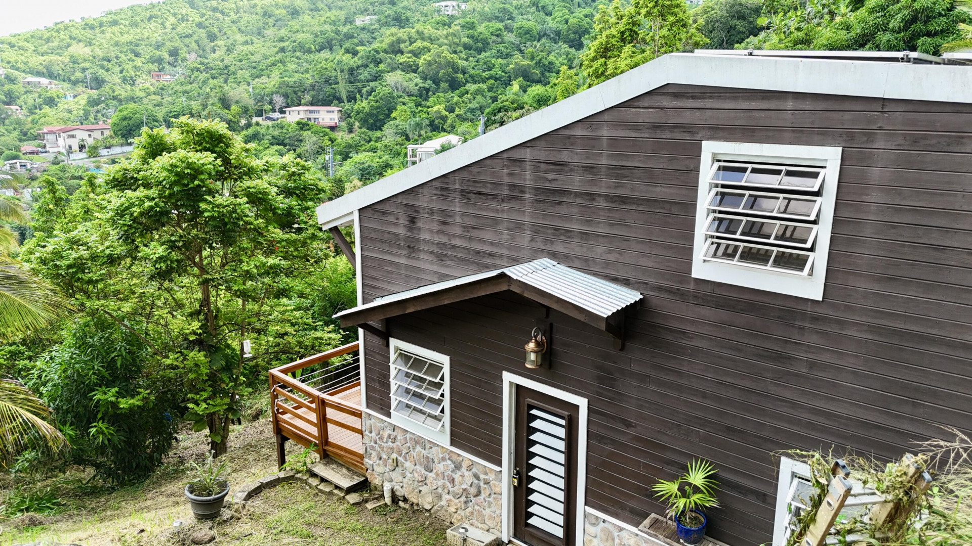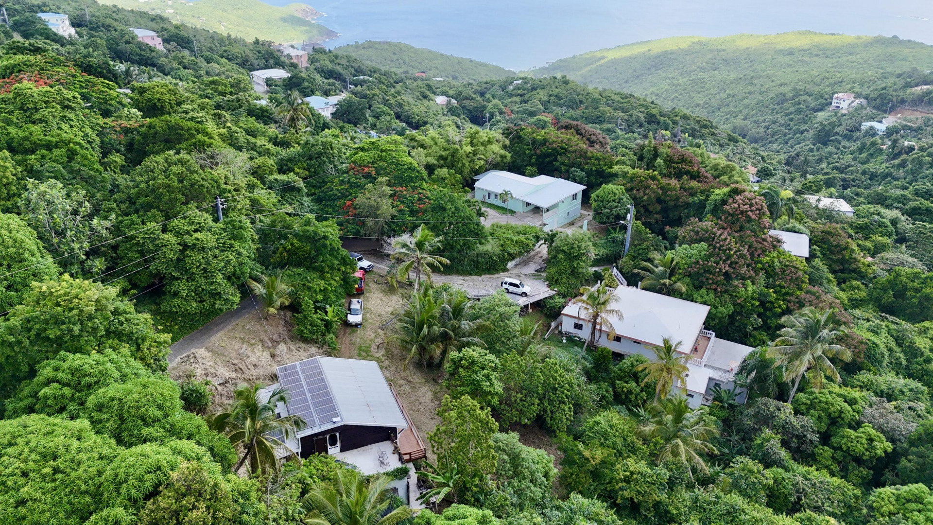 Nestled in the lush Northside hills, this two-bedroom, two-bathroom island bungalow offers the perfect blend of Caribbean living and sustainable comfort. Designed with a tasteful nautical theme, every detail evokes the serenity of the sea while capturing the breezy, relaxed lifestyle of St. Thomas. The home features an open-concept living area with coastal accents, abundant natural light, and cooling cross-breezes. Two spacious bedrooms and 2 bathrooms provide comfort and privacy, making it ideal for families, couples, or those seeking a tropical retreat. Equipped with solar panels, this property embraces eco-friendly island living while keeping utility costs low. Outdoor shower, plan/permits for pool, fruit trees galore in this nautical inspired bungalow!