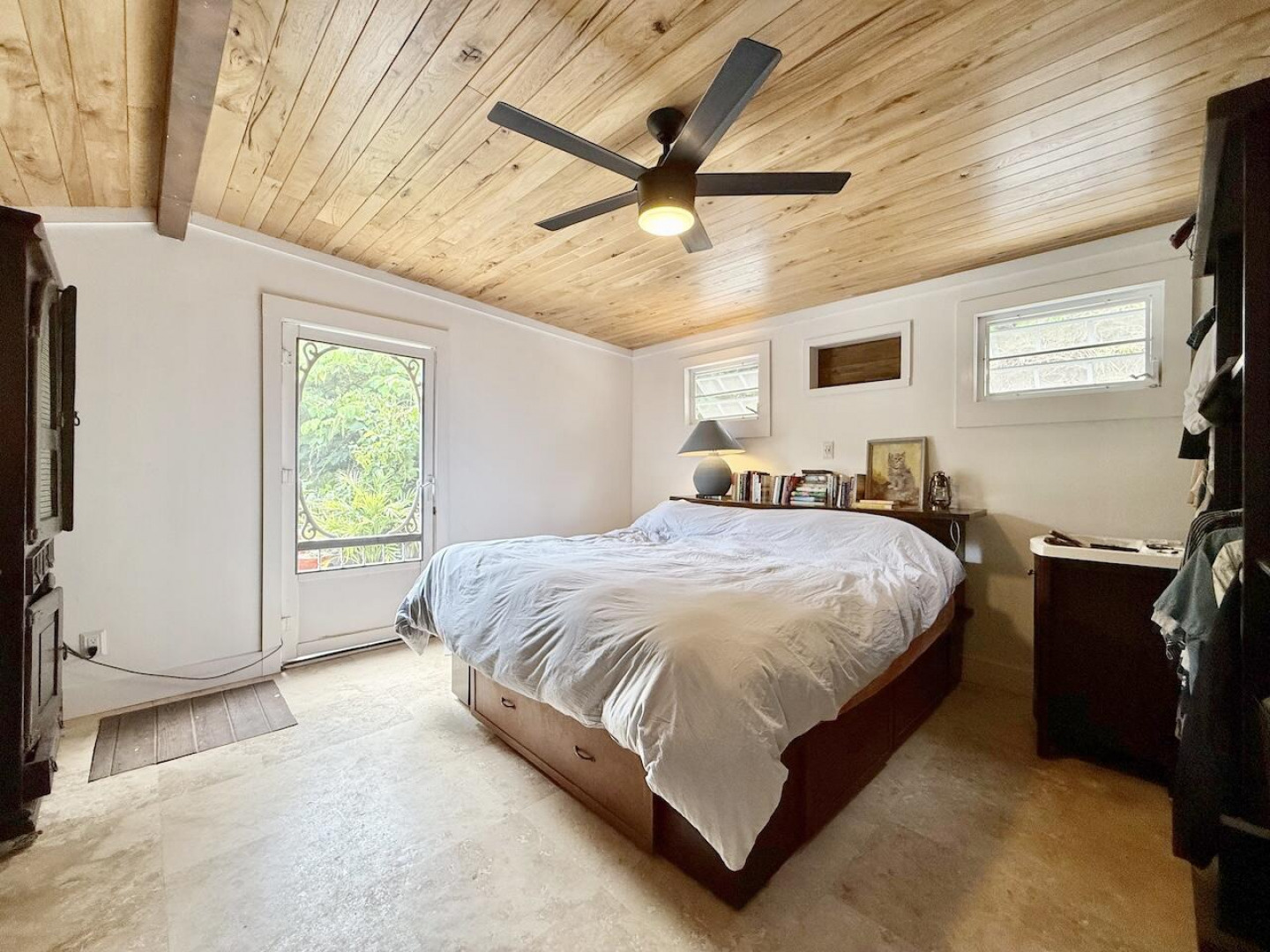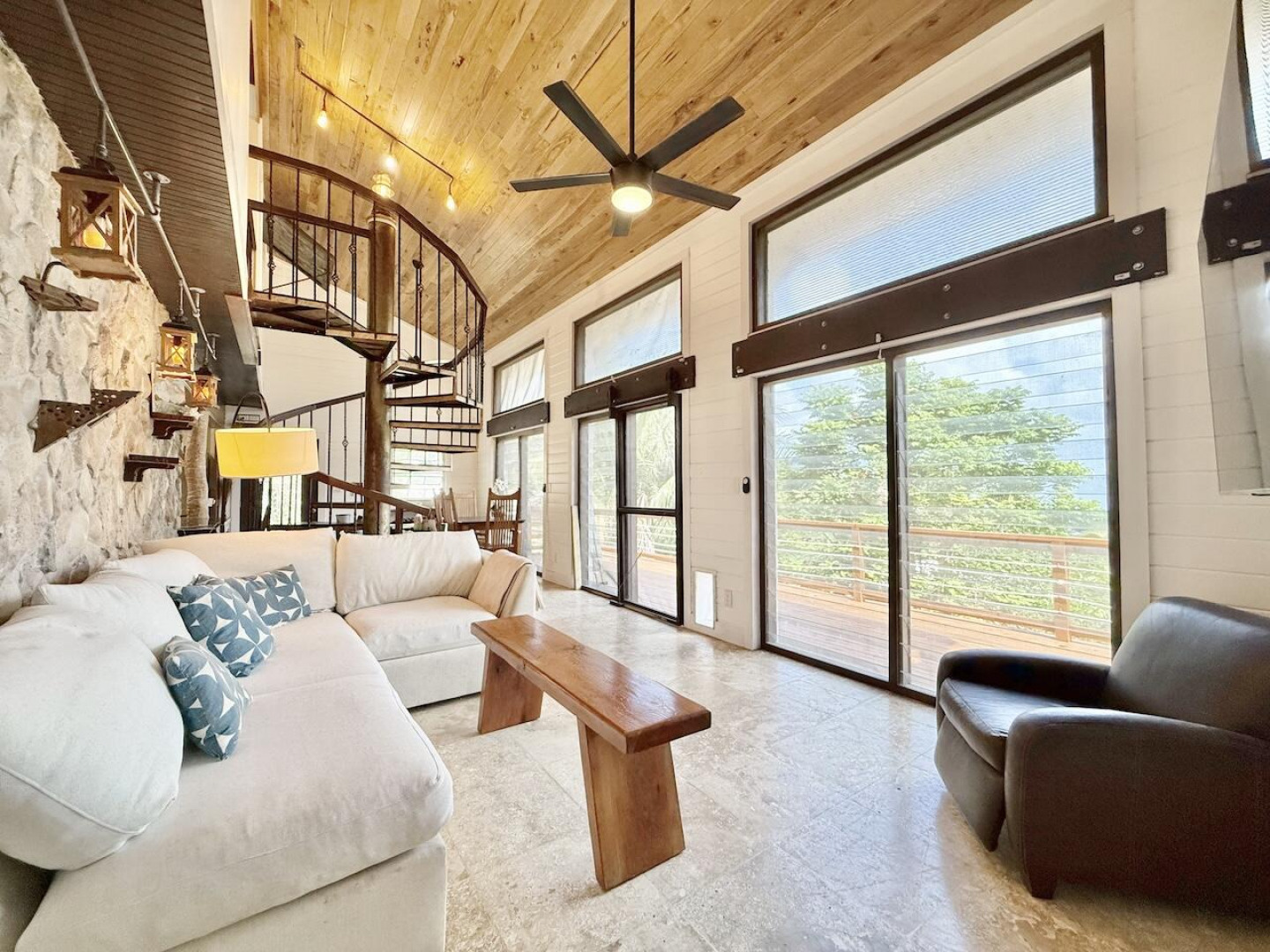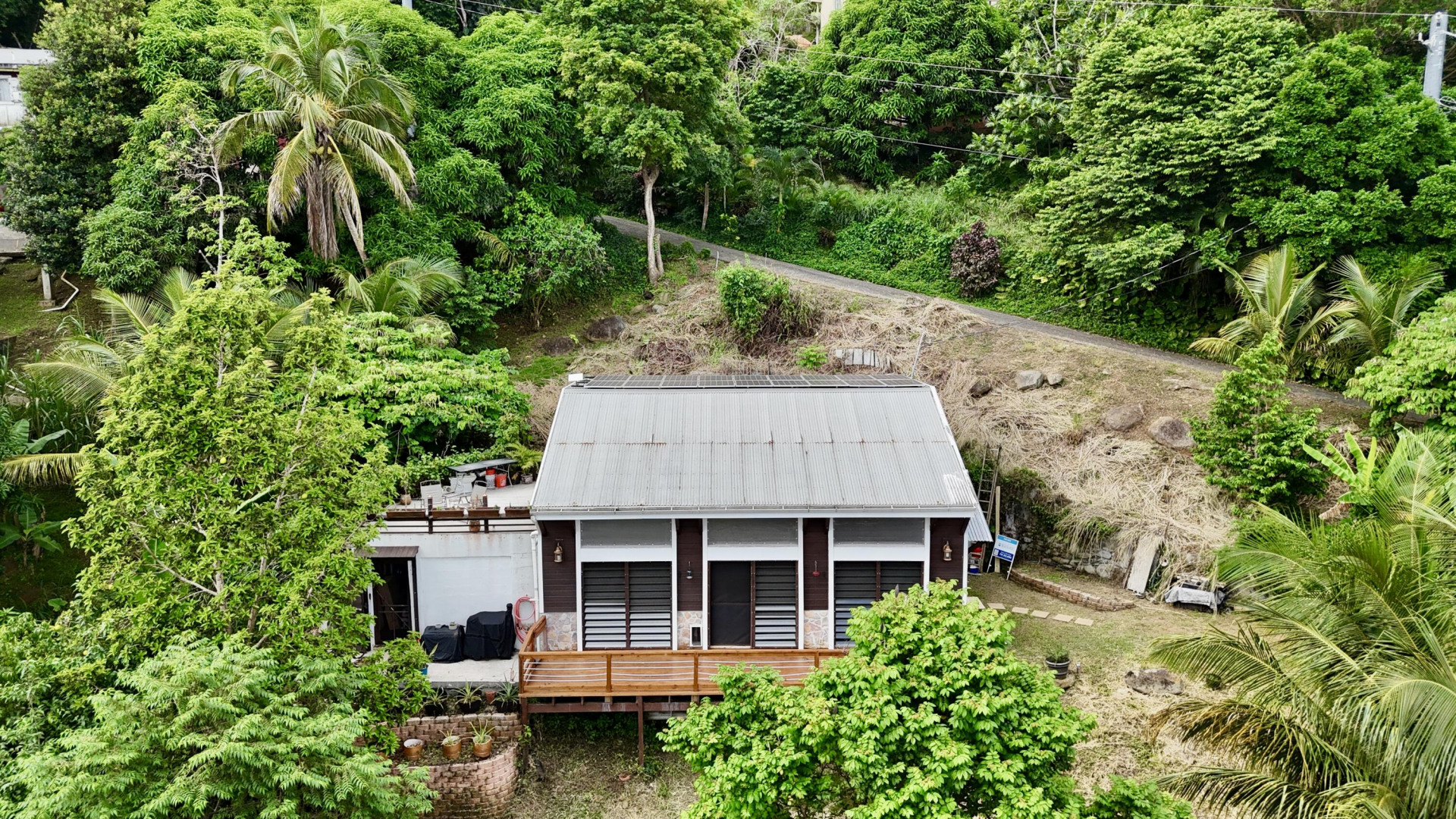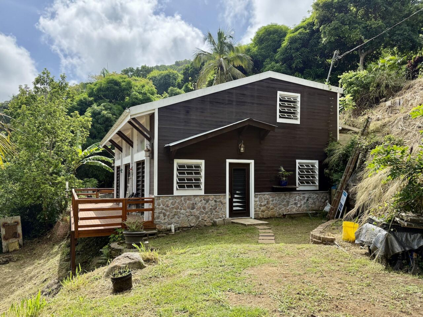 Nestled in the lush Northside hills, this two-bedroom, two-bathroom island bungalow offers the perfect blend of Caribbean living and sustainable comfort. Designed with a tasteful nautical theme, every detail evokes the serenity of the sea while capturing the breezy, relaxed lifestyle of St. Thomas. The home features an open-concept living area with coastal accents, abundant natural light, and cooling cross-breezes. Two spacious bedrooms and 2 bathrooms provide comfort and privacy, making it ideal for families, couples, or those seeking a tropical retreat. Equipped with solar panels, this property embraces eco-friendly island living while keeping utility costs low. Outdoor shower, plan/permits for pool, fruit trees galore in this nautical inspired bungalow!