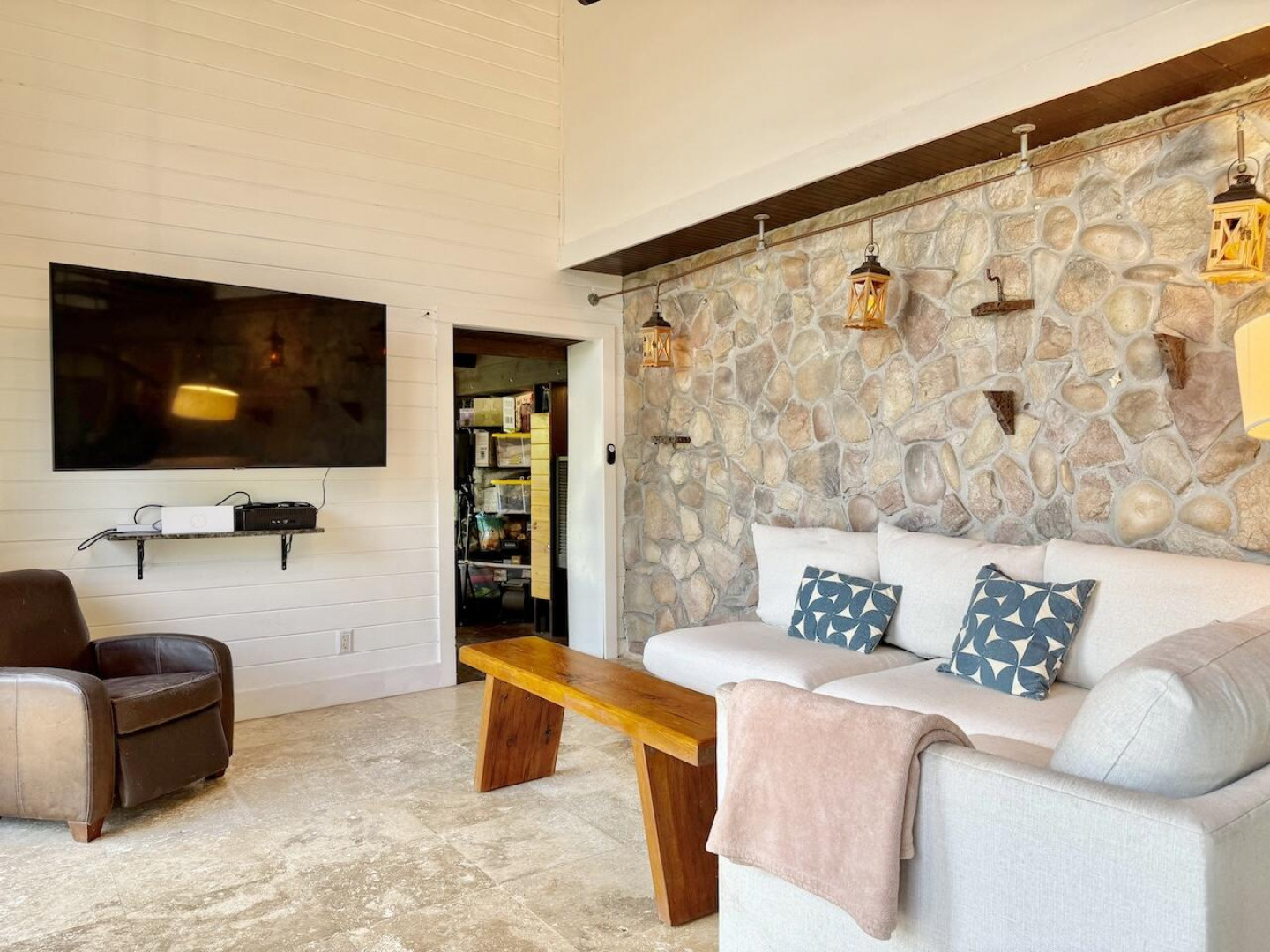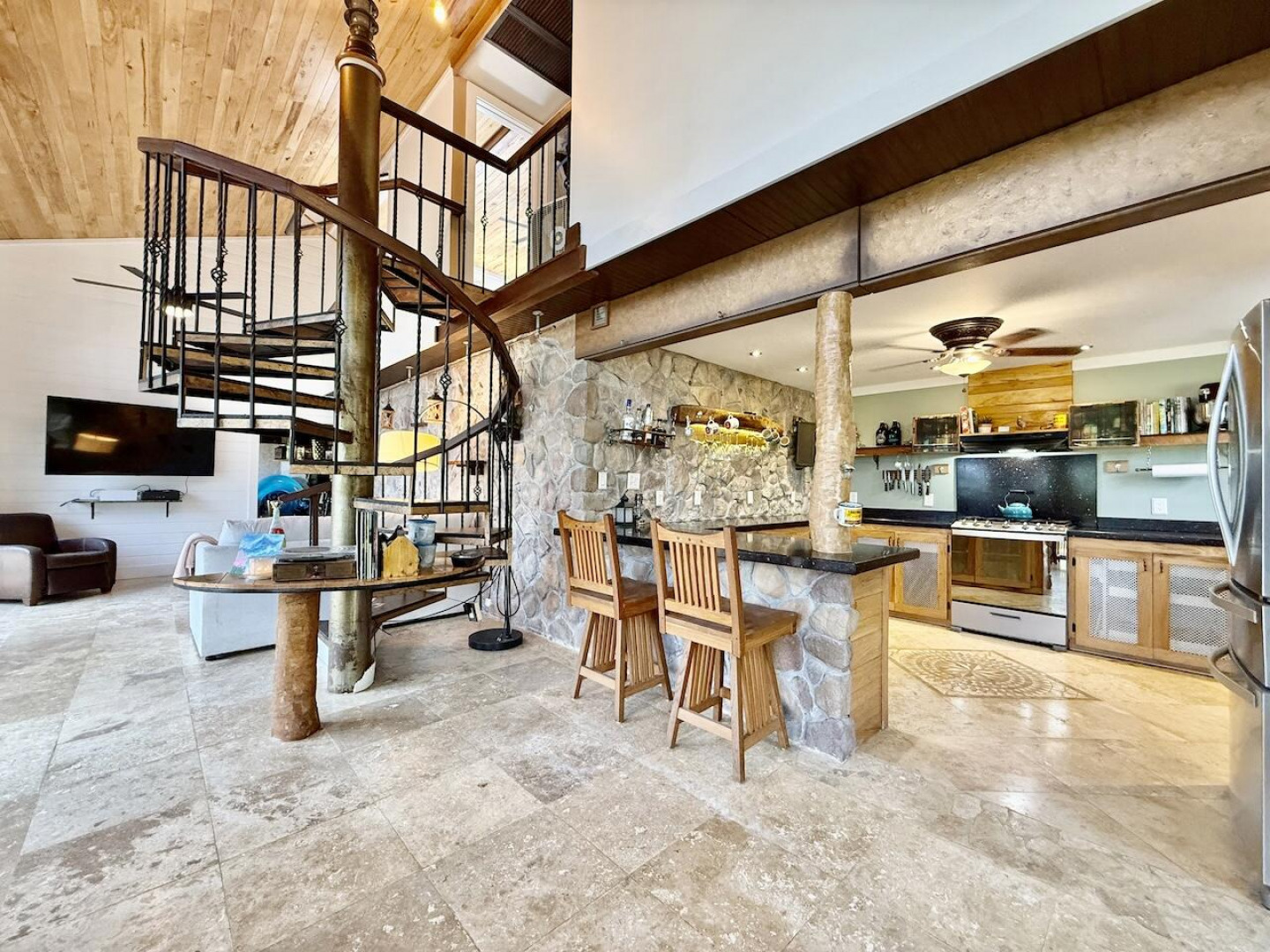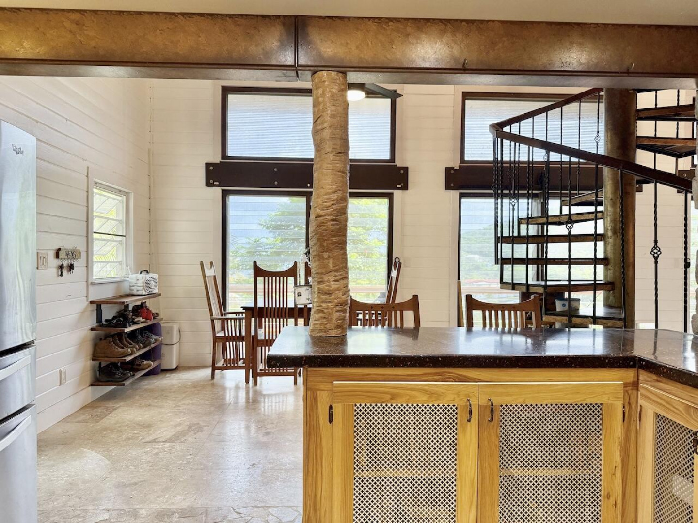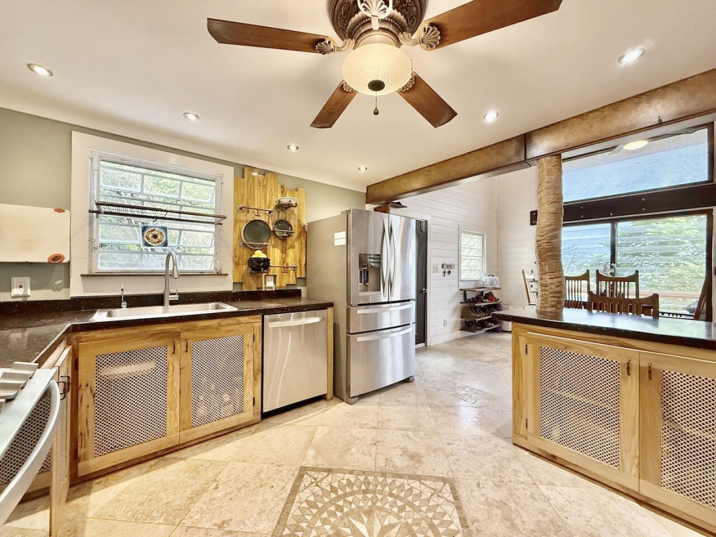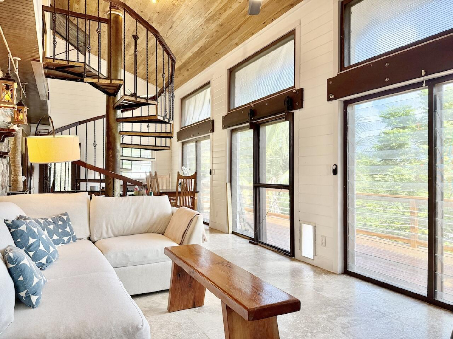 Nestled in the lush Northside hills, this two-bedroom, two-bathroom island bungalow offers the perfect blend of Caribbean living and sustainable comfort. Designed with a tasteful nautical theme, every detail evokes the serenity of the sea while capturing the breezy, relaxed lifestyle of St. Thomas. The home features an open-concept living area with coastal accents, abundant natural light, and cooling cross-breezes. Two spacious bedrooms and 2 bathrooms provide comfort and privacy, making it ideal for families, couples, or those seeking a tropical retreat. Equipped with solar panels, this property embraces eco-friendly island living while keeping utility costs low. Outdoor shower, plan/permits for pool, fruit trees galore in this nautical inspired bungalow!