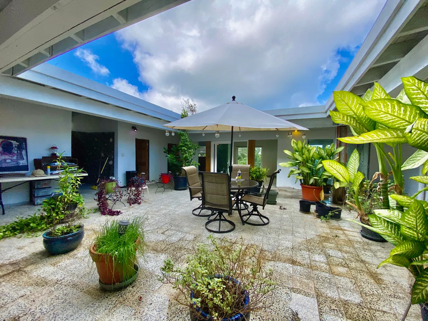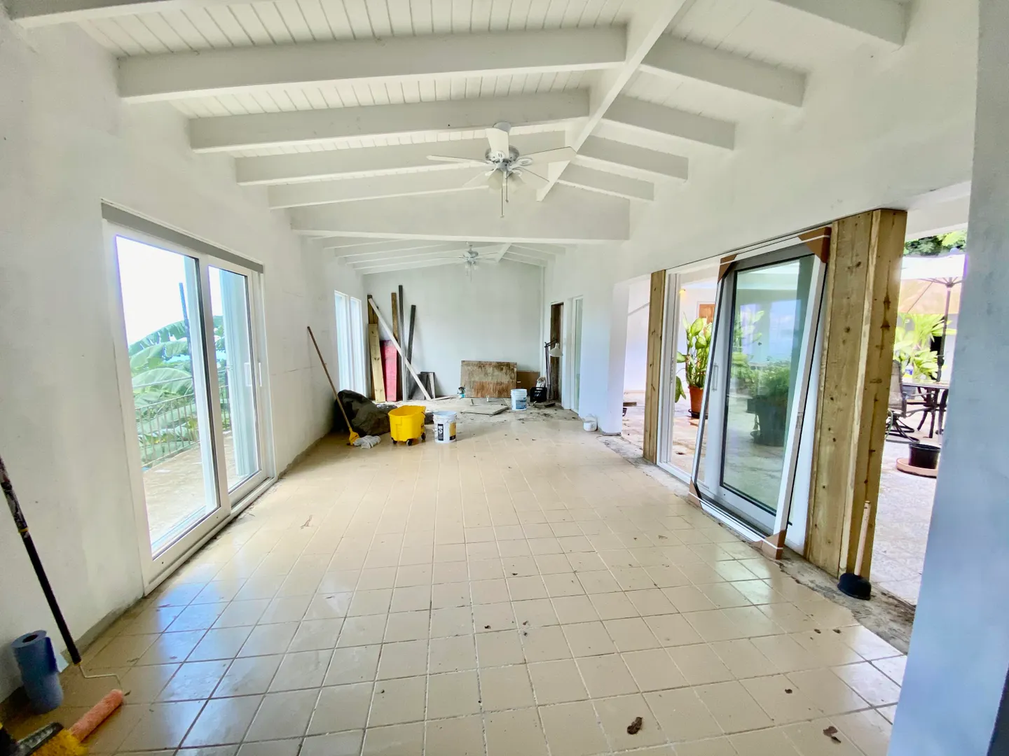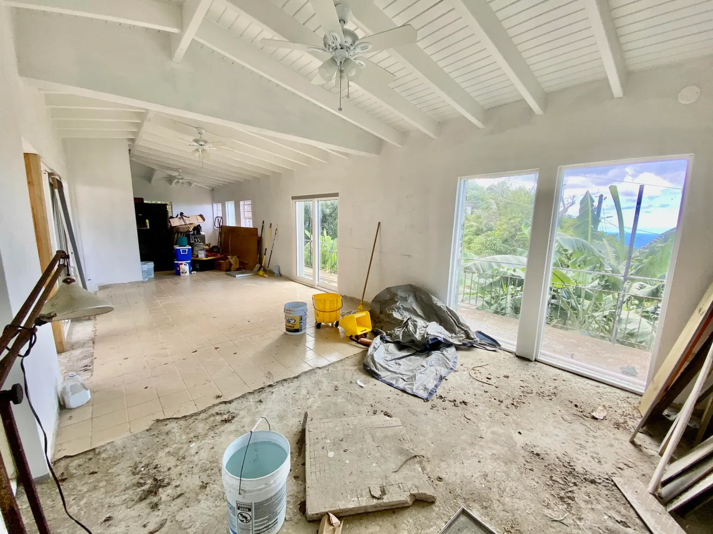 Make an offer on this very uniquely designed 3BR /2 BA Caribbean House with a 1BR/1BA apartment that allows enjoyment of the beautiful ocean views and has an open court yard in the center of the house to allow the beauty of being outside right in your own home. The renovations in this house are almost complete. 1 bathroom and bedroom and some minor construction work remaining. Hurricane shutters have been added. The House is being sold As-Is. There are also numerous fruit trees on the property. Showings Start January 10th