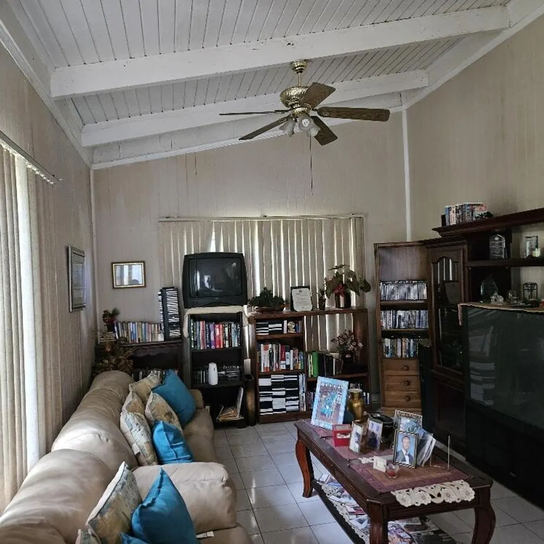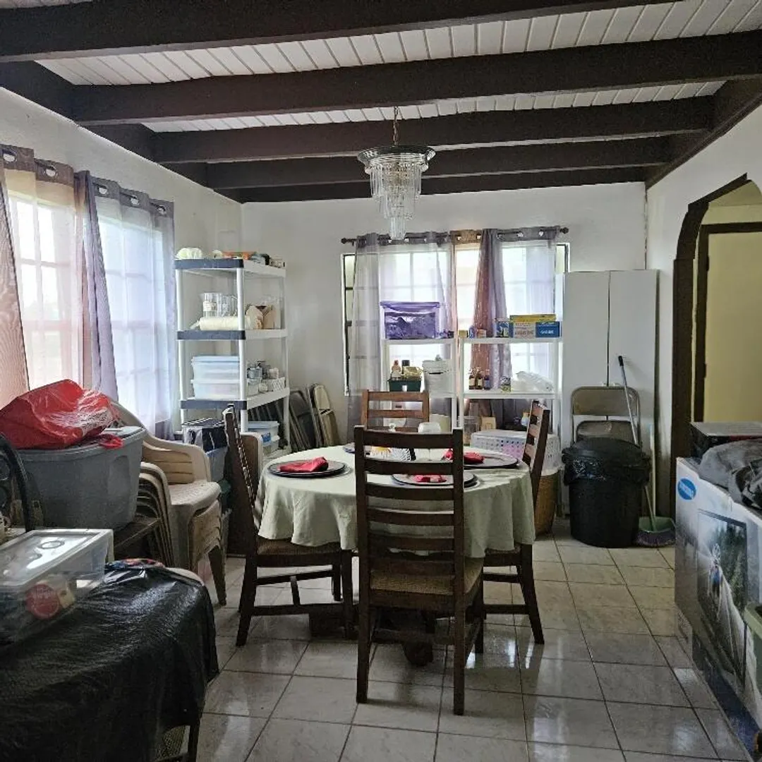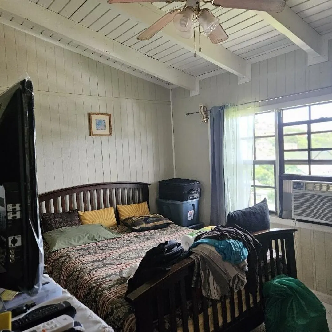 First time on the market! Great home in Anna's Retreat on L Street off route 42, the Mandahl Road. L street is a one way street winding down gently off the main road and loops back up to route 42 again. This is a nicely kept neighborhood of cared for homes. This is a home with 3 bedrooms, 2 baths on 3 levels affording everyone lots of room and privacy with a living room and a family room. Nicely kept little yard, hurricane shutters on windows and great cross ventilation. Convenient to east end, shopping mid-island, town and just 10 minutes to Magen's Bay.Seller does not recall the size of the cistern.