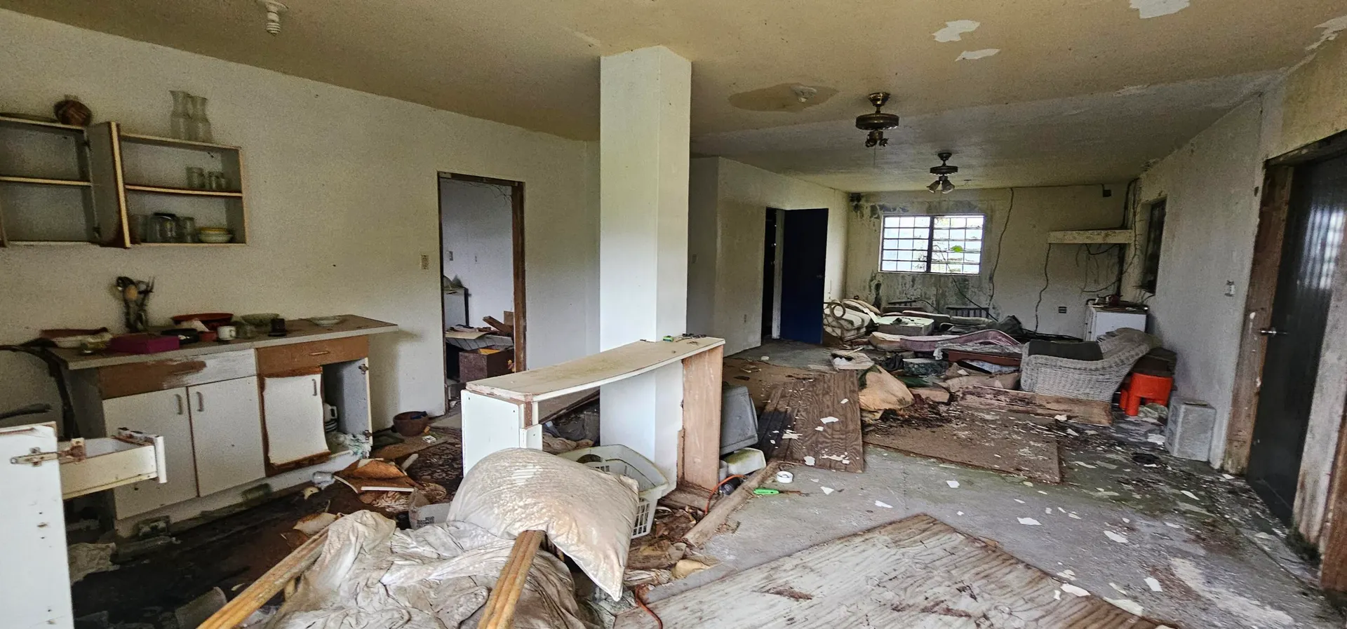 A True Diamond in the rough,Contractors Special For Sale. This Masonry Building with Concrete roof, that was built as a bunker has a 3BR/2BA main house + 2 - 2Br/1Ba apartments for a total of 3 units. This end lot property at the crest of the hill is surrounded by a phenomenal 270 degree ocean view on the great Mountain Top. The concrete roof may afford the new owner the opportunity to building an additional top floor on the structure. The building was left abandoned by the tenant after Hurricane Irma and was left with all furniture personal items inside and exposed to the elements. The building will need to be cleaned out. There is also a garage on the property and a flat driveway that can hold a number of cars or containers.