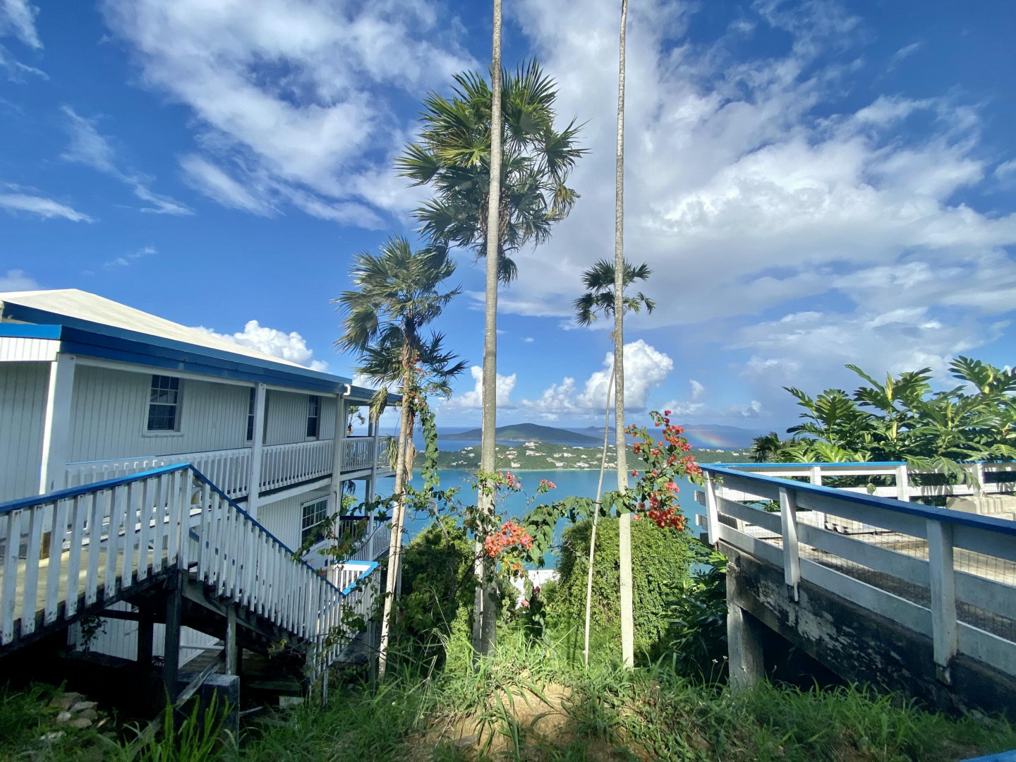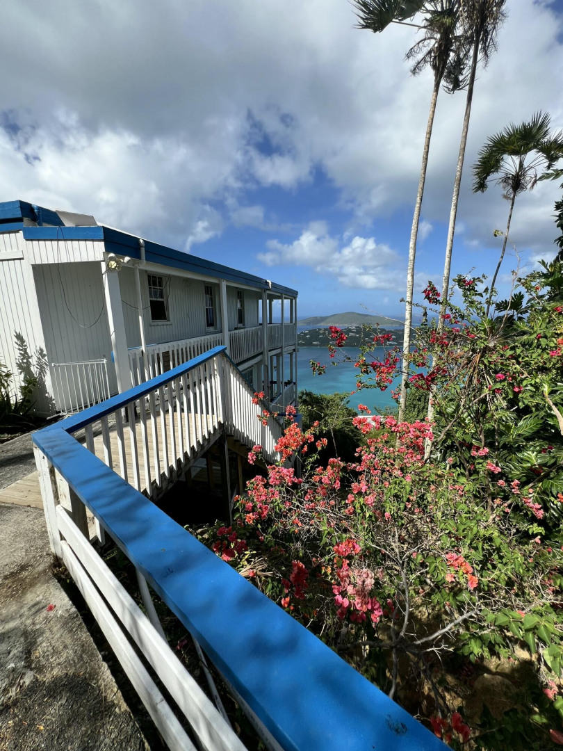 Income Producing 4 units within a well built fully permitted free-standing pair of homes overlooking Magens Bay. Idealic location on a quiet half acre, end of raod location with multiple types of fruit trees on property. With up to $6,000 monthly rental frees from long term tenants, you could keep as is, live in one and let the rent roles cover your mortagae or convert ot a cute airbnb rental.note- Onsite laundry Building is coin opperaed and brings in extra income for the owner.-Generator is onsite in progress of being hooked up for back up power to all 4 units