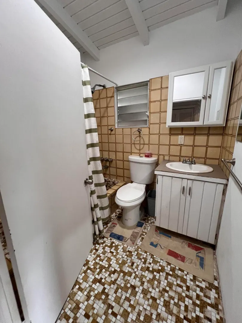 2-bedroom 2-bathroom house with bonus room + laundry room on the West End! 2 bedroom 2-bathroom apartment below. This property boasts a flat yard and 4 car parking, wrap around porches, and a peek-a boo view of the west end. House being sold AS IS.