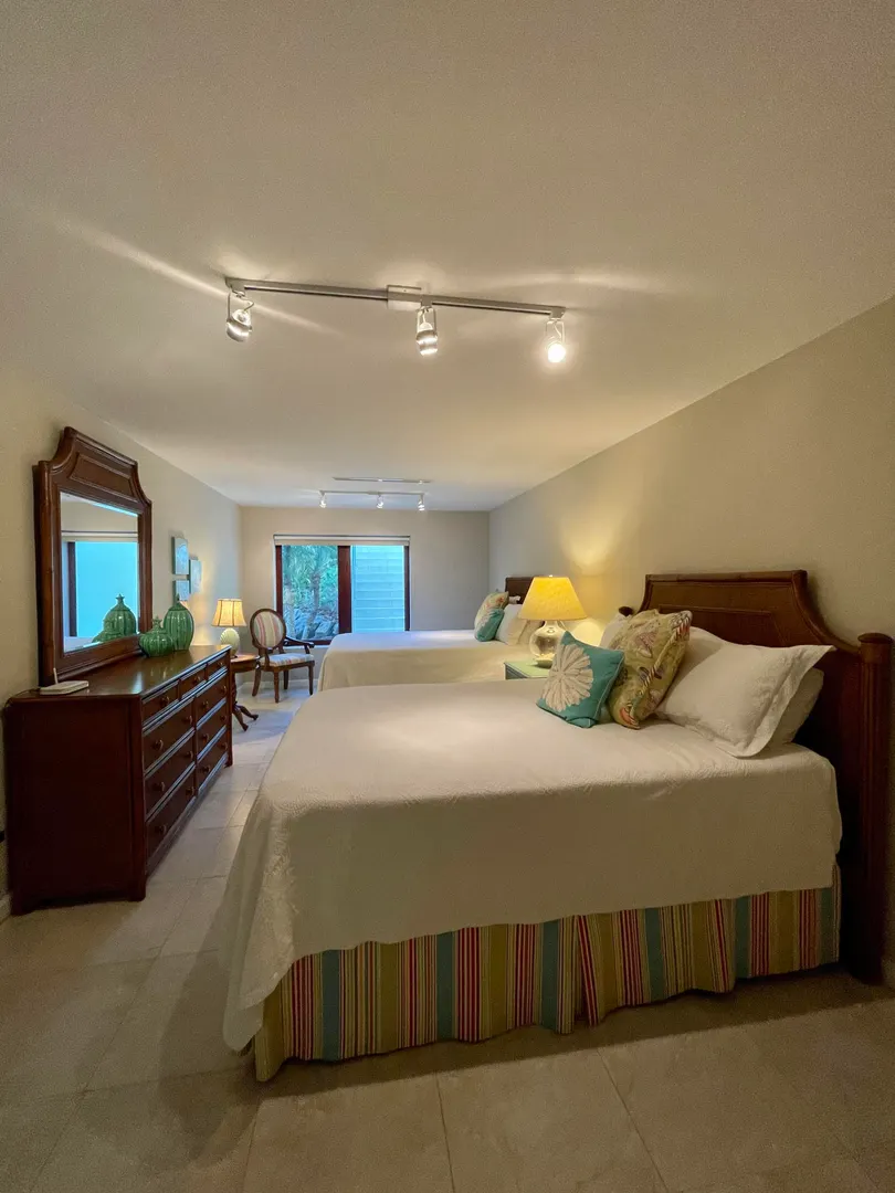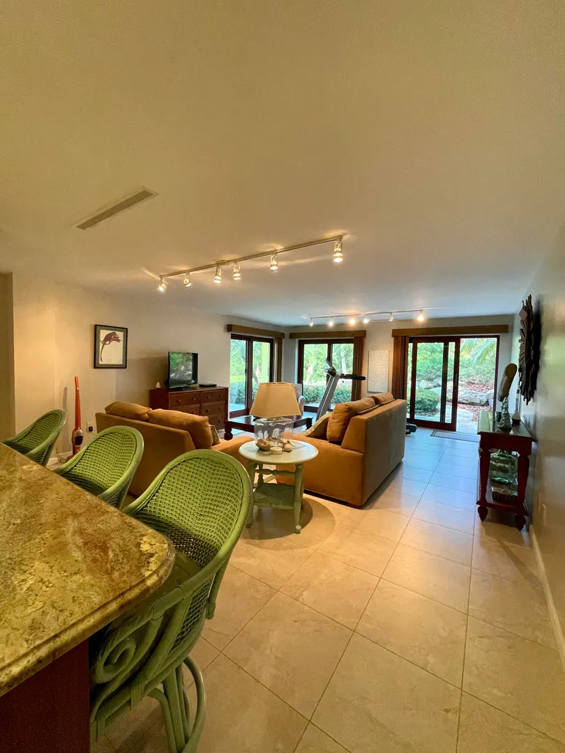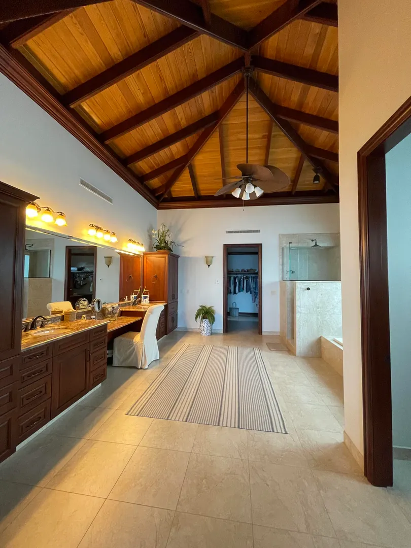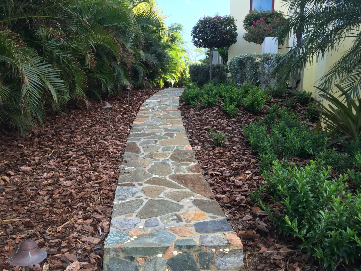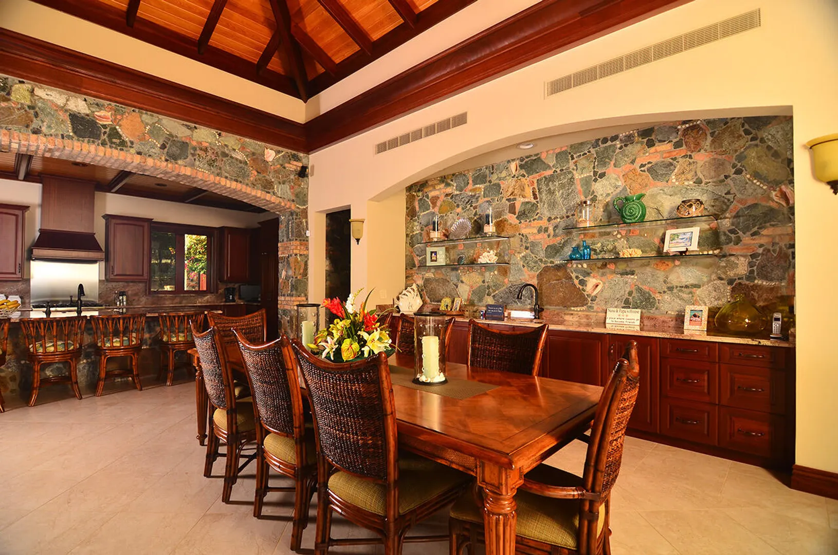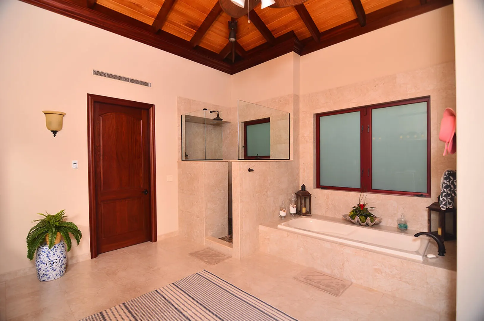 Artfully designed to blend indoor and outdoor living, ISLAND TIME, captures exquisite seascapes and gentle trade winds from a premier waterfront location inside renowned Waterpoint Estates. Coveted location near the end of the peninsula, facing St. John, bordered by gentle Pilsbury Sound, assures murmuring waves creating soothing water music to stir the soul. Upon arrival at this luxury retreat, the hand-built stone facade with covered entry, captures a visitor with a sense of exquisite West Indian style, quiet charm and welcome. The open single level floor plan maximizes natural light and ventilation. The Texas sized interior boasts the biggest Great Room on the peninsula, with 20 foot vaulted ceilings and folding glass walls along the front. Room sized covered galleries grace the