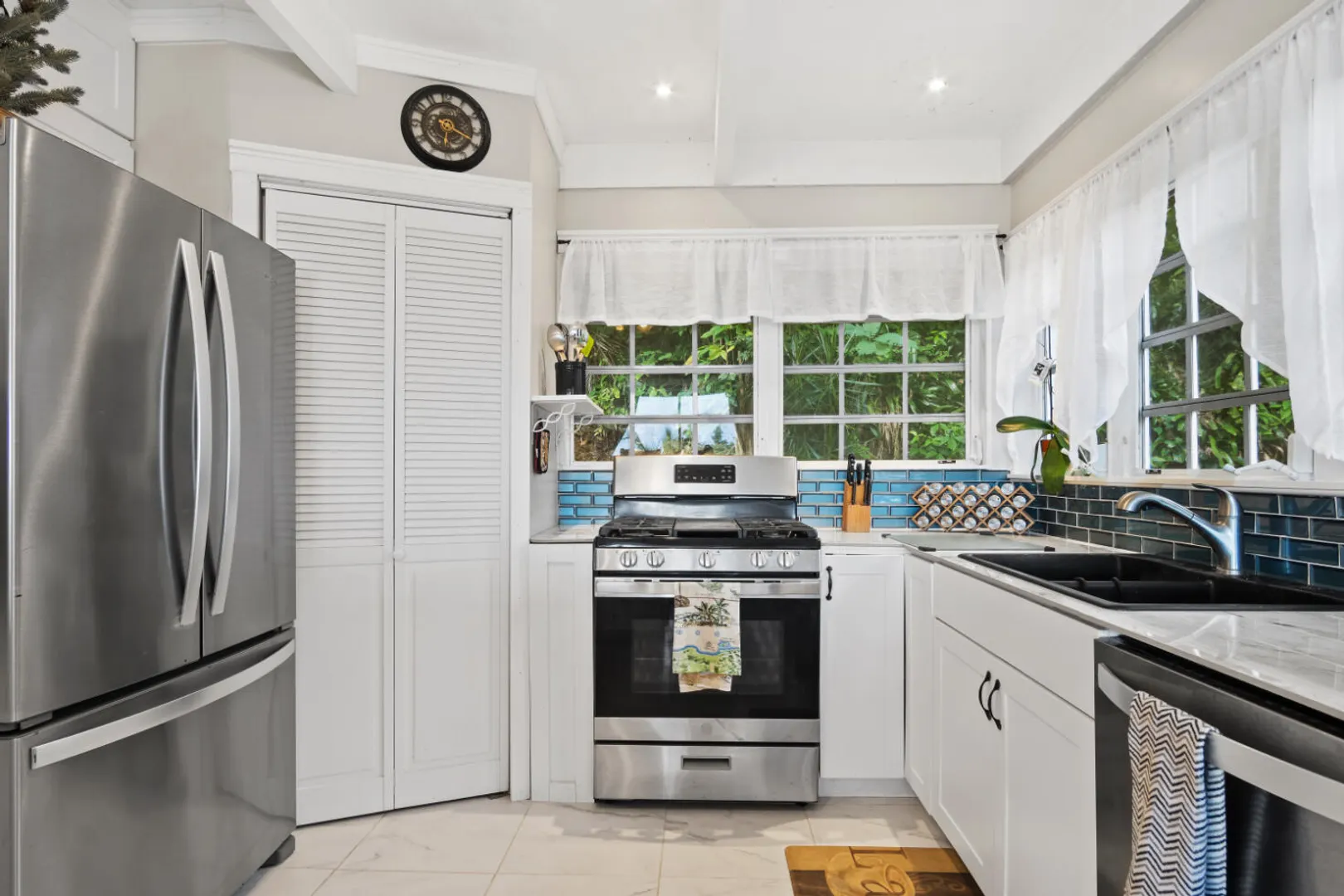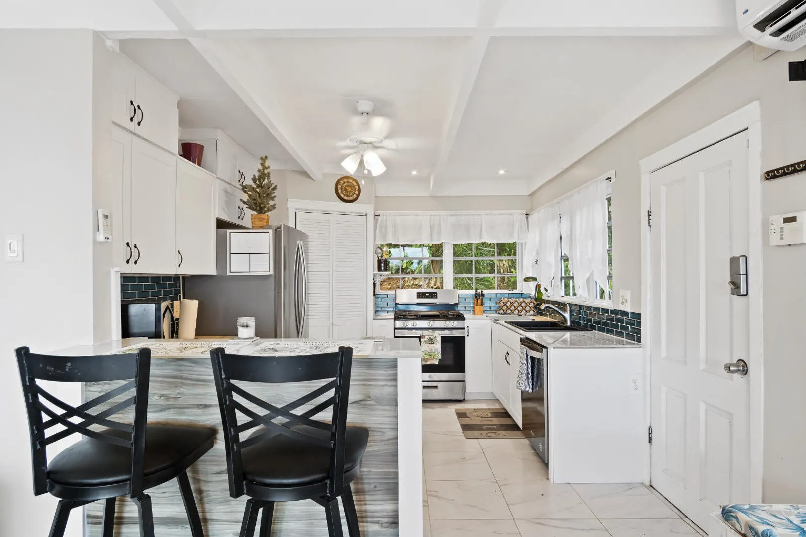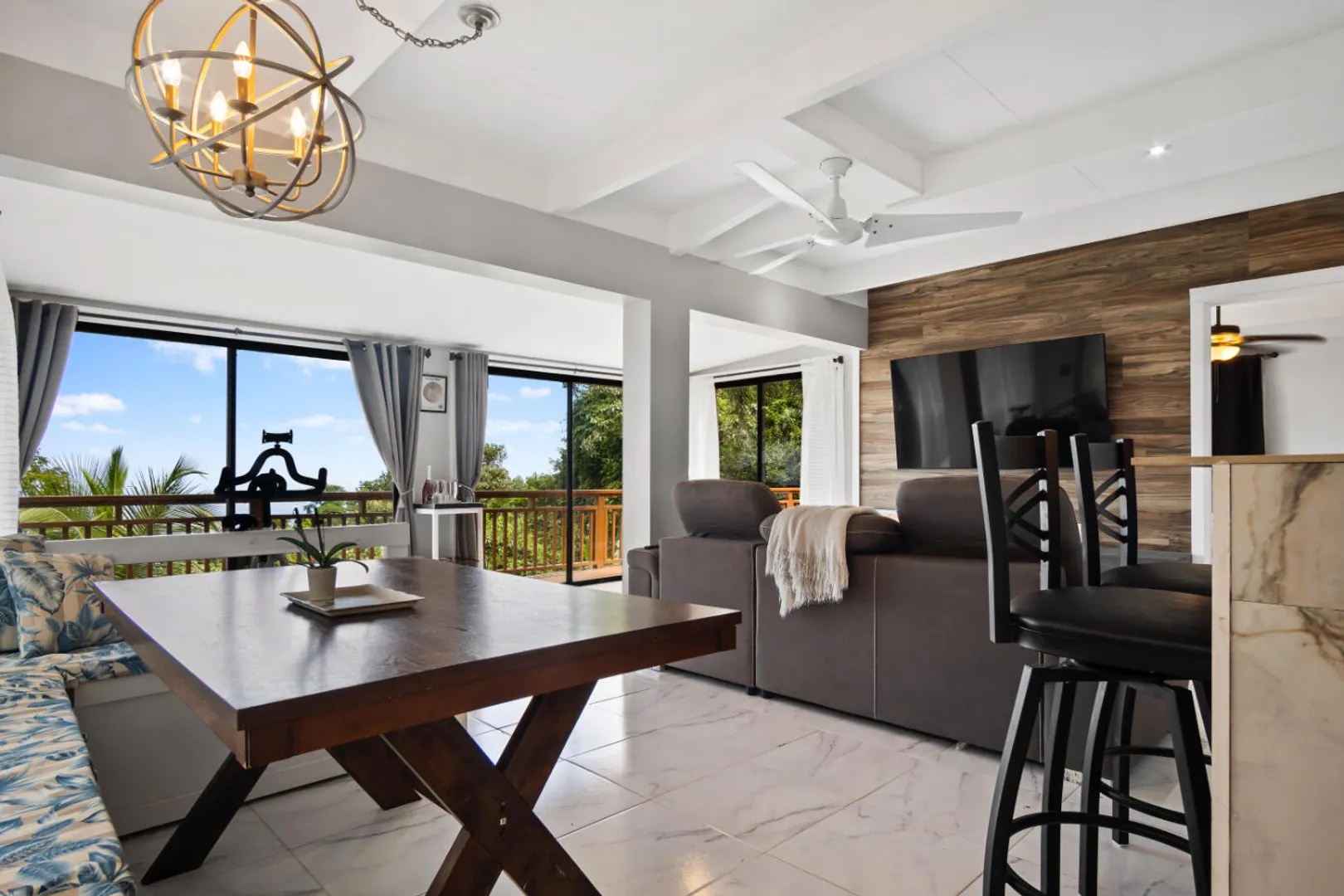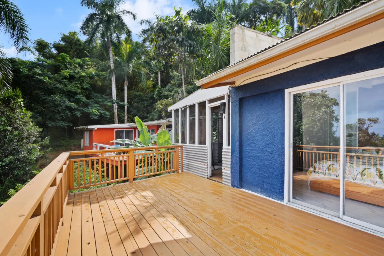 Motivated seller! Cute 2 bedroom two bathroom house on the lush Northside with a separate one bedroom cottage to bring in some rental income. Recent upgrades to the main house include new roof, new deck, new gutters, new electrical, new plumbing, new cabinetry and new appliances. Cistern has been cleaned and resealed. Storage room under the house. Nice yard with tons of fruit trees including mango, bananas, cacao, soursop, papaya, noni, bay leaf, starfruit and coconut. Lots of potential, come see!