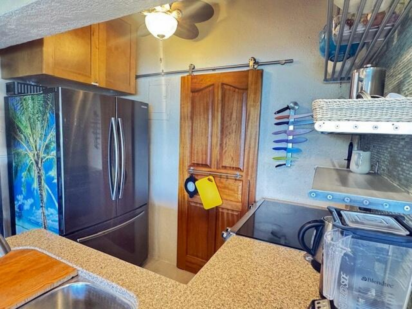 WATERFRONT! Sirens Song Villa is a beautifully designed, light filled one bedroom condo, perfect for either year round living or as a vacation rental. You'll find a kitchen with full size appliances including dishwasher and washer/dryer, remodeled bathroom with walk-in shower and generous closet space. Condo fees include water, wifi and internet and the installation of backup generators is planned for completion in 2026. Relax on the deck outside overlooking crystal clear waters below and you may see a turtle or ray swim by. You can also enjoy any one of the three pools and the two onsite restaurants. Point Pleasant is a gated community set on 15 tropically landscaped acres with nature trails. See full details in the FACT SHEET in DOCUMENTS. You're minutes from Red Hookand world class snorkeling at nearby Coki and Lindquist beaches. B-8 is a short stroll to Point Pleasant's pretty pocket Sugar Beach or you can walk over to Pineapple Beach and Margaritaville Resort.