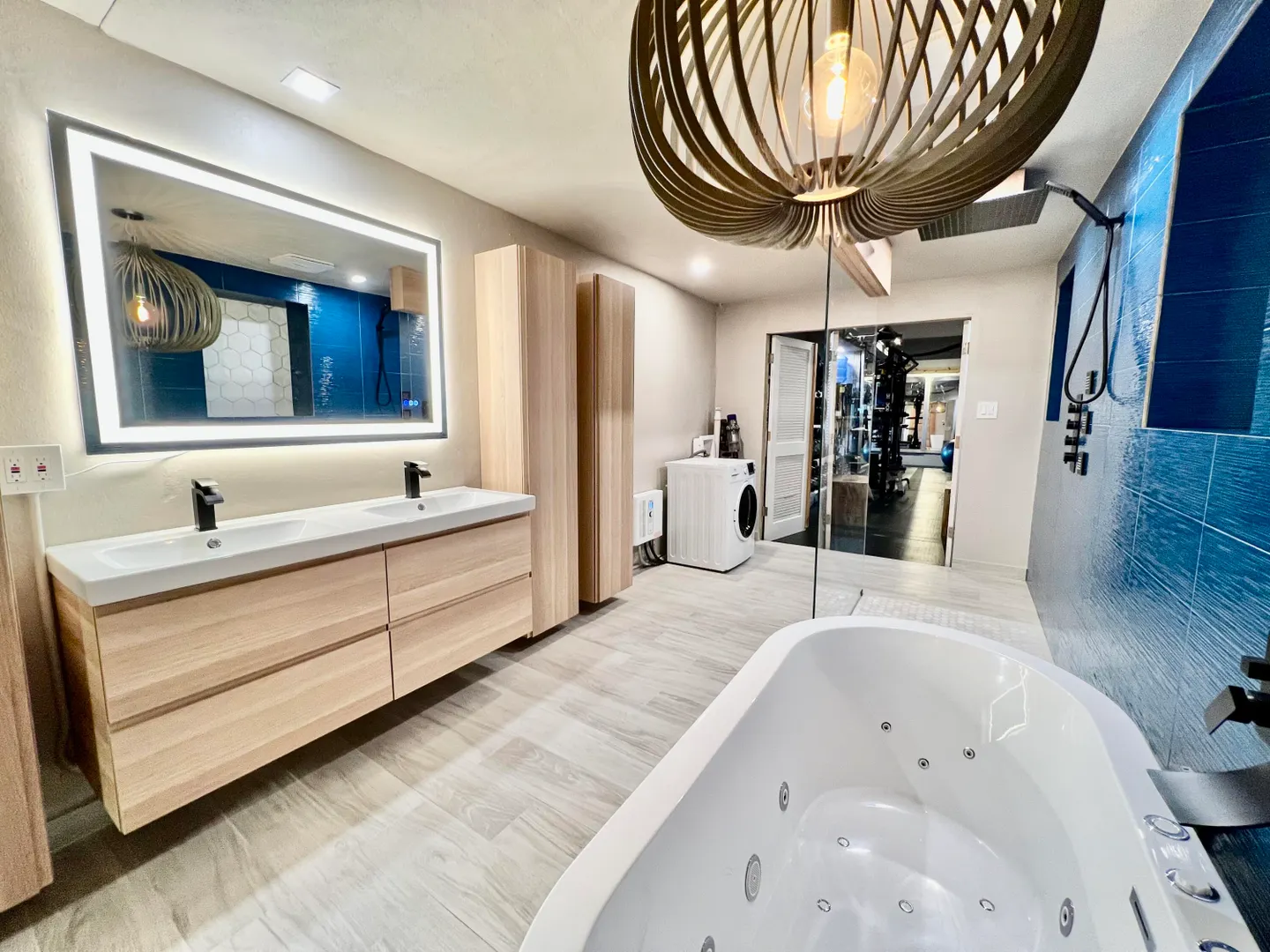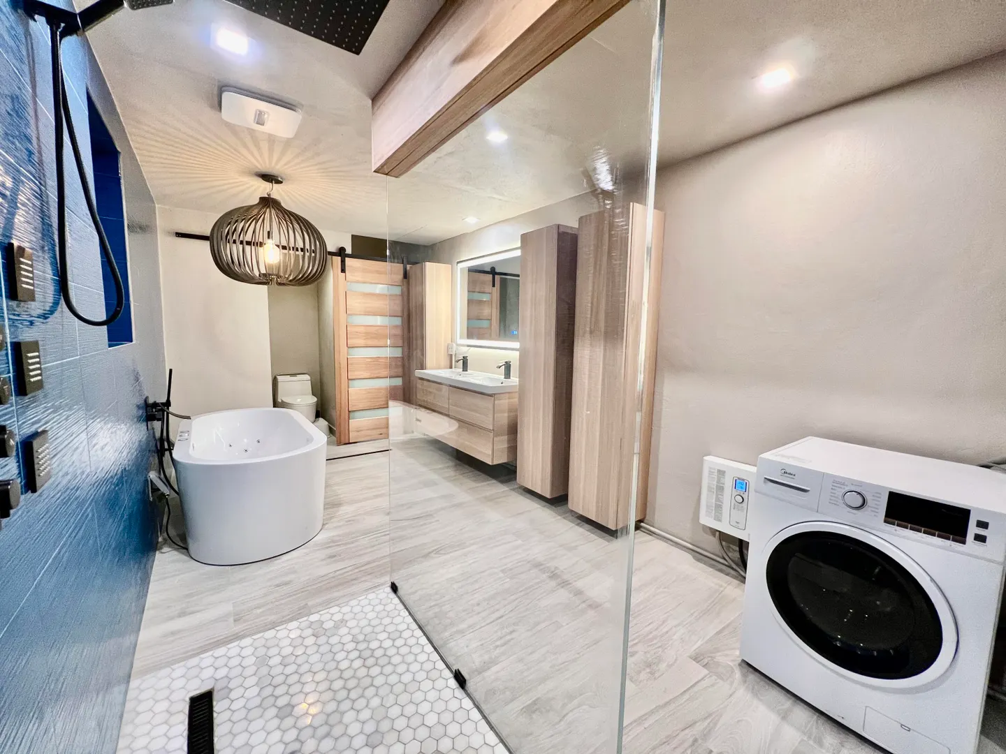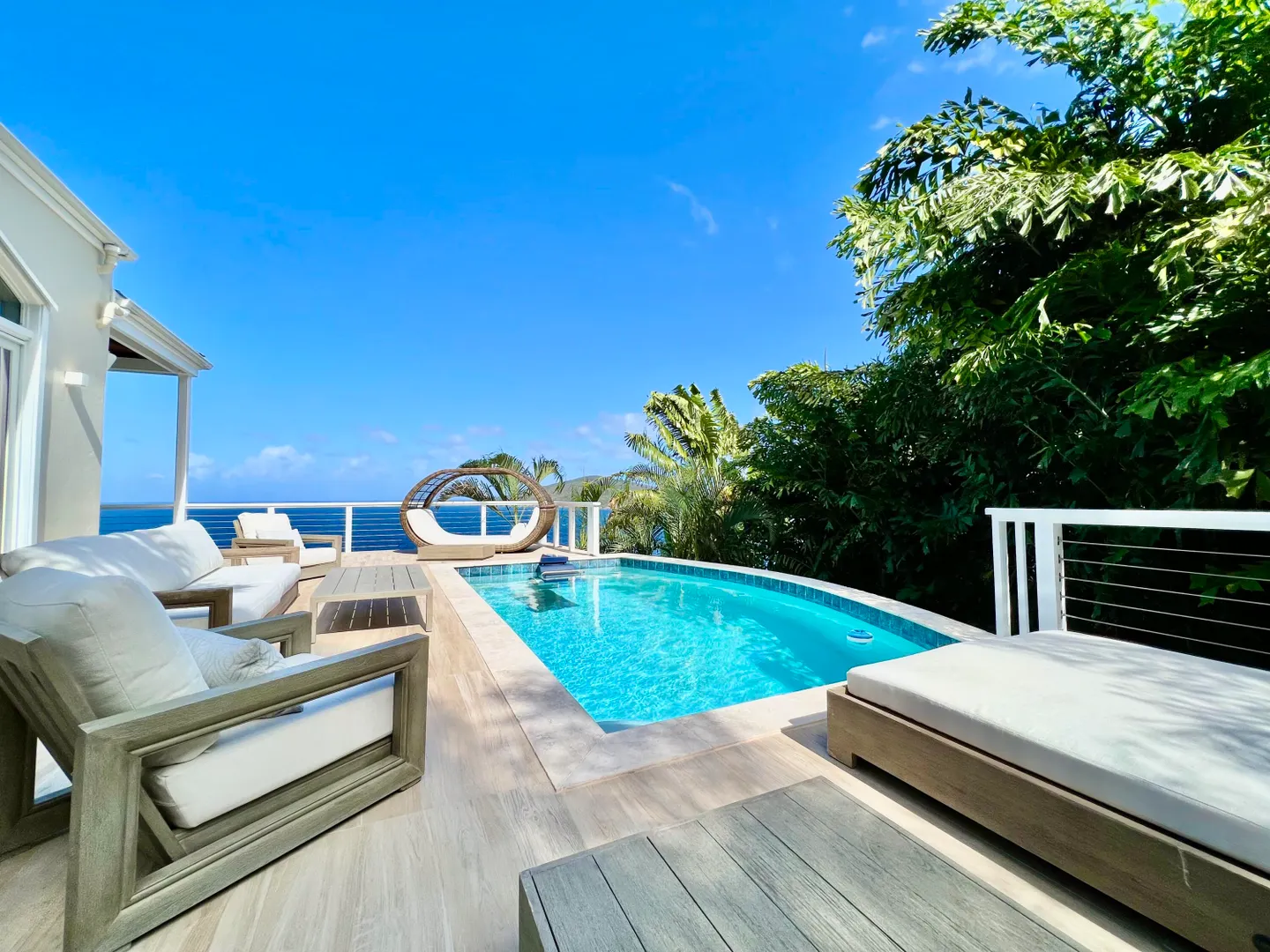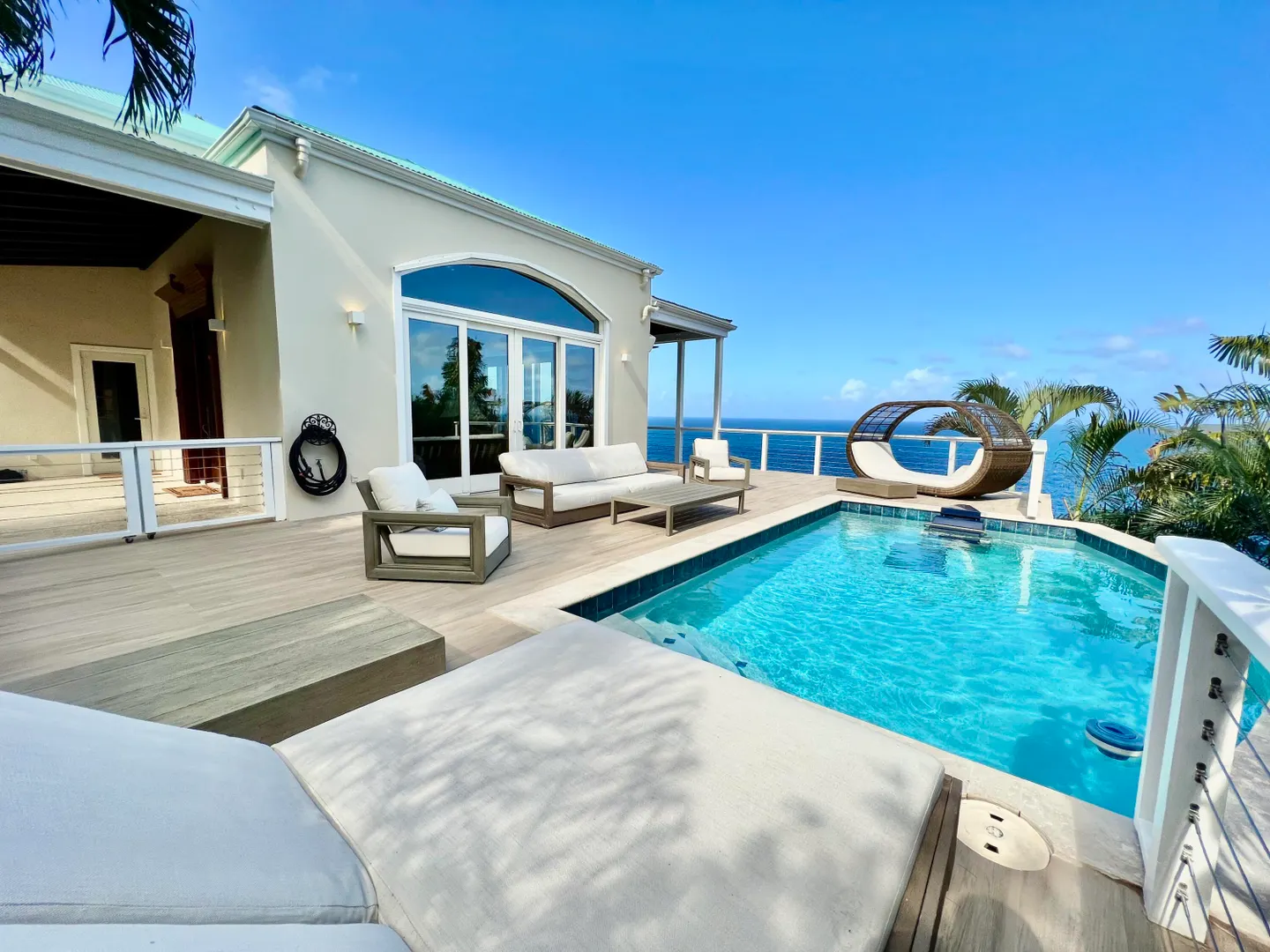 For comp purposes only. This immaculate and tranquil Caribbean villa with superb amenities provides spectacular, unobstructed views across the Atlantic to Hans Lollik island and beyond. For the athletically minded, the pool features an endless swimming machine, and the villa includes a large and well equipped gym. More of a couch potato? Consider the possibilities: the gym is easily convertible to a home theater, game room or sixth bedroom. Five Tesla batteries and solar panels keep the power on through all outages without the noise and pollution of a traditional generator. The downstairs apartment is as meticulously finished as the rest of the house with a gorgeous, fully appointed kitchen and jacuzzi tub.