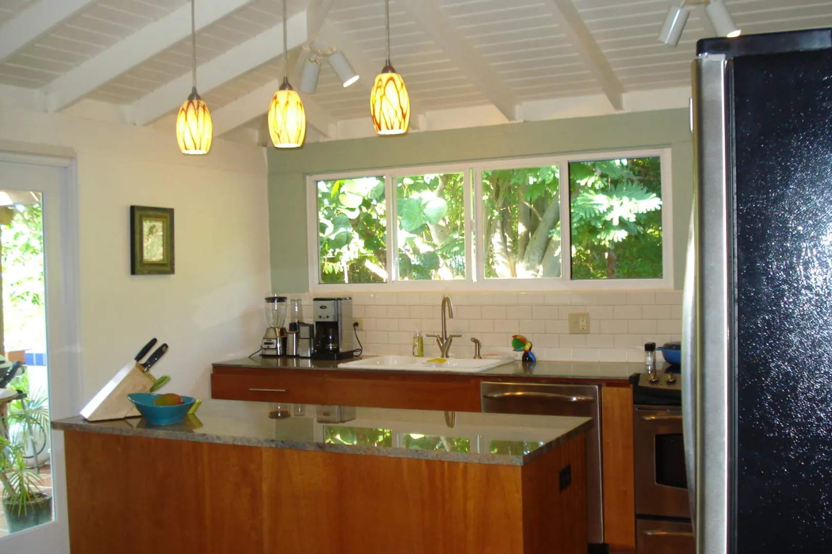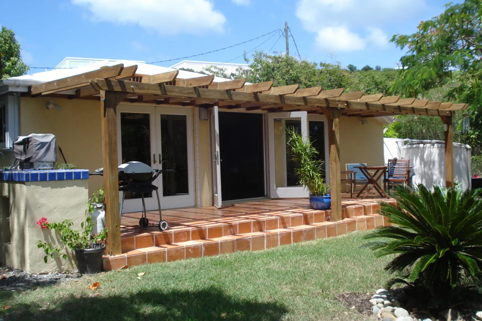 Sugar Bird Villa, Water Island. Fully renovated in 2008. 2BR/2BA nestled in quiet enclave. Granite and stainless kitchen opens into living dining area for entertaining at it's best. French doors lead onto spacious deck with pergola. Flat lot, handicap accessible, mature trees. In addition, the Seller has a profitable, established Water Island business that may be available.