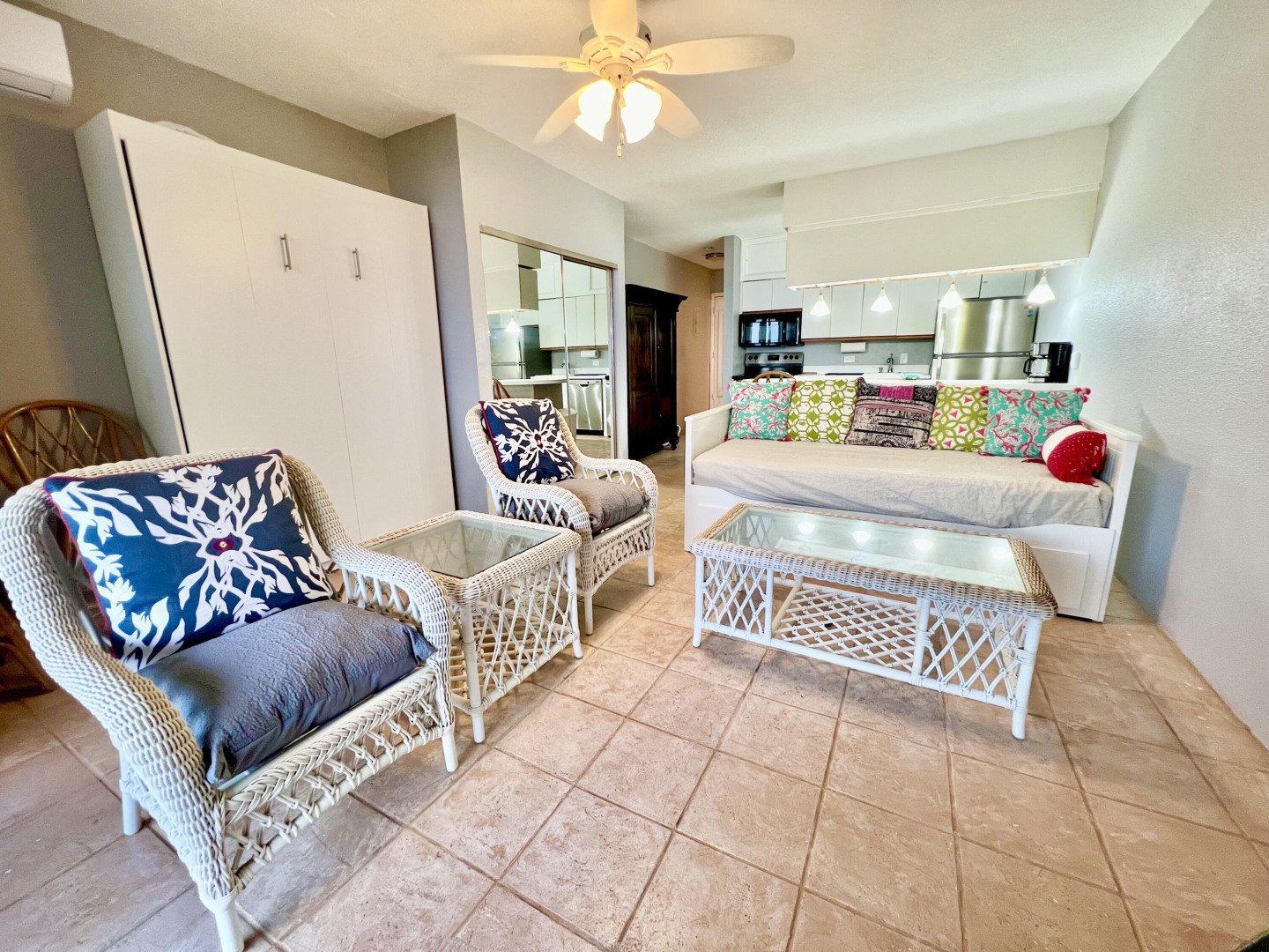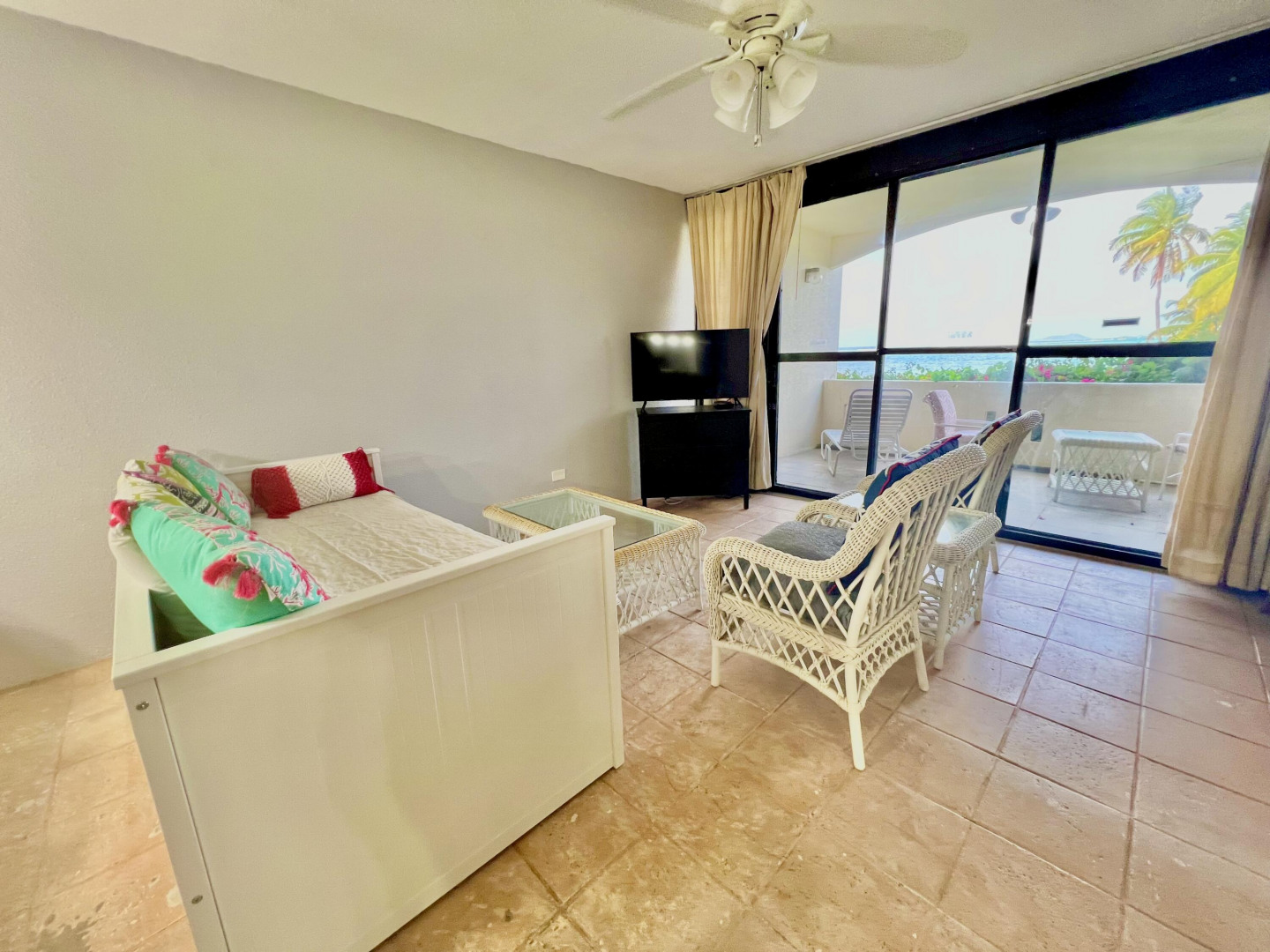 Enjoy the Caribbean breezes in this waterfront facing studio with new furnishings. Unit has murphy bed as well as sofa/daybed. Internet included tenant responsible for water and WAPA. Complex features pool, tennis courts and onsite restaurant. Available 6/1