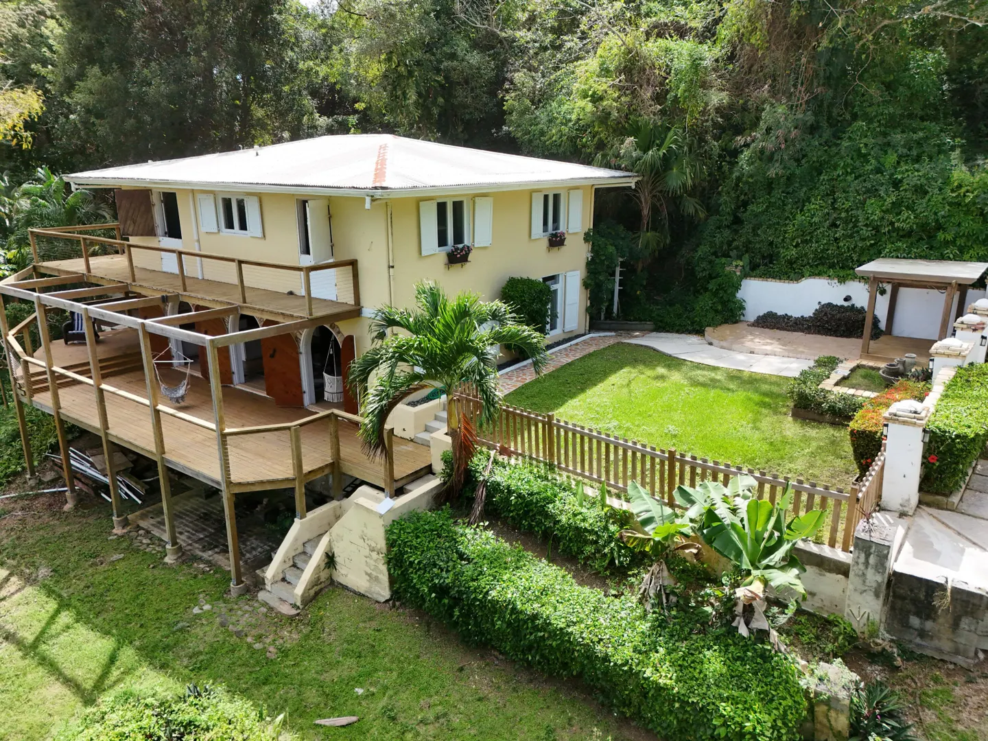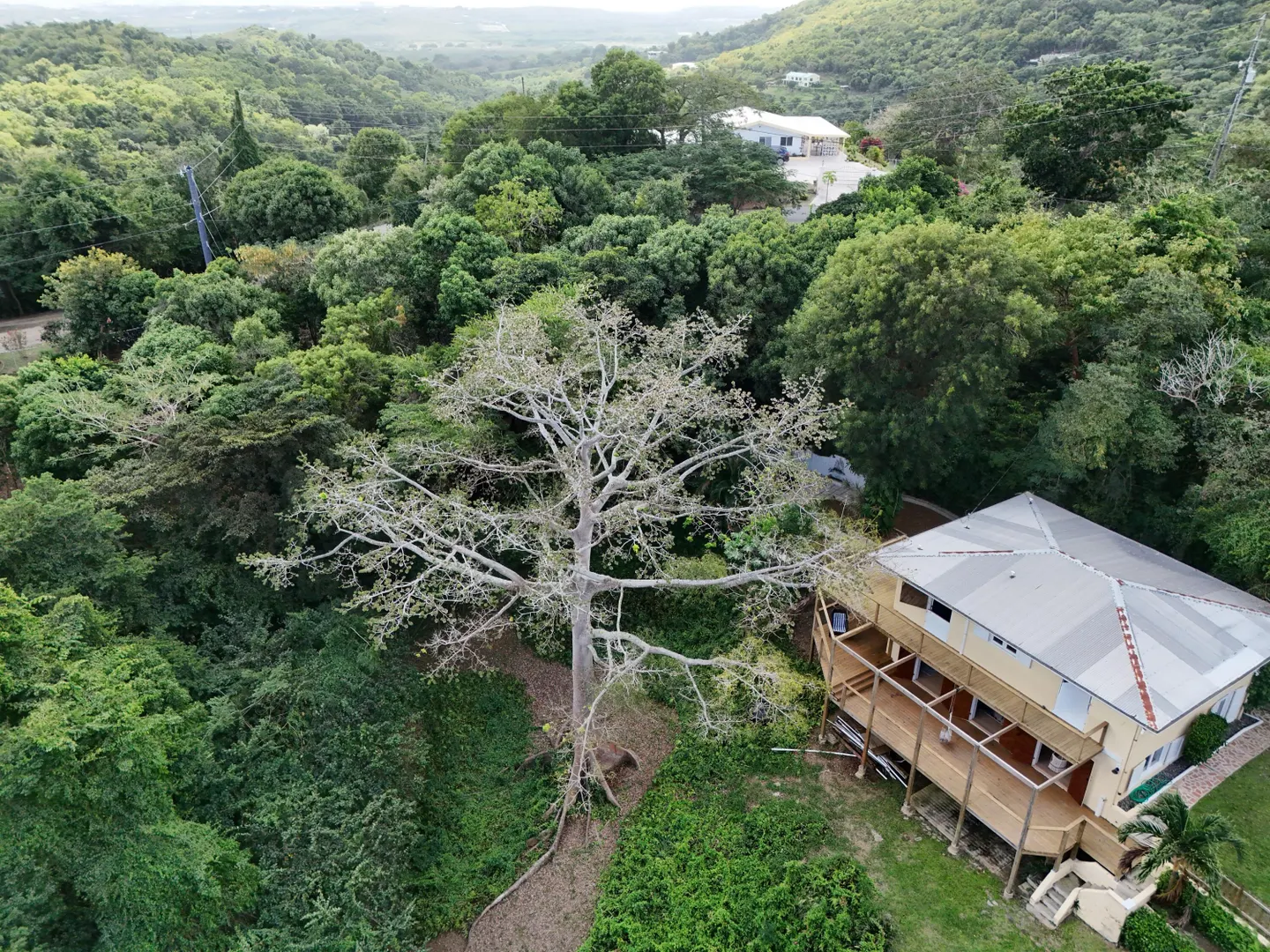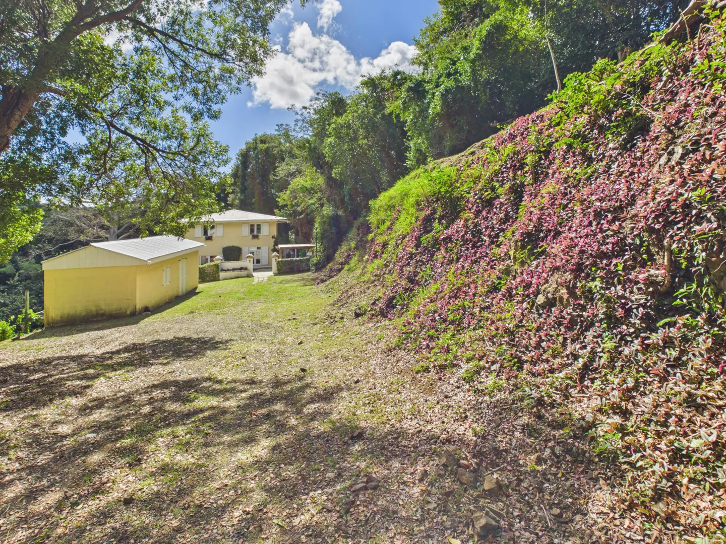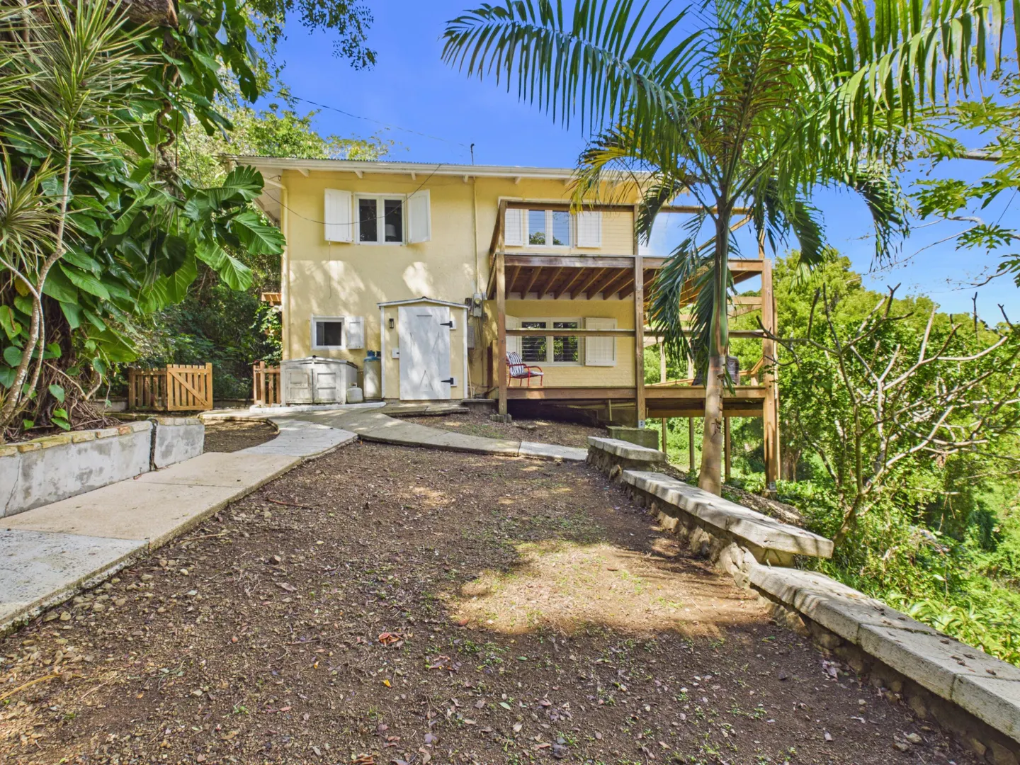 Tucked into 1.16 lush acres in St. Croix's green hills, this private 3-bedroom, 2-bath home captures sweeping mountain and Caribbean Sea views. Mature tropical landscaping creates a peaceful island retreat. Inside, granite countertops, a cozy fireplace, and charming architectural details add warmth and character. Distinctive Danish brick archways open to expansive wraparound decks designed for catching breezes and entertaining under the stars. Enjoy the tranquil areas with ponds and fountains. The shed is a great addition for a workshop or maybe your own art studio. Just minutes from Cane Bay, with dining, hiking trails, world class diving and 10 minutes to Carambola Golf Club. This is the perfect private island retreat!Built in 1987 and well maintained, this 2,712 sq. ft. residence is surrounded by mature landscaping that enhances its privacy and connection to nature. Enjoy a tranquil setting filled with tropical blooms, graceful palms and a majestic kapok tree. The gated and fenced yard creates a secure and welcoming environment for pets or outdoor enjoyment.