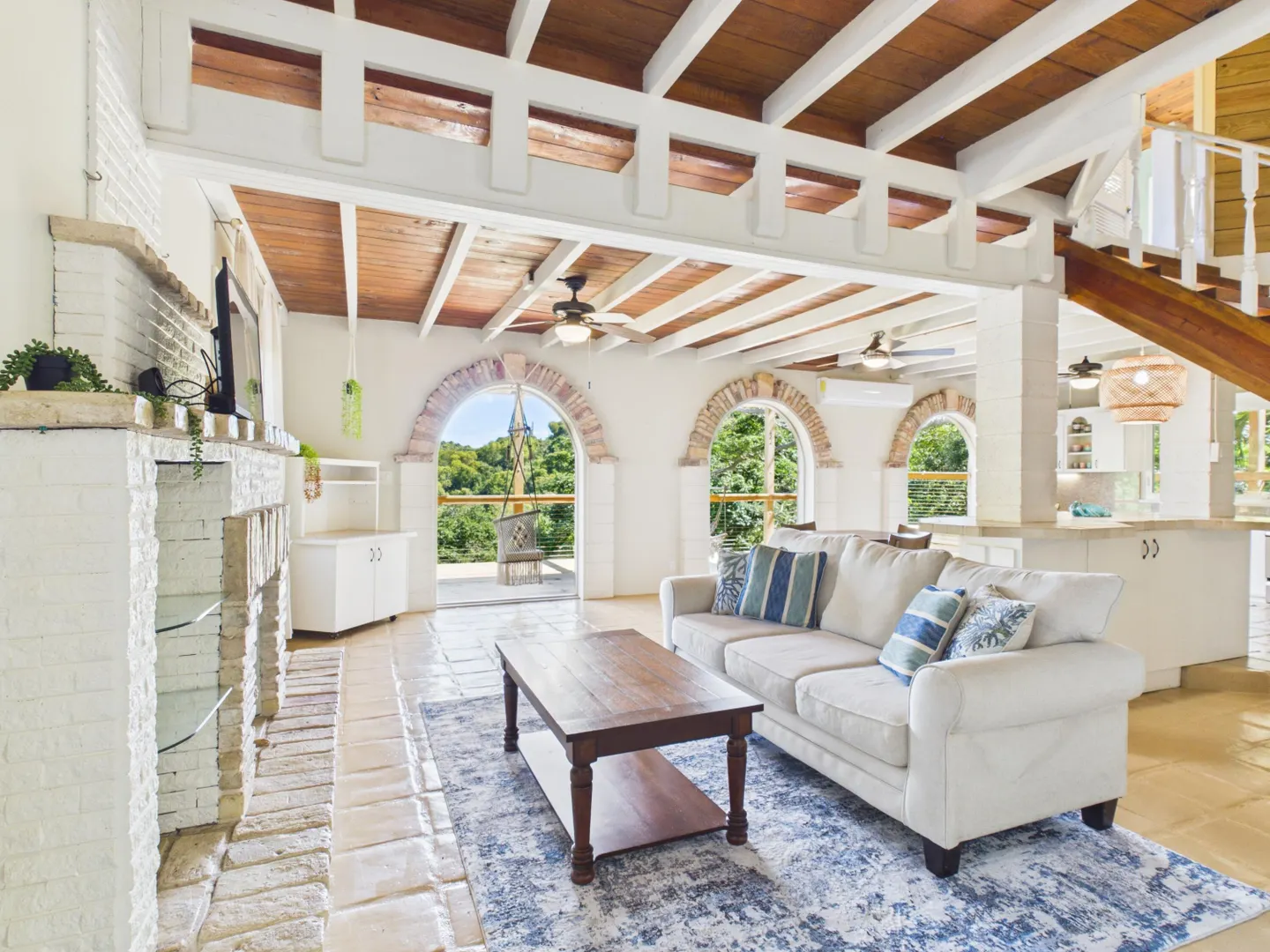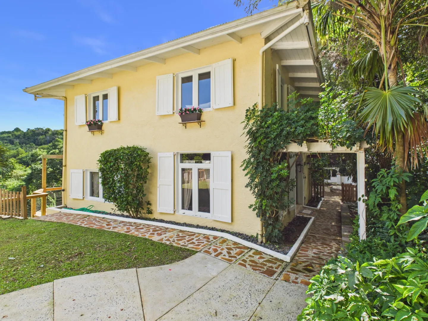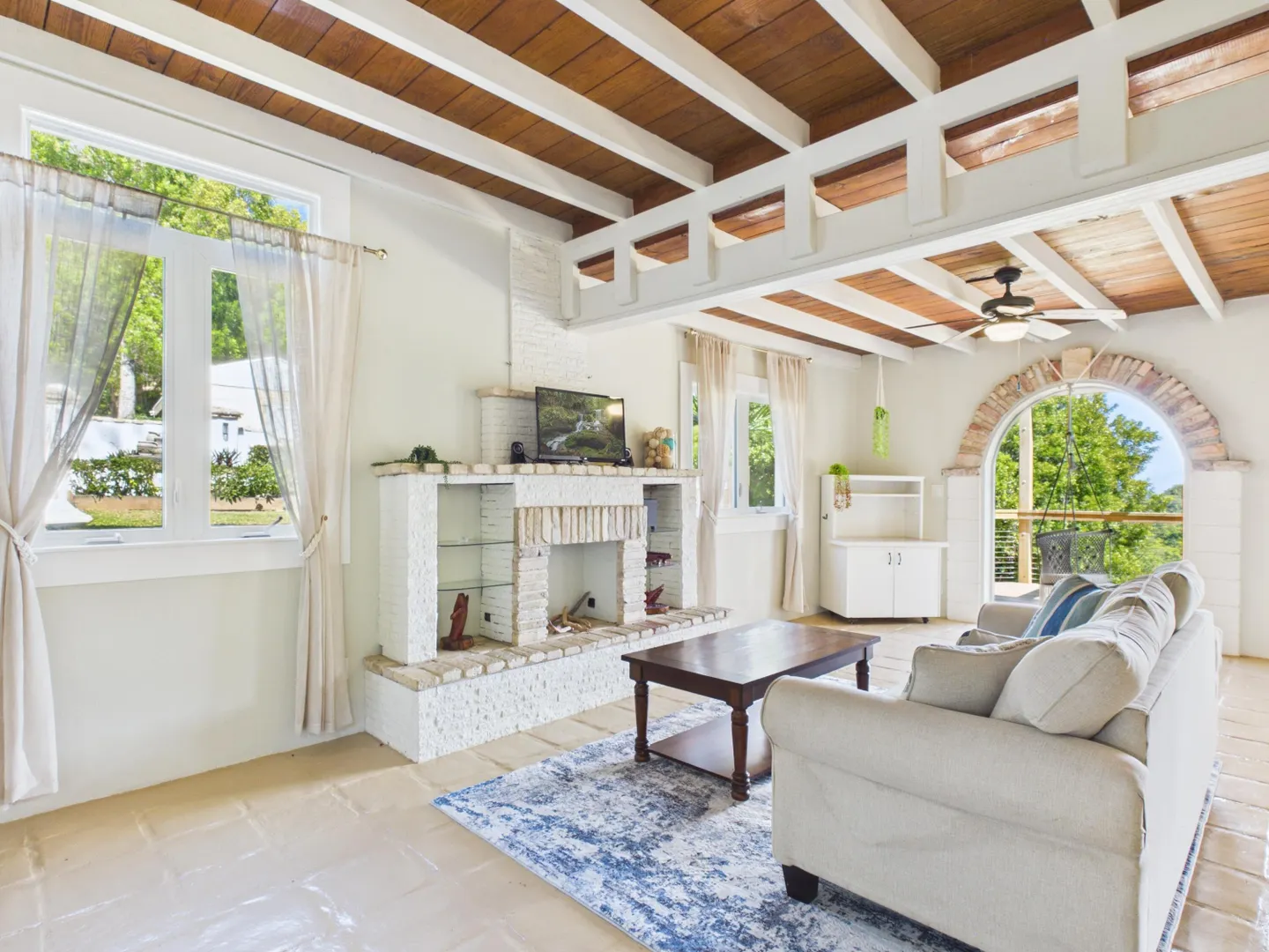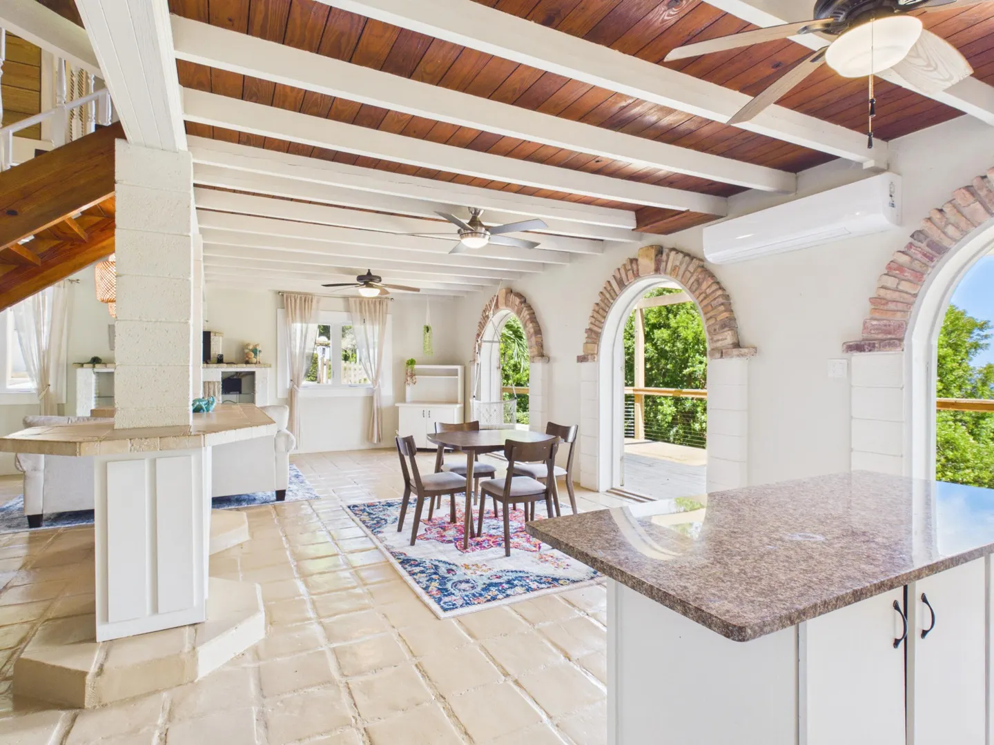 Tucked into 1.16 lush acres in St. Croix's green hills, this private 3-bedroom, 2-bath home captures sweeping mountain and Caribbean Sea views. Mature tropical landscaping creates a peaceful island retreat. Inside, granite countertops, a cozy fireplace, and charming architectural details add warmth and character. Distinctive Danish brick archways open to expansive wraparound decks designed for catching breezes and entertaining under the stars. Enjoy the tranquil areas with ponds and fountains. The shed is a great addition for a workshop or maybe your own art studio. Just minutes from Cane Bay, with dining, hiking trails, world class diving and 10 minutes to Carambola Golf Club. This is the perfect private island retreat!Built in 1987 and well maintained, this 2,712 sq. ft. residence is surrounded by mature landscaping that enhances its privacy and connection to nature. Enjoy a tranquil setting filled with tropical blooms, graceful palms and a majestic kapok tree. The gated and fenced yard creates a secure and welcoming environment for pets or outdoor enjoyment.