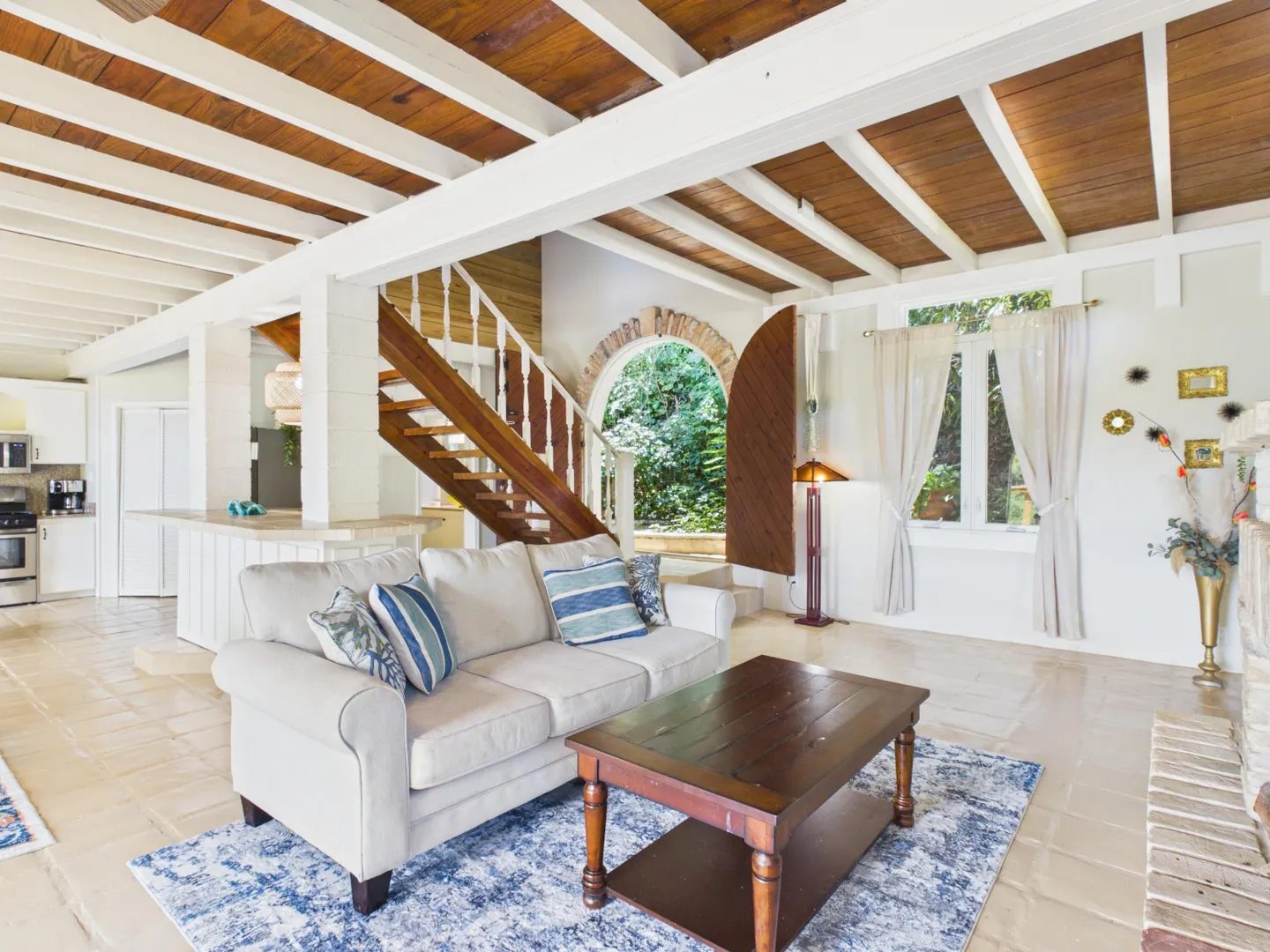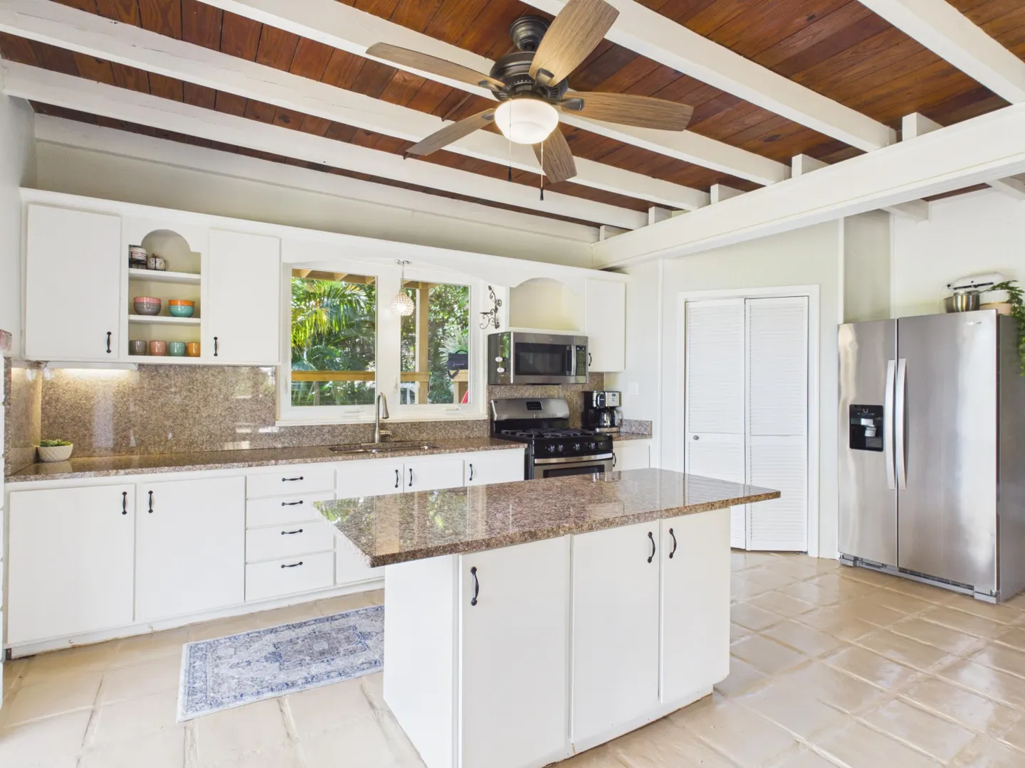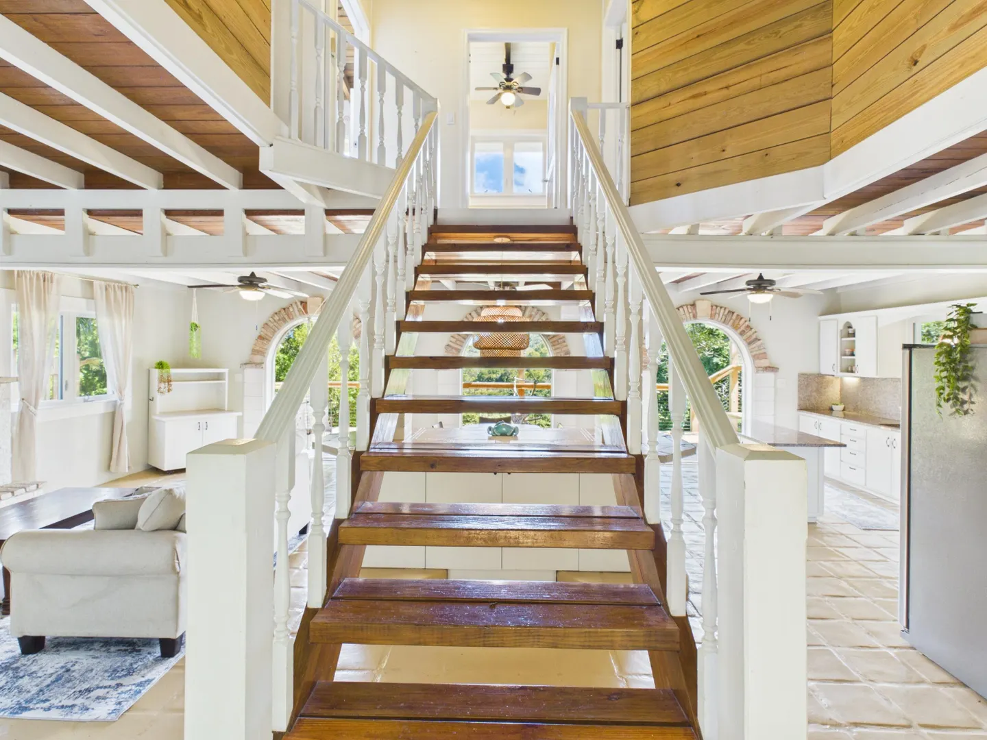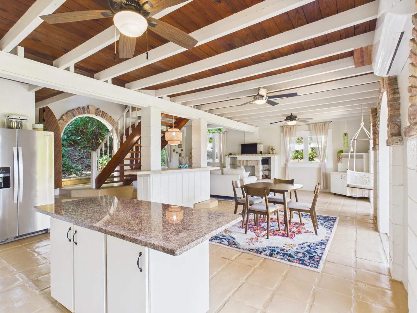Tucked into 1.16 lush acres in St. Croix's green hills, this private 3-bedroom, 2-bath home captures sweeping mountain and Caribbean Sea views. Mature tropical landscaping creates a peaceful island retreat. Inside, granite countertops, a cozy fireplace, and charming architectural details add warmth and character. Distinctive Danish brick archways open to expansive wraparound decks designed for catching breezes and entertaining under the stars. Enjoy the tranquil areas with ponds and fountains. The shed is a great addition for a workshop or maybe your own art studio. Just minutes from Cane Bay, with dining, hiking trails, world class diving and 10 minutes to Carambola Golf Club. This is the perfect private island retreat!Built in 1987 and well maintained, this 2,712 sq. ft. residence is surrounded by mature landscaping that enhances its privacy and connection to nature. Enjoy a tranquil setting filled with tropical blooms, graceful palms and a majestic kapok tree. The gated and fenced yard creates a secure and welcoming environment for pets or outdoor enjoyment.