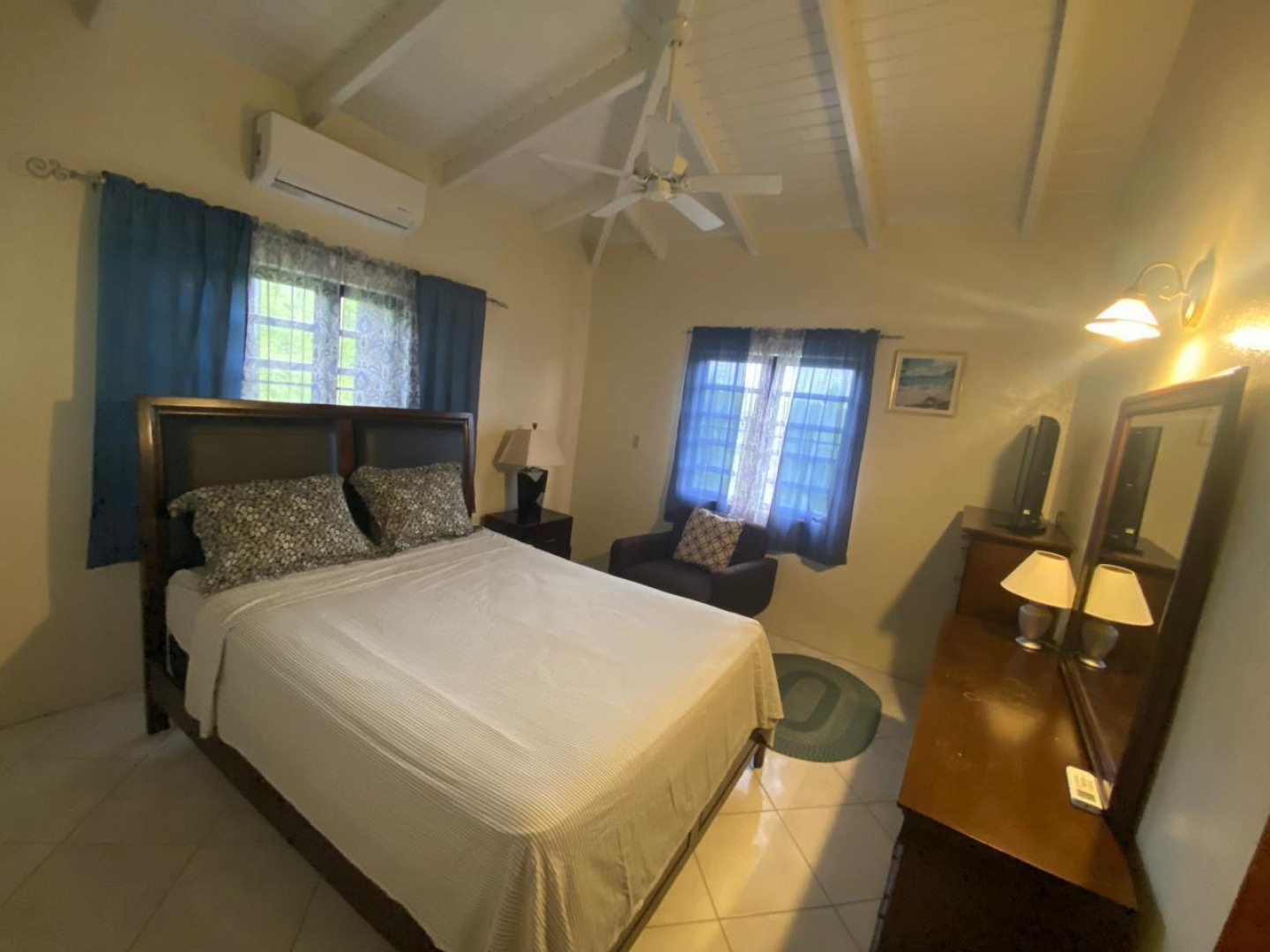 Lovely home in a really nice and quiet neighborhood, elevated for great tradewinds, nice back yard, paved roads and very close to town .Generator is an added bonus. This house comes fully furnished including upscale appliances.