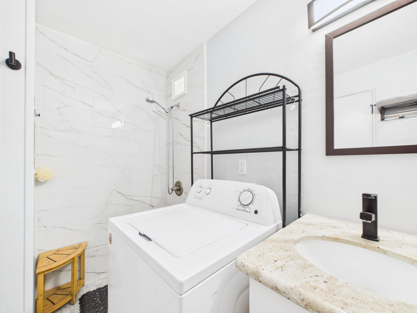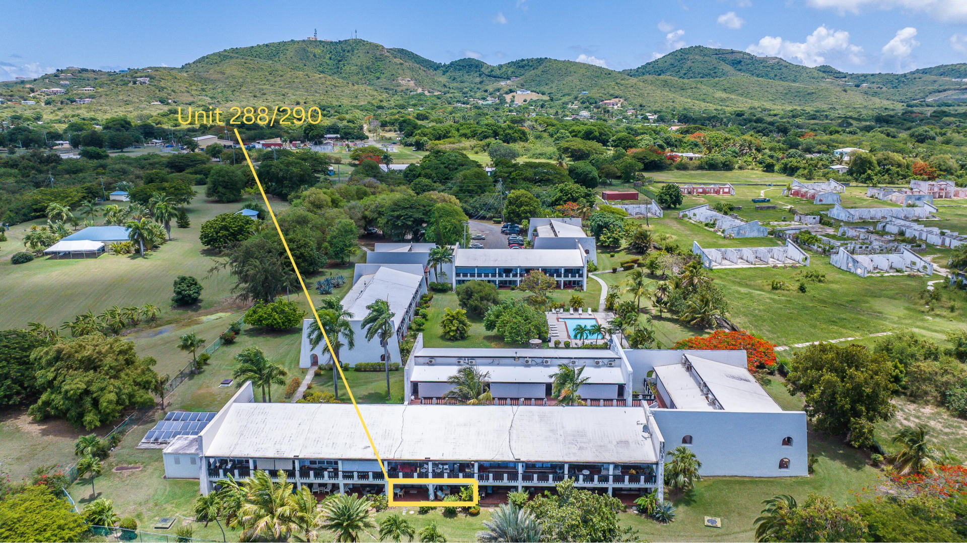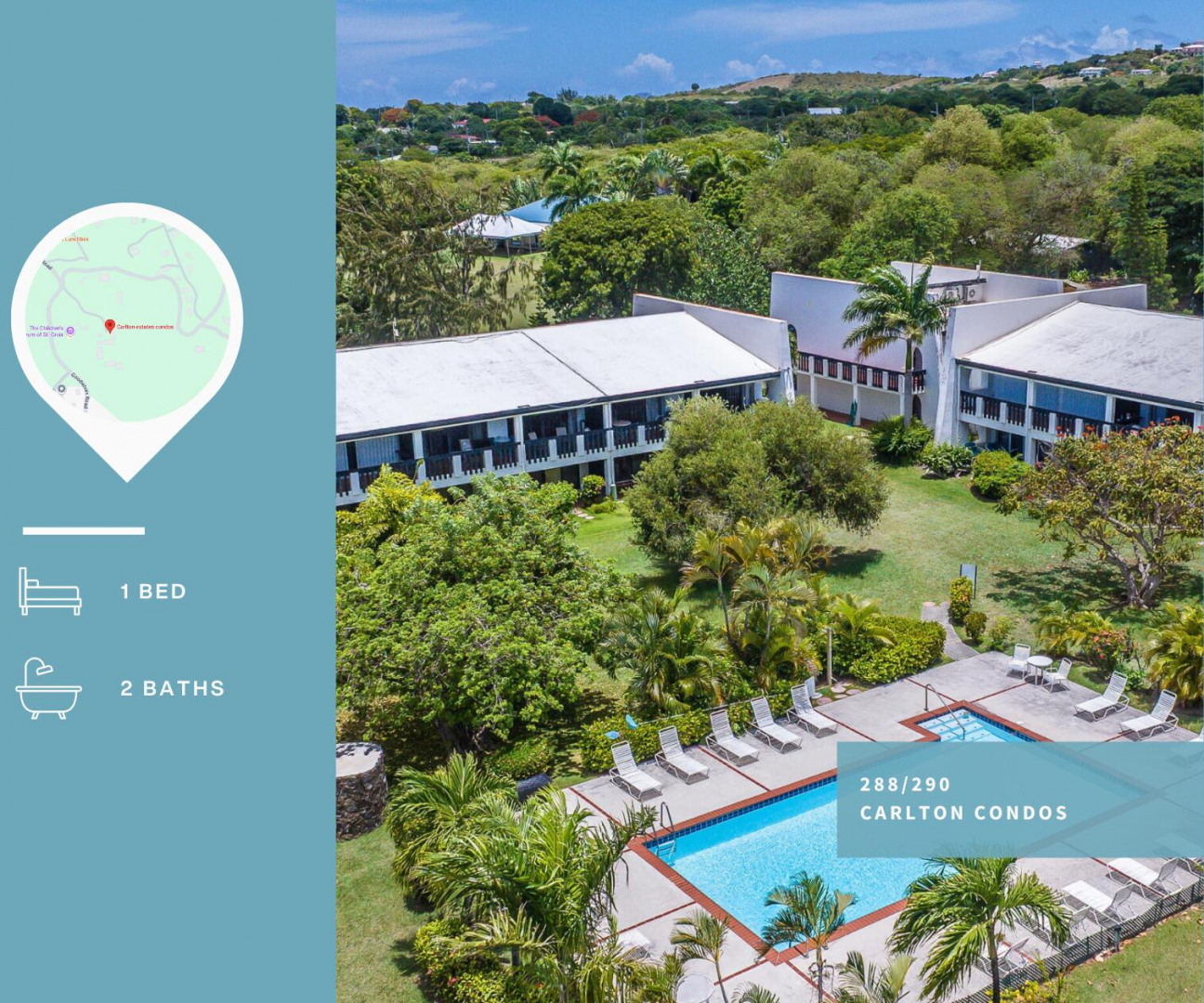 Discover a hidden gem on the beautiful island of St. Croix! This charming Garden Unit at Estate Carlton Condominiums offers two air-conditioned bedrooms, two remodeled bathrooms, and a fully equipped kitchen with a refrigerator, dishwasher and gas stove. Located in a gated community with a pool and common laundry, this lower unit features a private back garden patio, two front entry doors, washer and dryer and sliders from the bedroom and living room to the patio. Enjoy a peaceful tropical setting just 15 minutes from West End beaches, dining, and grocery stores. Water and gas are included in the low HOA fees. A perfect blend of comfort, privacy, and Caribbean charm--don't miss this hidden island retreat!