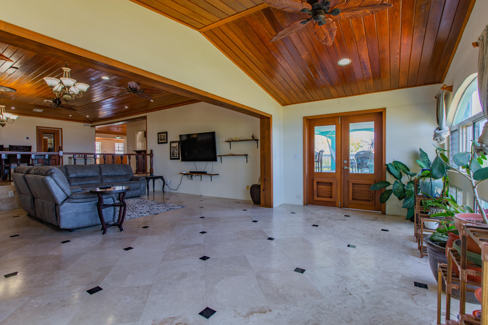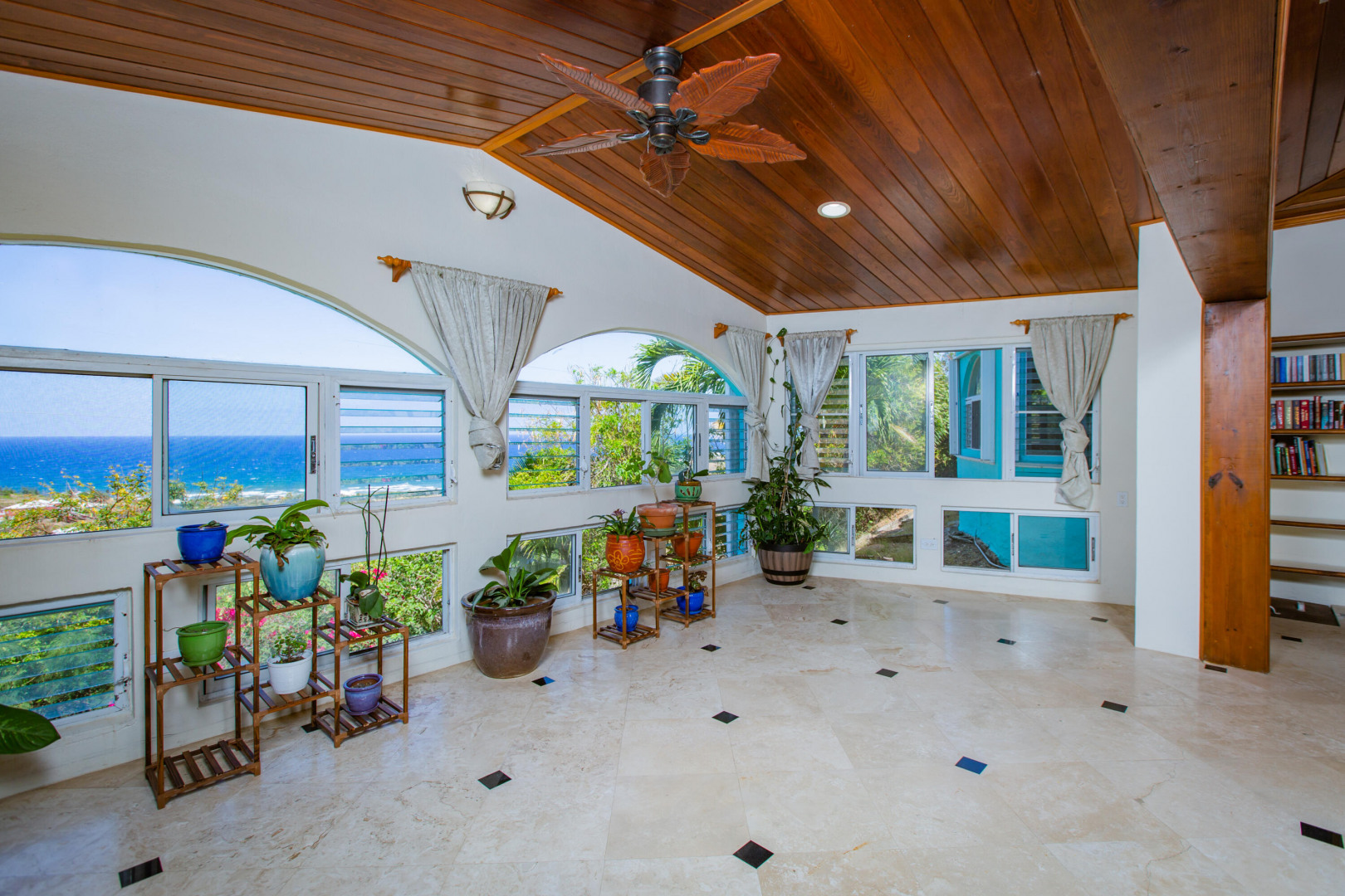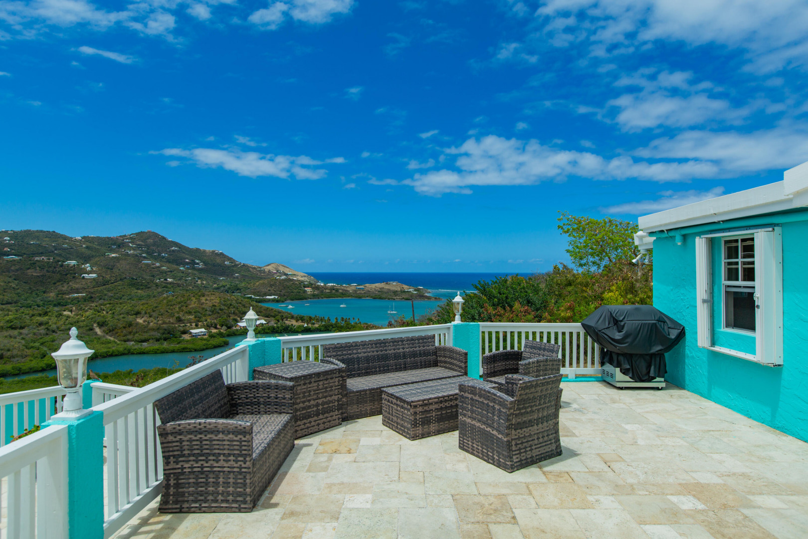 This Caribbean oasis nestled in the hillside of Judith's Fancy estate sits on 0.81 acres and offers stunning views in every direction. Watch the sun rise over Buck Island as you enjoy your morning coffee or sit poolside in the evenings as the sun sets over Salt River. Ample outdoor spaces and large rooms make this a wonderful home for entertaining. The expansive kitchen features two freezers, two refrigerators, two dishwashers, a large gas range, breakfast room and an adjacent wet bar perfect for parties or a large family. The spacious primary bedroom suite includes two walk in closets, a private sitting room and an ensuite bathroom. The main house is completed by three additional sizable bedrooms, a private office, laundry room with new washer and dryer and plenty of storage.