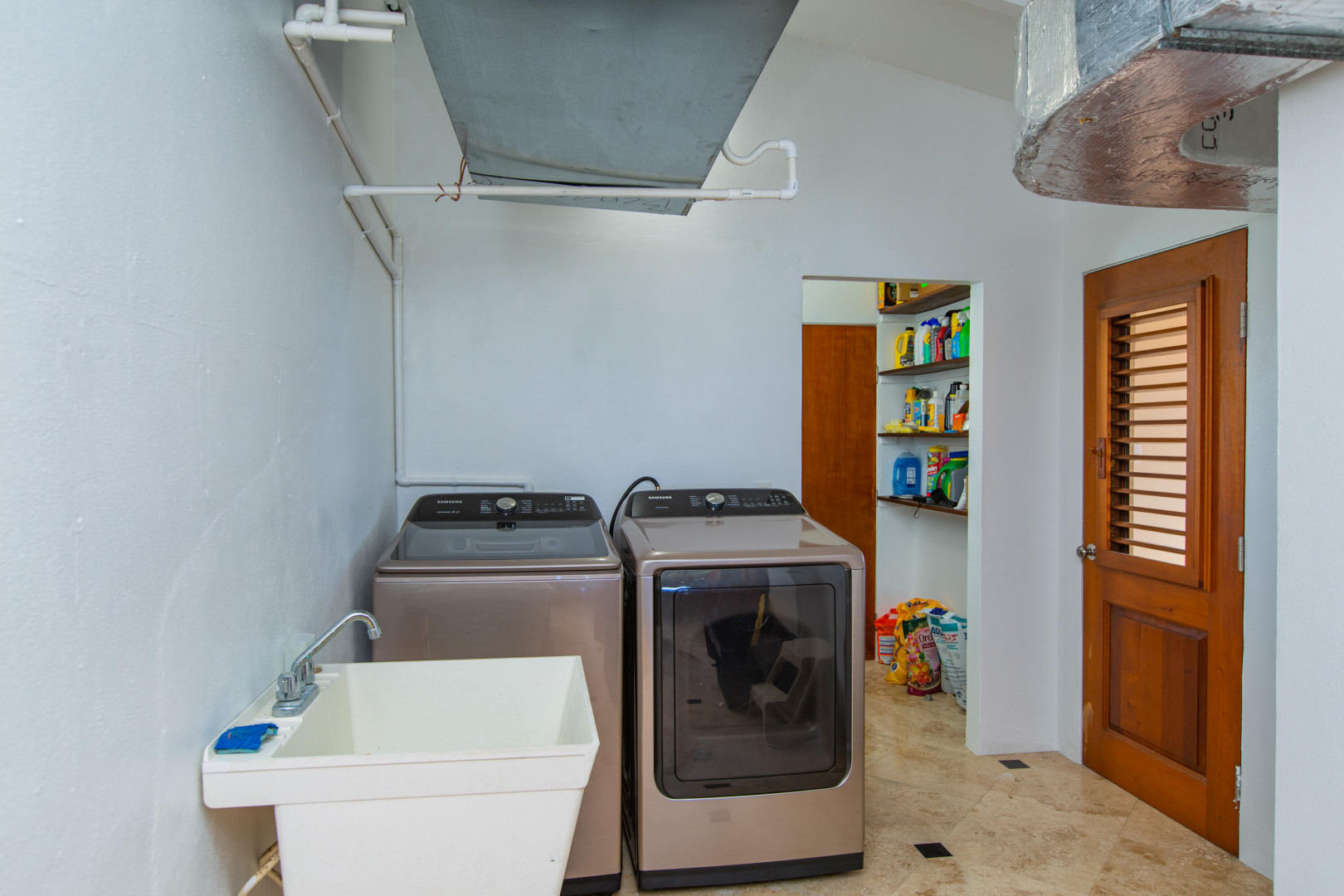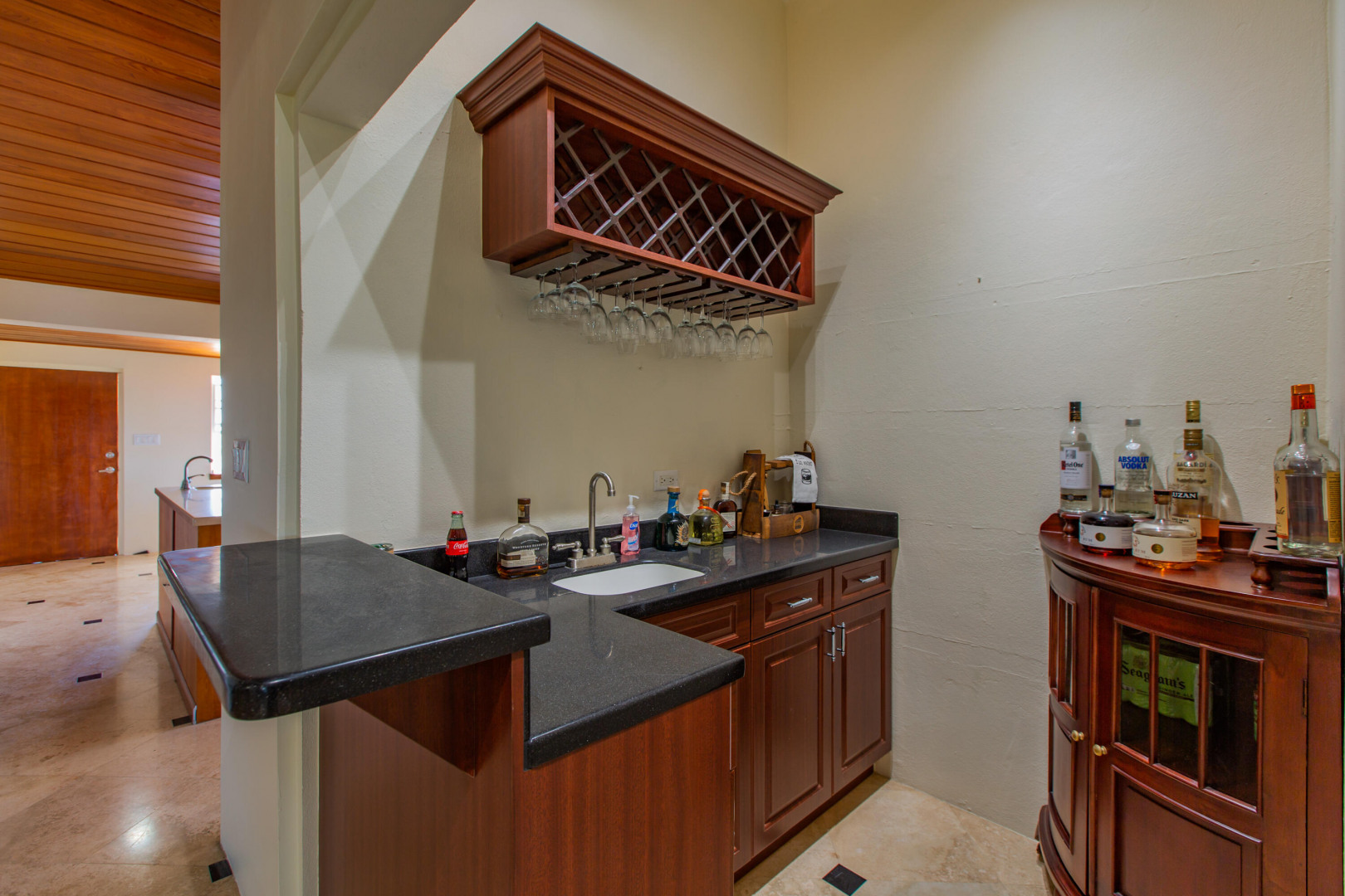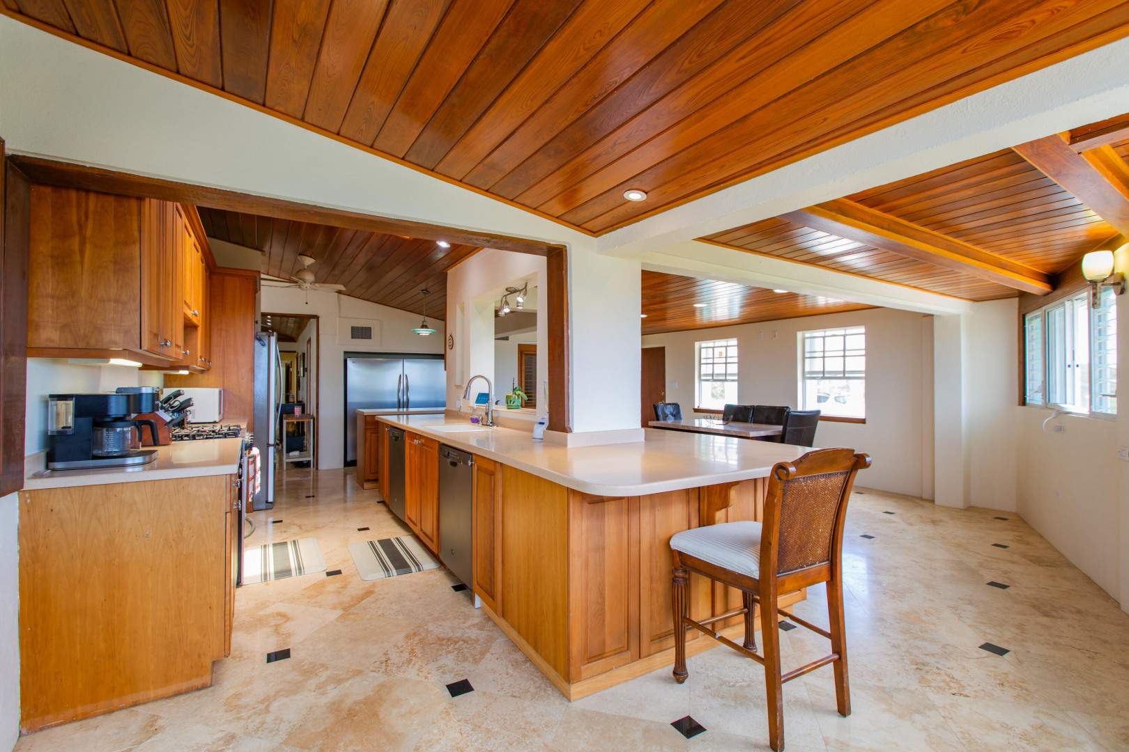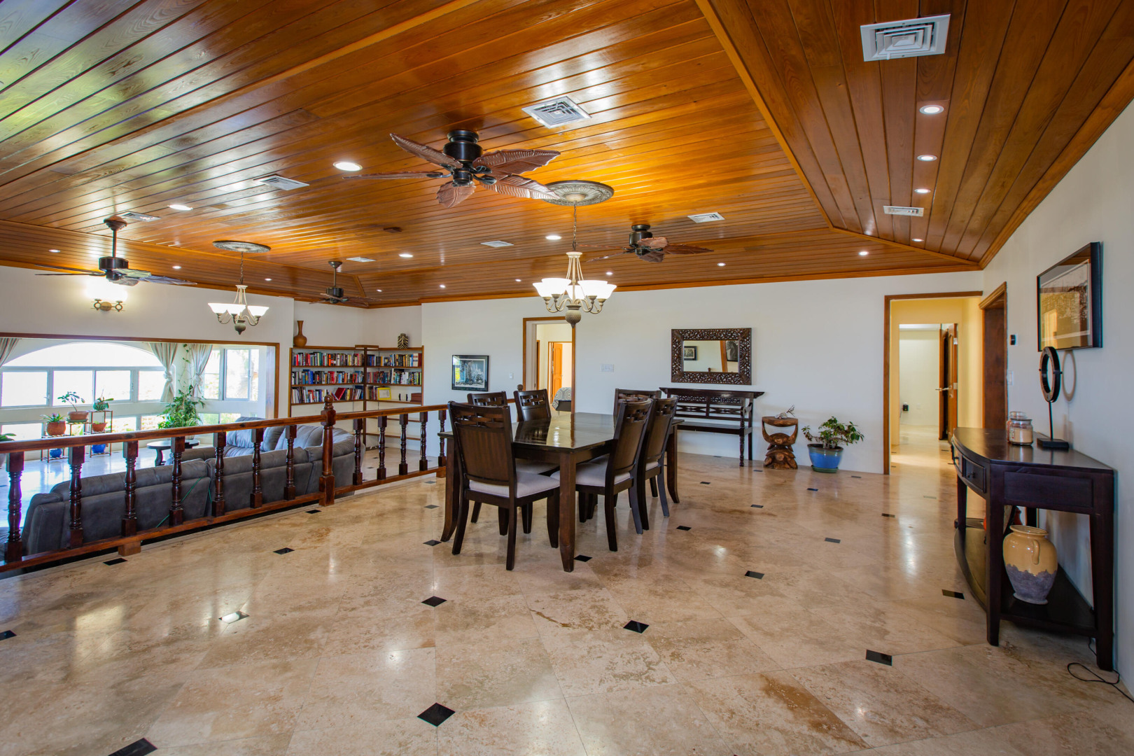 This Caribbean oasis nestled in the hillside of Judith's Fancy estate sits on 0.81 acres and offers stunning views in every direction. Watch the sun rise over Buck Island as you enjoy your morning coffee or sit poolside in the evenings as the sun sets over Salt River. Ample outdoor spaces and large rooms make this a wonderful home for entertaining. The expansive kitchen features two freezers, two refrigerators, two dishwashers, a large gas range, breakfast room and an adjacent wet bar perfect for parties or a large family. The spacious primary bedroom suite includes two walk in closets, a private sitting room and an ensuite bathroom. The main house is completed by three additional sizable bedrooms, a private office, laundry room with new washer and dryer and plenty of storage.