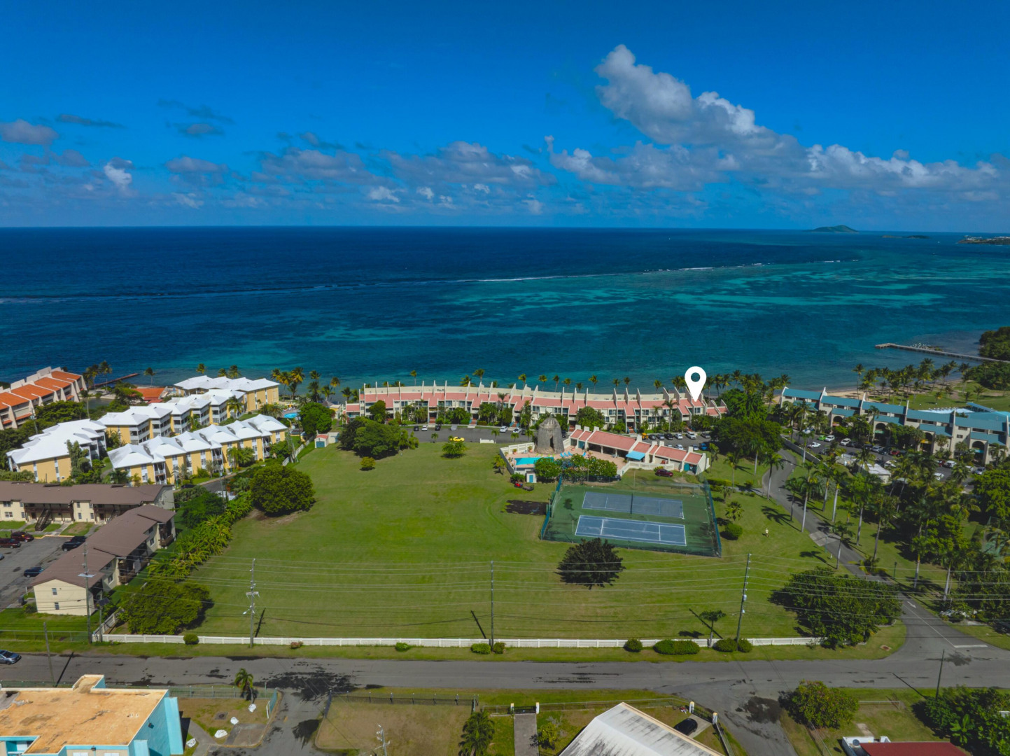 Dive into island bliss at 315 Sugar Beach! This spacious 4 bedroom 2 bathroom end unit features Caribbean blues in every direction! The expansive gallery allows you to gaze at Buck Island and watch the sunrise each morning. Better yet, you are just steps away from a serene sandy beach! The layout is great for larger families or groups needing additional space. Take advantage of the 4 bedrooms and rent the condo for extra income if desired! The main bedroom offers stellar views and direct patio access. You will find AC throughout and a lovely loft space upstairs. The roomy kitchen is great for entertaining and the condo does come furnished. Washer & dryer are also included. Sugar Beach is conveniently located near 5 corners and close to Christiansted where you will find an abundance ofrestaurants and shopping. The condo grounds are beautifully maintained and feature a tennis court, lovely pool and lush landscaping. Pets are also allowed with HOA approval. This prime location truly is unlike most condos on the island! Don't let this Sugar Beach gem slip away and schedule a showing.