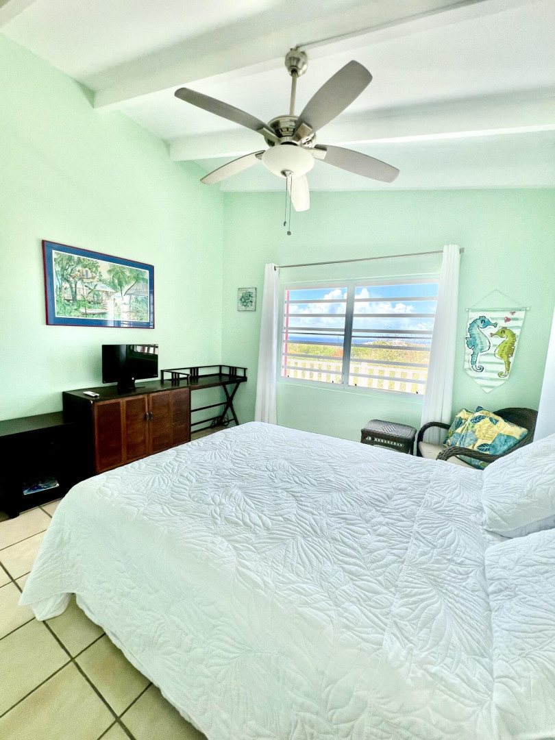 Enjoy island living in this well-maintained 3 BD , 2 BA home featuring solar power , battery backup and AC in all bedrooms for comfort and efficiency. The open, airy living room and kitchen offer plenty of natural light and space to relax or entertain. Spacious dining area and lots of covered and uncovered outdoor spaces. Beautifully landscaped grounds and regular pest control are included for easy maintenance. Tenant is responsible for 50% of water delivery when needed and any WAPA usage outside of solar capitcity. High-speed internet and Dish TV service are available for a fixed monthly fee of just $100. Situated in the peaceful Mt. Pleasant area, this home offers the perfect blend of comfort, convenience, and sustainable island living.