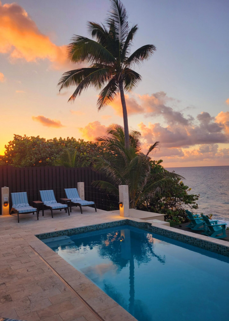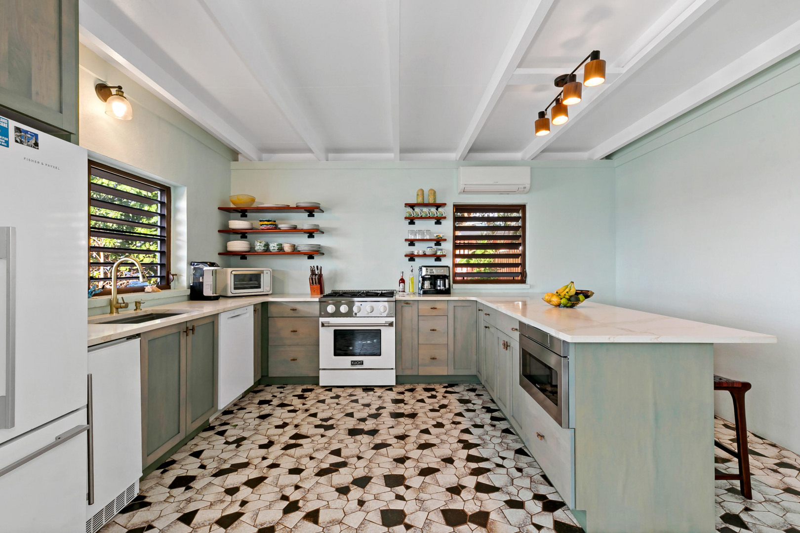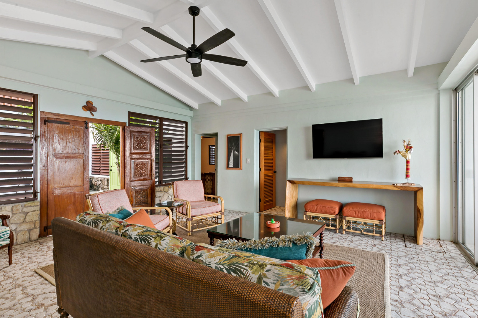 Escape to PARADISE at this CARIBBEAN CLASSIC, TURN-KEY, FULLY FURNISHED SEAFRONT retreat in the coveted North Shore/Cane Bay area. Potential rental income $120,000+ Imagine waking up to the INCREDIBLE sounds of the WAVES and the breathtaking TURQUOISE HUES of the SEA. Indulge in a PLETHORA of OUTDOOR AREAS designed for ultimate relaxation. Lounge POOLSIDE; gaze out to the sister islands while sipping your morning coffee on the LOWER observation DECK; watch hummingbirds flutter in the OPEN COURTYARD or spot whales during their migrating season. Find shade at 'PARADISE LANDING' and luxuriate on your semi-private BEACH with TIDAL POOLS. The property also includes permitted plans for a DETACHED GARAGE.Completely transformed! This recently RENOVATED, EXPANDED, and UPDATED property offers a rare opportunity to own a meticulously maintained island retreat. Enjoy peace of mind with NEW jalousie windows, a NEWLY re-coated cistern, and a NEWLY re-coated roof. A NEW 10KW, propane Generac generator ensures uninterrupted power, while 4 split A/C units provide optimal climate control. Step outside to discover a custom 10x20 SALTWATER POOL with beautiful coral decking, and convenient NEW steps leading down to your semi-private beach. The property also includes permitted plans for a GARAGE. ZONED R-3, this residence offers development potential. The kitchen is a chef's dream, featuring custom, open, MAHOGANY shelving, breathtaking sea views, custom cabinets, and new APPLIANCES including a stand-alone, UNDER-CABINET ICE-MAKER & MICROWAVE. Benefit from ALL NEW PLUMBING & WIRING throughout, including a new electric meter & panel. This property is a true standout, offering luxury, convenience, and incredible value. *seller is a USVI licensed Realtor