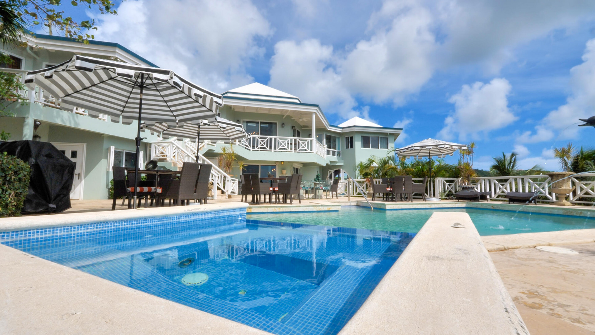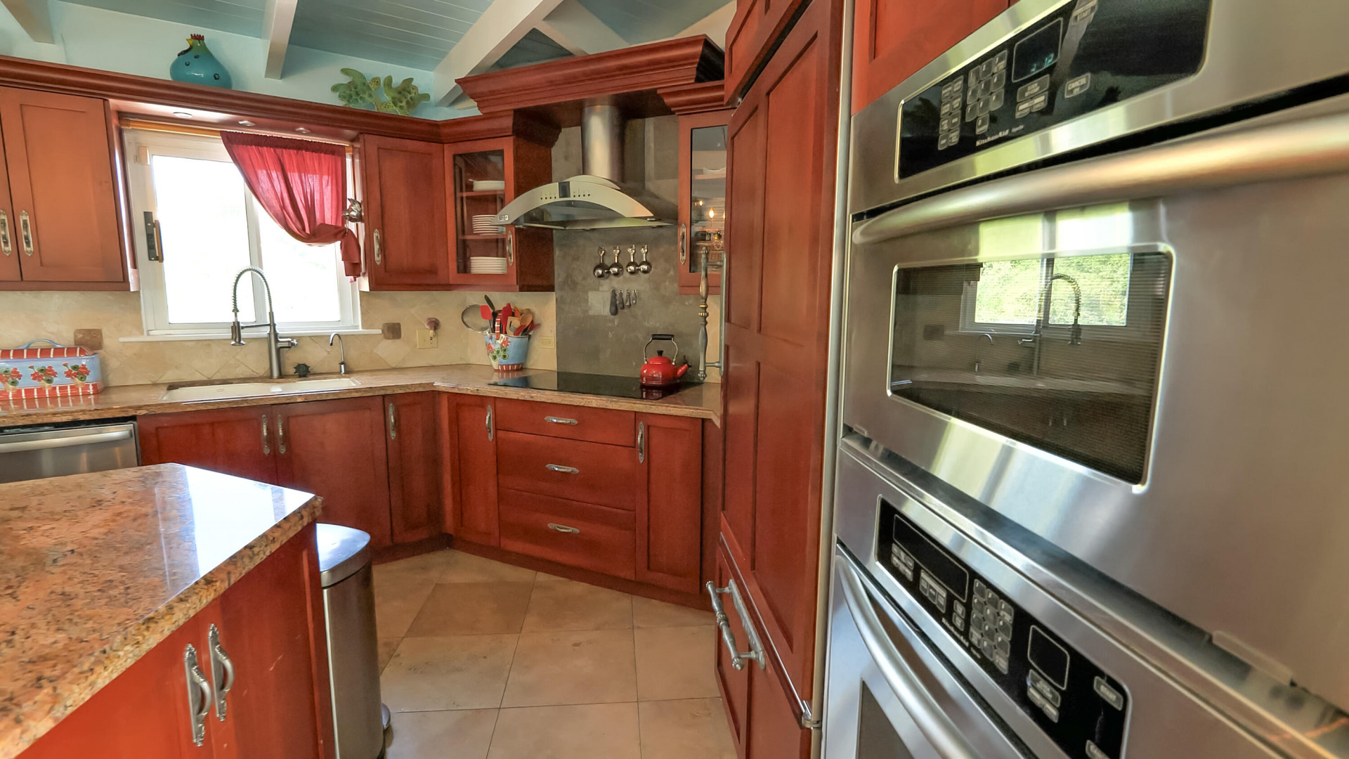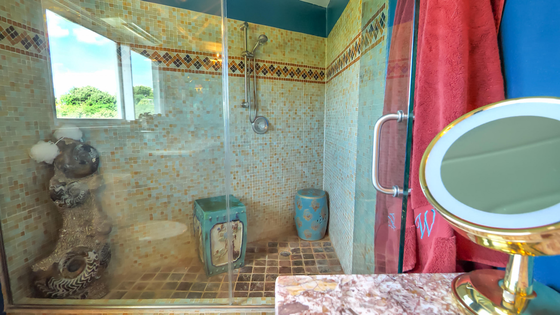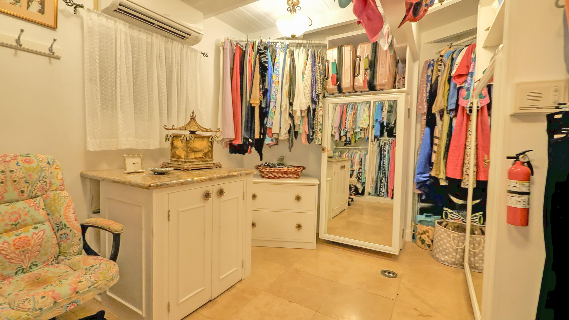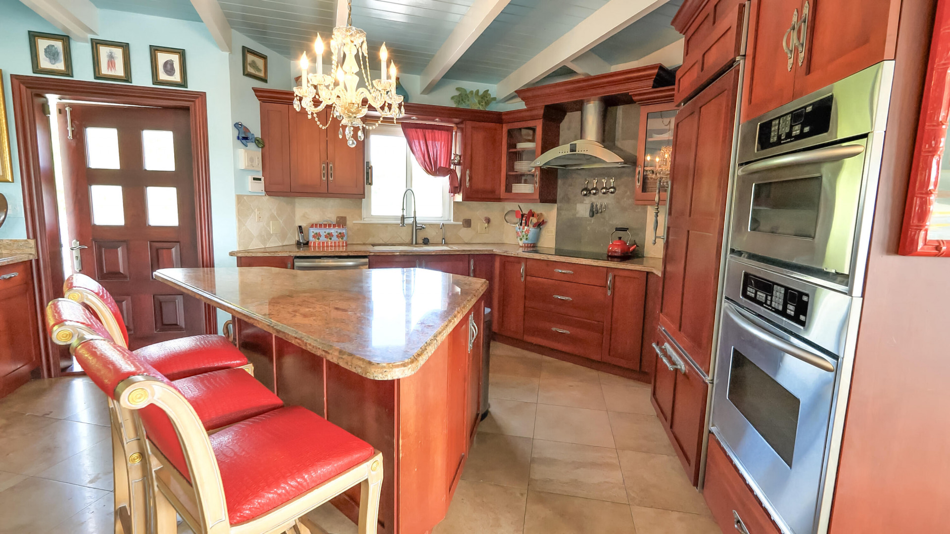 Discover Papaya Court, an iconic St. Croix estate featured in several of Carleton Varney's design books. Varney, also known as 'Mr. Color' and longtime president of Dorothy Draper & Co., was a close friend of the seller. This exquisite home is designed for grand entertaining, featuring a luxurious Chef's kitchen and dining area upstairs, complemented by a fully equipped bar with direct access to an expansive pool deck downstairs. The private and luxurious primary suite, along with three guest suites, ensures comfort for visiting guests. Nestled in the island's premier beach community, this masterpiece offers sweeping views of The Buccaneer Golf Course, Christiansted, and the Caribbean Sea. Beaches, restaurants, and shopping are just minutes away.Papaya Court is designed for grand entertaining and refined living. As you enter through a beautiful iron gate, sourced from a prestigious auction, you are welcomed by an expansive property where every detail has been thoughtfully curated. The home's layout offers multiple living areas, perfect for hosting gatherings and functions or enjoying quiet moments in the tropical breeze. The upstairs level features an open Chef's kitchen, recently updated with top-of-the-line appliances and gleaming granite countertops. The spacious island, sleek cabinetry, and high-end finishes make this kitchen an ideal space for preparing culinary delights. Adjacent to the kitchen is a formal dining room, where you can host elegant dinners while enjoying the beautiful view of the golf course and the lights of Christiansted at night. The downstairs area is equally impressive, with a fully equipped bar and lounge that opens directly onto the expansive pool deck with a large and inviting pool. The pool is set up with a pool heater to make sure the temperature stays comfortable even when the tradewinds cool it down in the winter months. Whether you're hosting large gatherings or intimate parties, this outdoor space offers the perfect venue, with ample room for sunbathing, dining, or relaxing by the pool. The poolside guest suite provides visitors with their own private living room and kitchen, allowing for extended stays in comfort and privacy.
