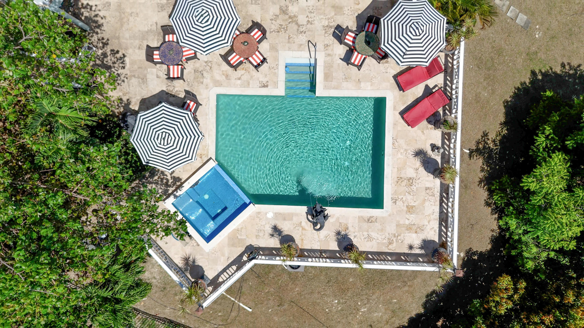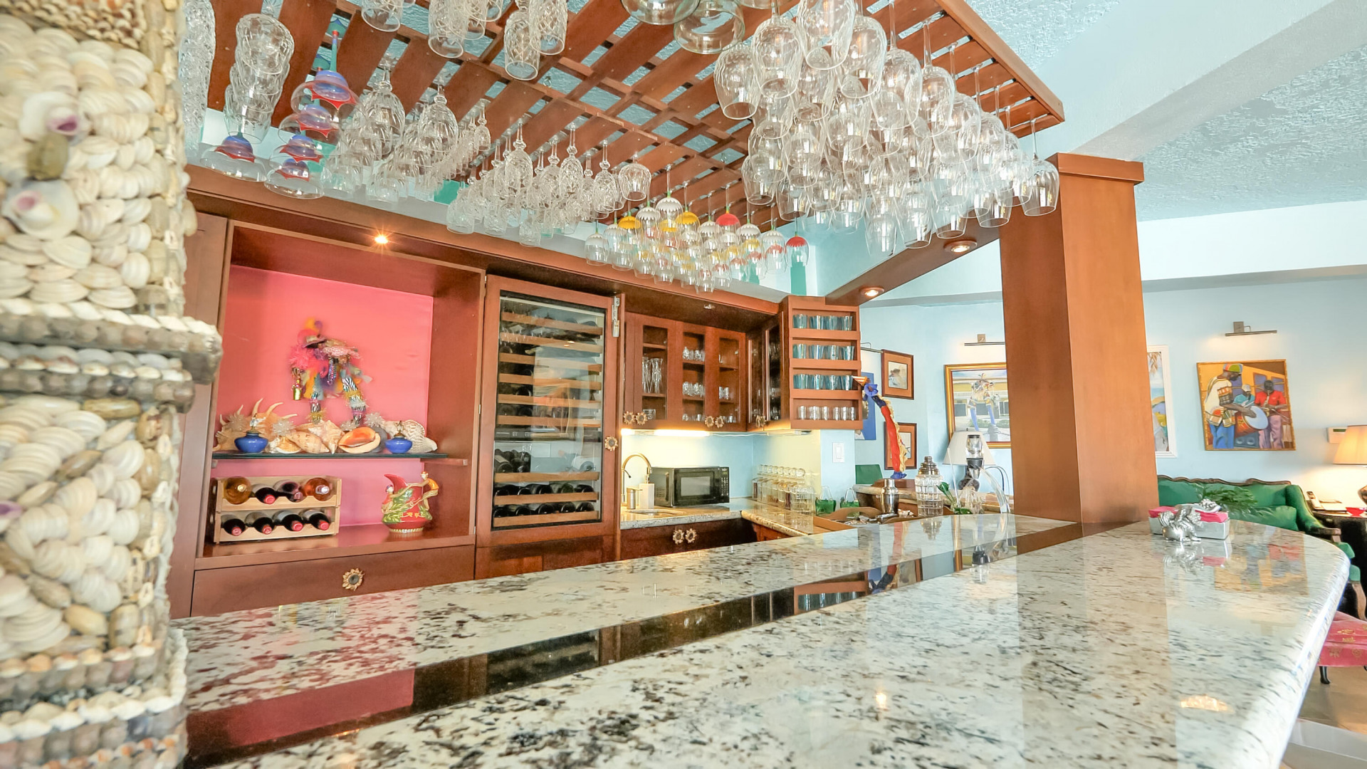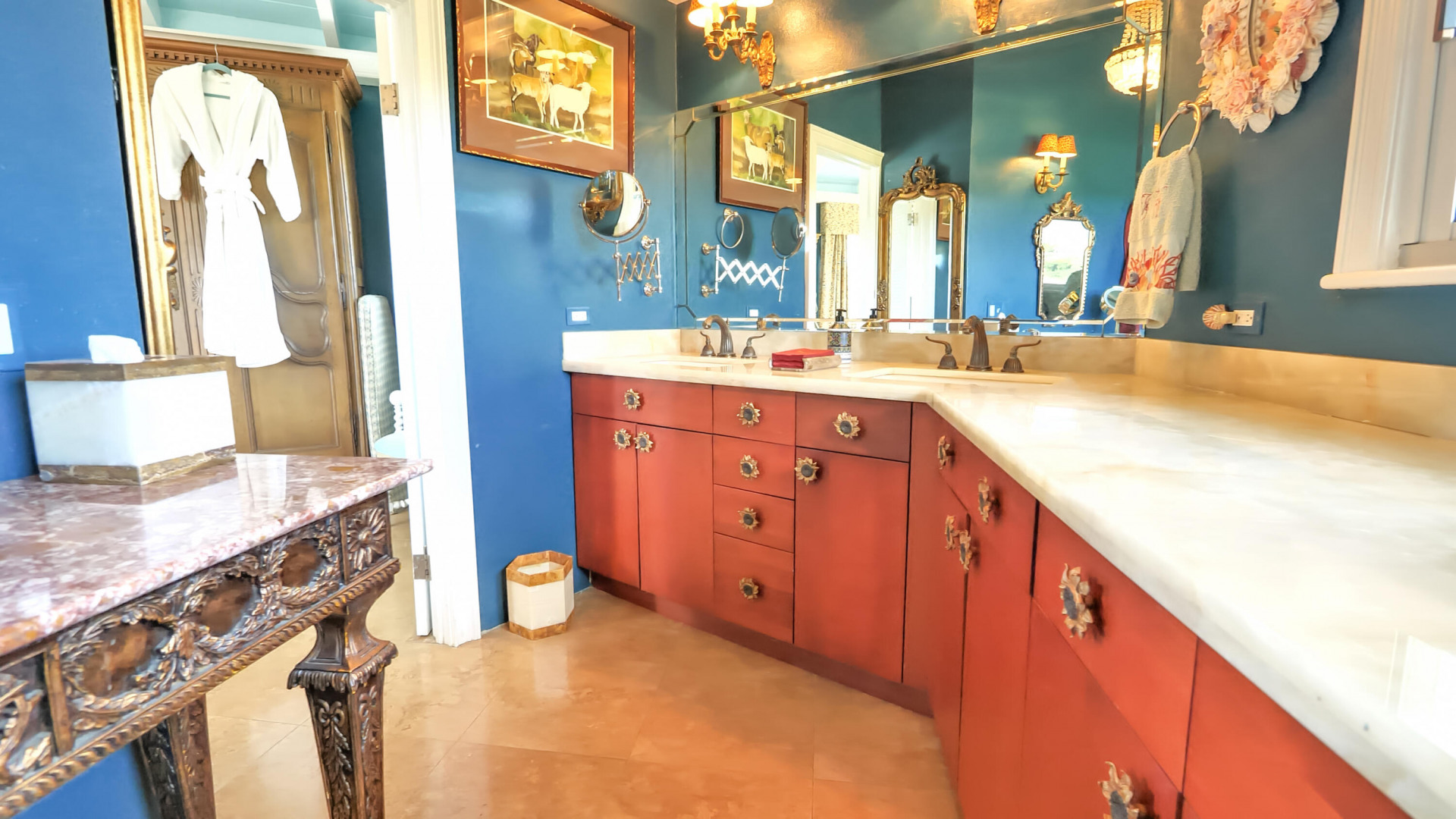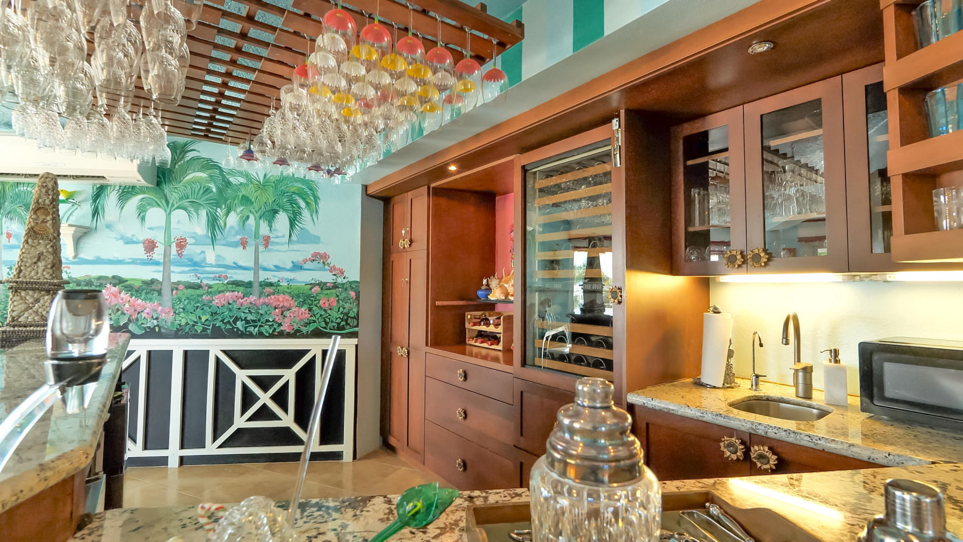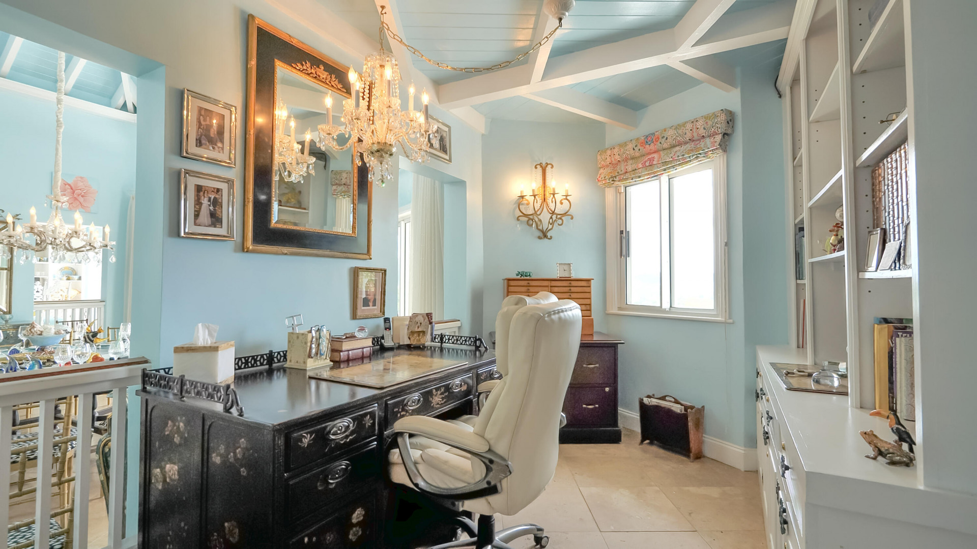 Discover Papaya Court, an iconic St. Croix estate featured in several of Carleton Varney's design books. Varney, also known as 'Mr. Color' and longtime president of Dorothy Draper & Co., was a close friend of the seller. This exquisite home is designed for grand entertaining, featuring a luxurious Chef's kitchen and dining area upstairs, complemented by a fully equipped bar with direct access to an expansive pool deck downstairs. The private and luxurious primary suite, along with three guest suites, ensures comfort for visiting guests. Nestled in the island's premier beach community, this masterpiece offers sweeping views of The Buccaneer Golf Course, Christiansted, and the Caribbean Sea. Beaches, restaurants, and shopping are just minutes away.Papaya Court is designed for grand entertaining and refined living. As you enter through a beautiful iron gate, sourced from a prestigious auction, you are welcomed by an expansive property where every detail has been thoughtfully curated. The home's layout offers multiple living areas, perfect for hosting gatherings and functions or enjoying quiet moments in the tropical breeze. The upstairs level features an open Chef's kitchen, recently updated with top-of-the-line appliances and gleaming granite countertops. The spacious island, sleek cabinetry, and high-end finishes make this kitchen an ideal space for preparing culinary delights. Adjacent to the kitchen is a formal dining room, where you can host elegant dinners while enjoying the beautiful view of the golf course and the lights of Christiansted at night. The downstairs area is equally impressive, with a fully equipped bar and lounge that opens directly onto the expansive pool deck with a large and inviting pool. The pool is set up with a pool heater to make sure the temperature stays comfortable even when the tradewinds cool it down in the winter months. Whether you're hosting large gatherings or intimate parties, this outdoor space offers the perfect venue, with ample room for sunbathing, dining, or relaxing by the pool. The poolside guest suite provides visitors with their own private living room and kitchen, allowing for extended stays in comfort and privacy.