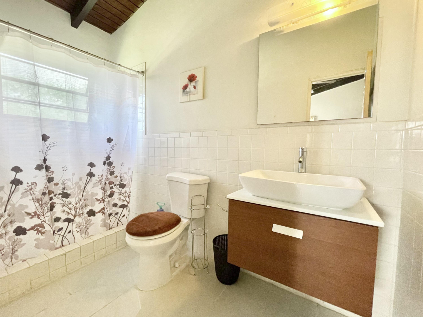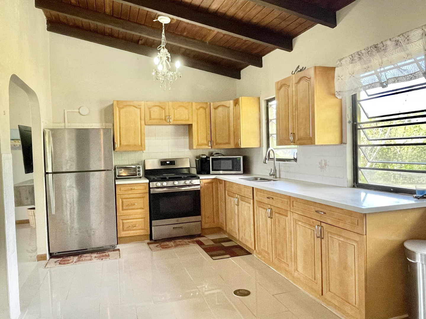 Move in ready two bedroom two bath home with a large, flat yard and located at the end of the street with lots of privacy. Enjoy sea views from the covered porch. Close to shopping and beautiful west end beaches.