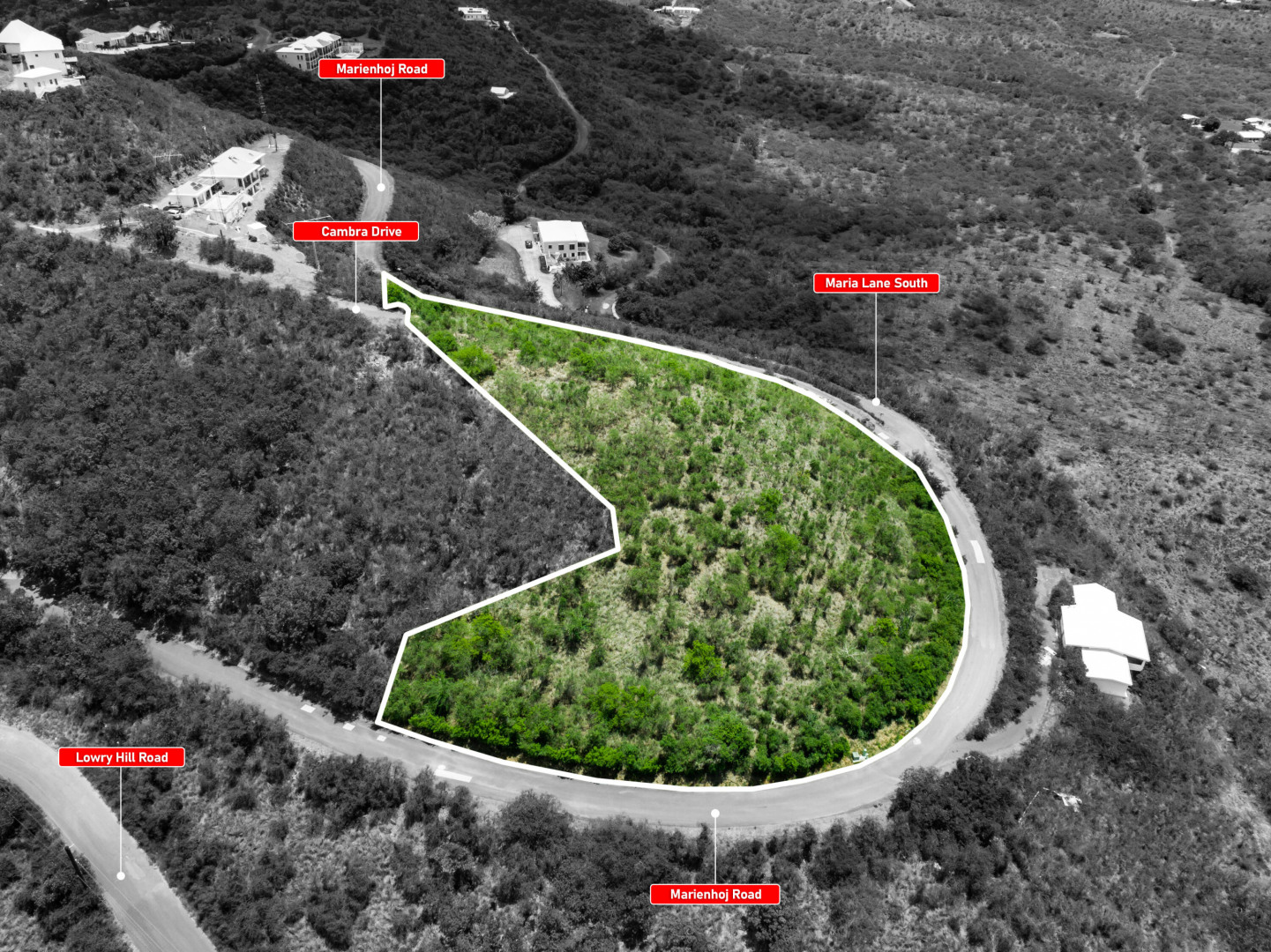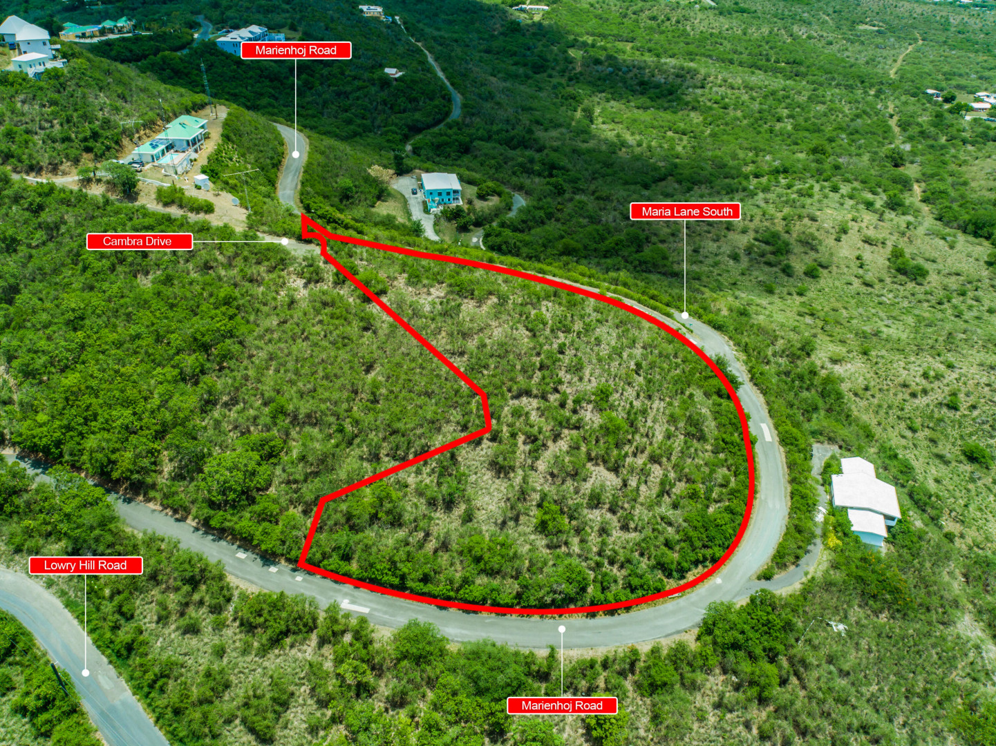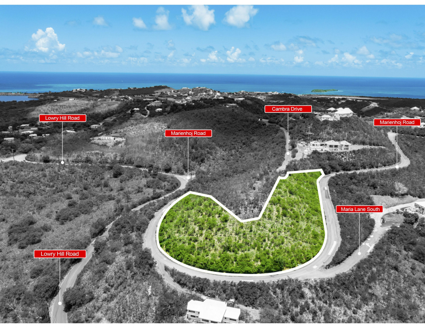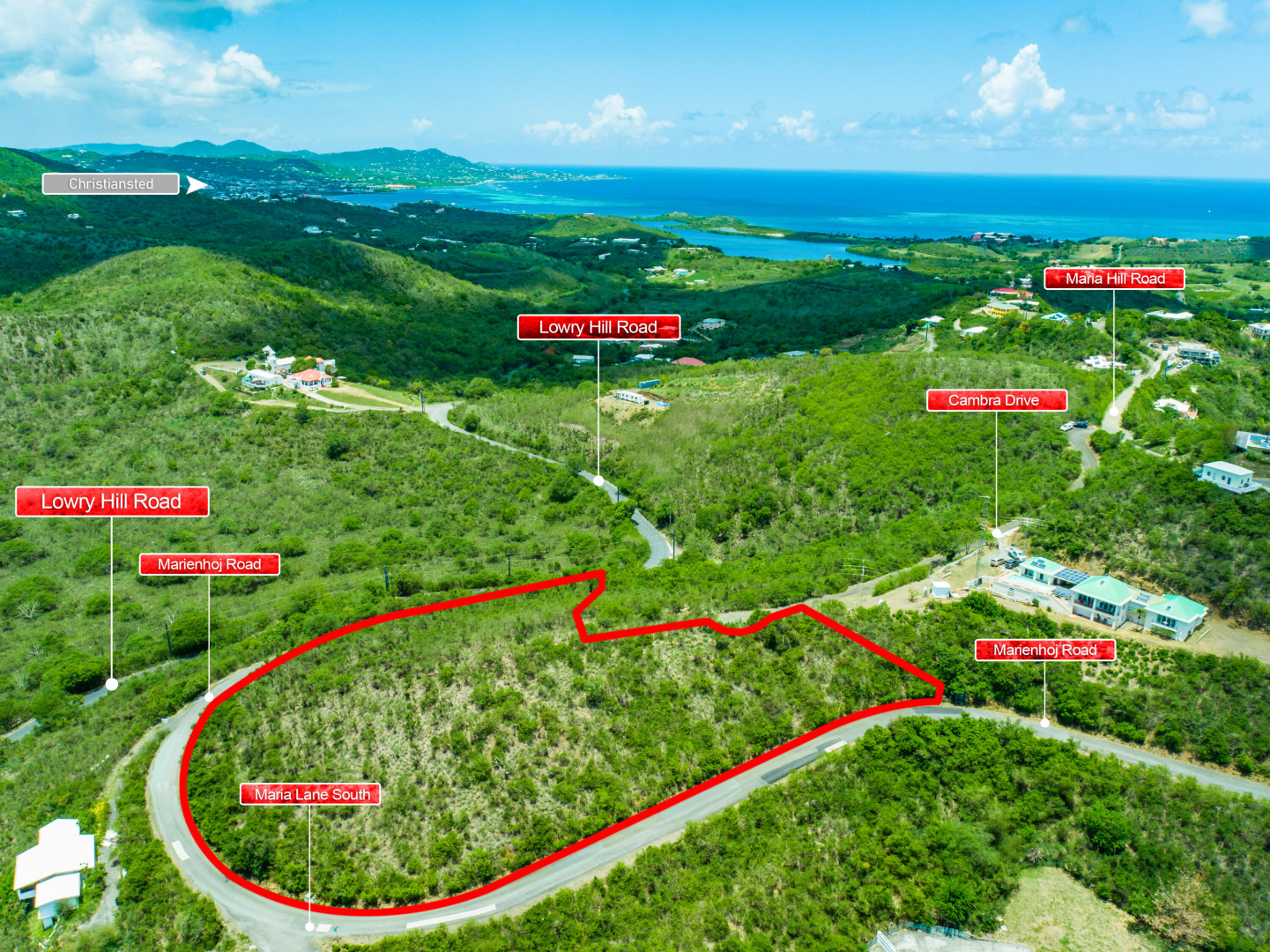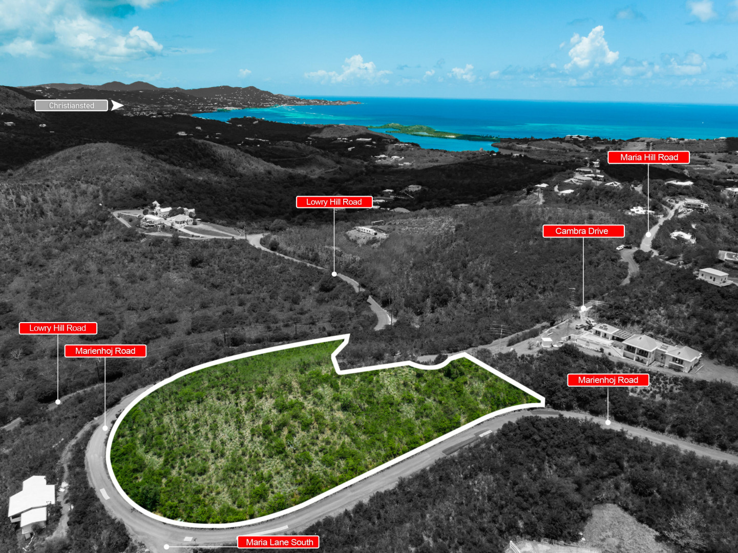 Very buildable lot in a neighborhood of lovely homes with paved roads and underground utilities! Convenient location just east of Christiansted with a view of Great Pond, the south shore, the blue Caribbean Sea, and lush rolling hillsides. This parcel is bordered by two paved roads for ease of building. The adjacent lot is also for sale MLS#22-1560, for joint purchase, MLS#22-1556.
